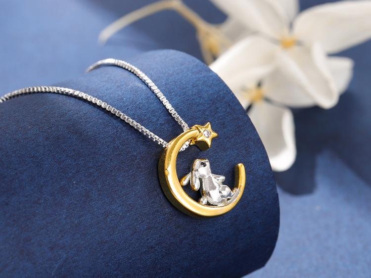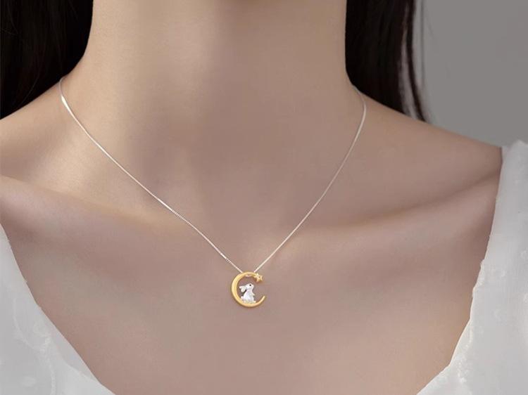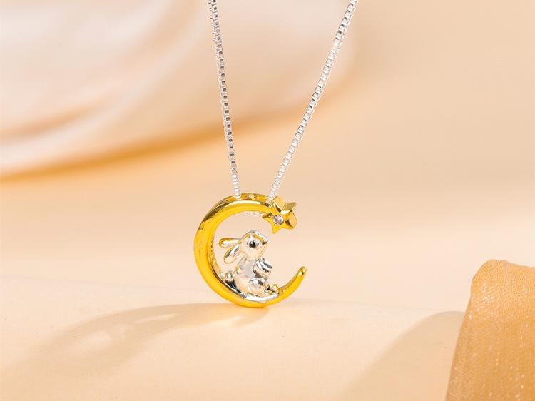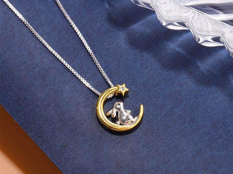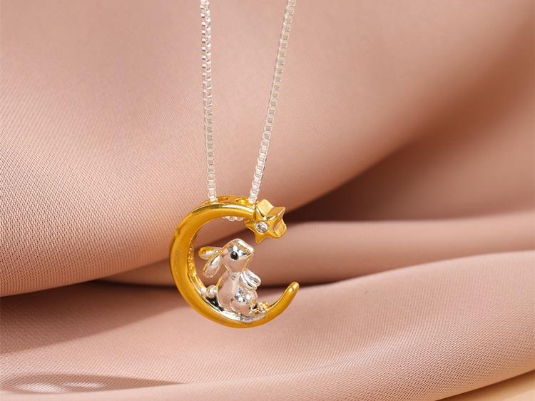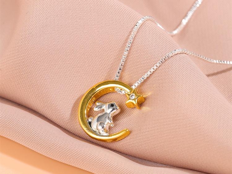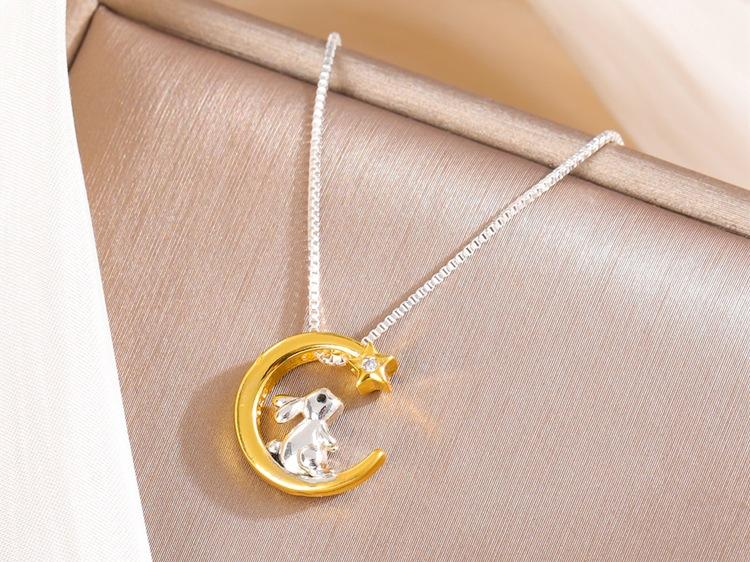Nuevo collar de moda bicolor con forma de luna, estrella, conejo, zodiaco, lindo animal, dulce y delicado para mujer