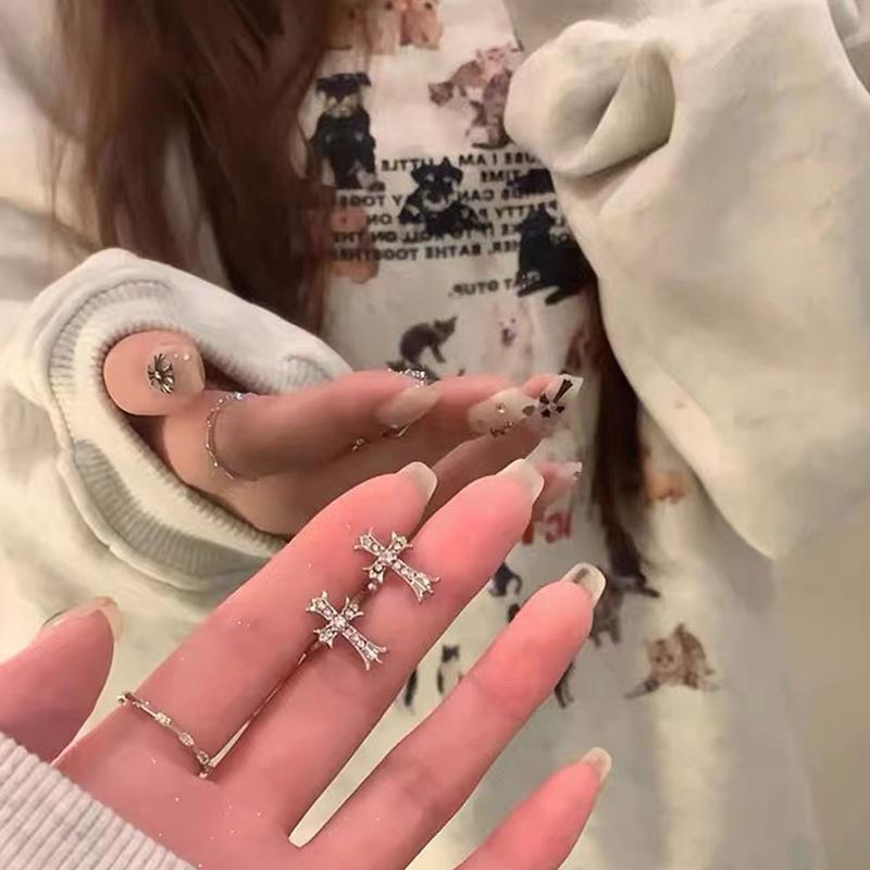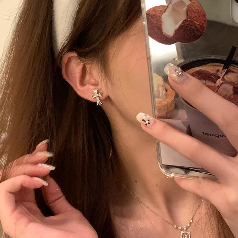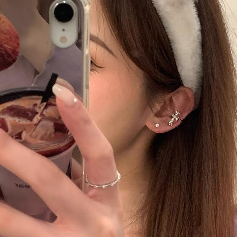 Pendientes de clip de oreja con forma de cruz de circonita de estilo moderno y exquisito para mujer, sin oreja, con diseño de nicho, de alta calidad
