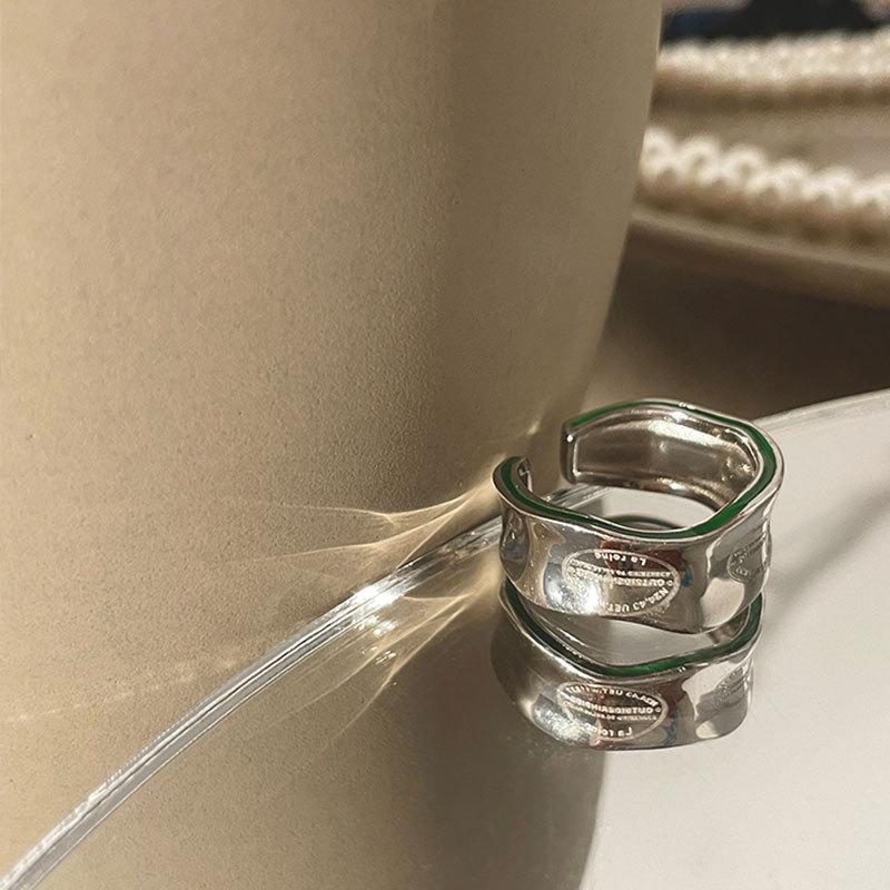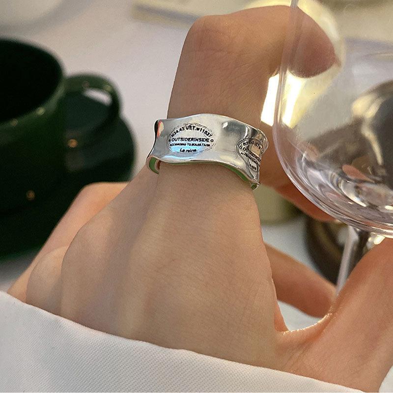 Anillo de Onda Geométrica para Mujer Moda Retro Plata S925 Irregular Personalidad Anillo Abierto Ins Anillo de Dedo Creativo