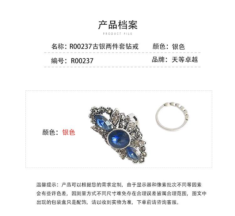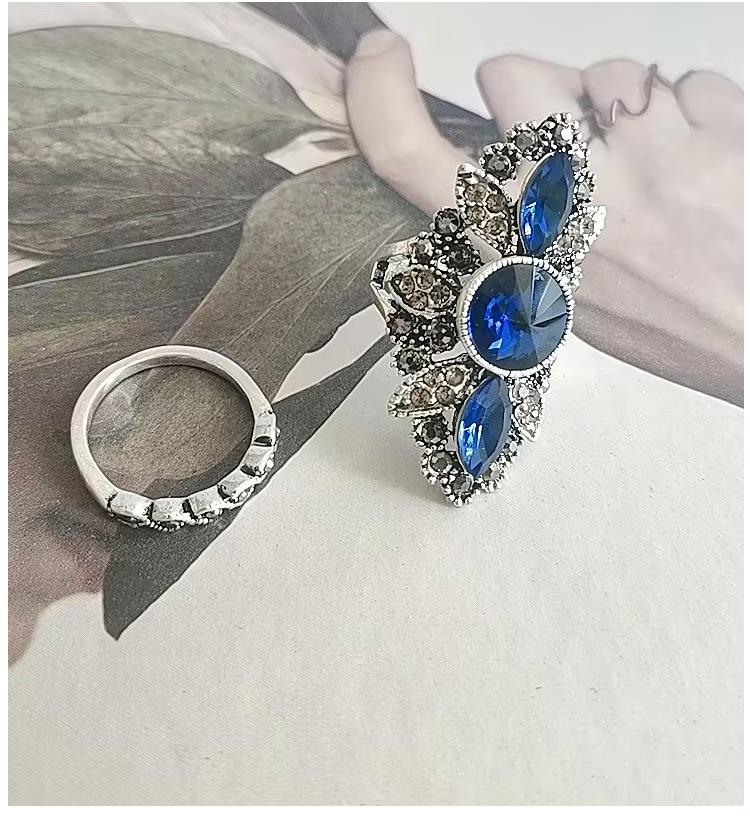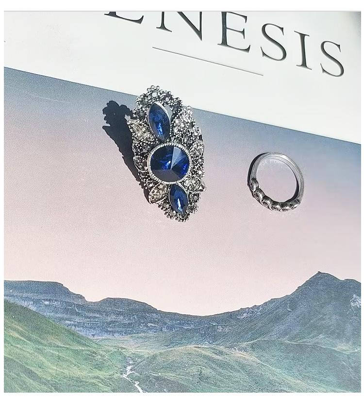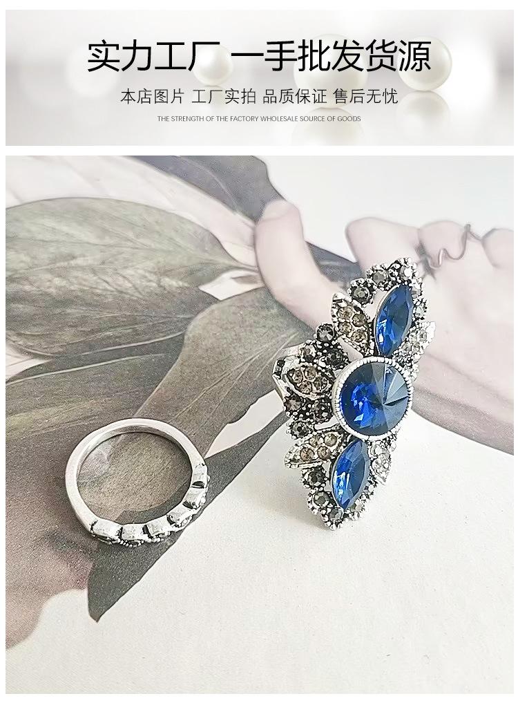 Anillo de circonita azul incrustado con baño de nuevo suministro de comercio electrónico transfronterizo, joyería de moda europea y americana para mujer