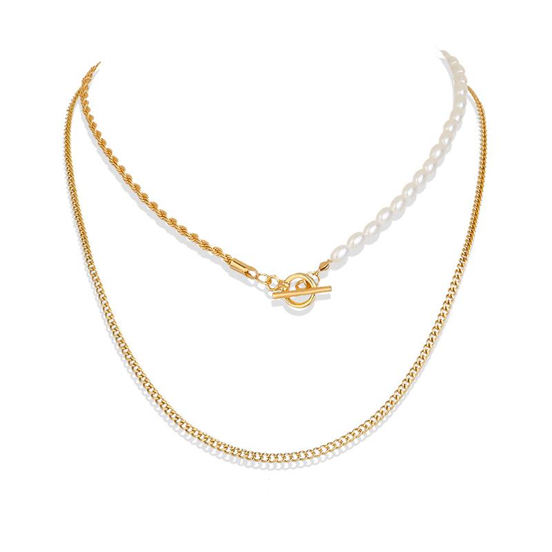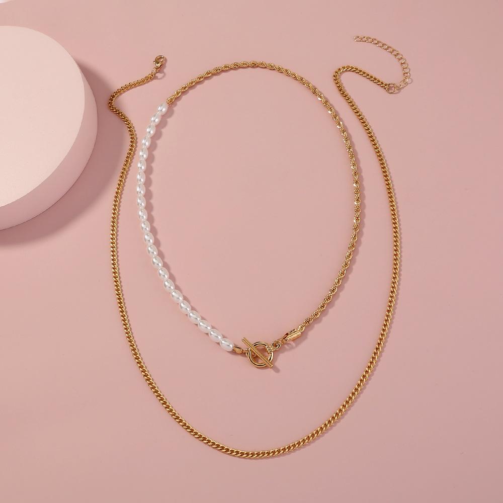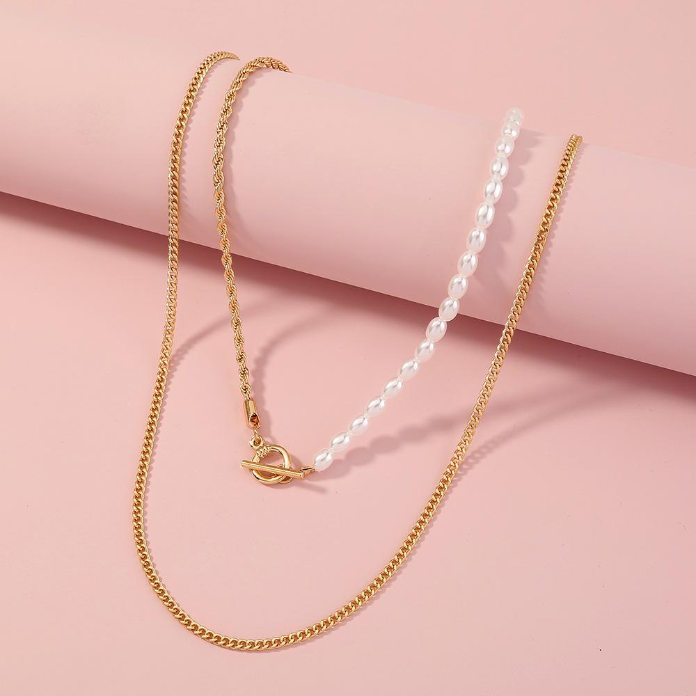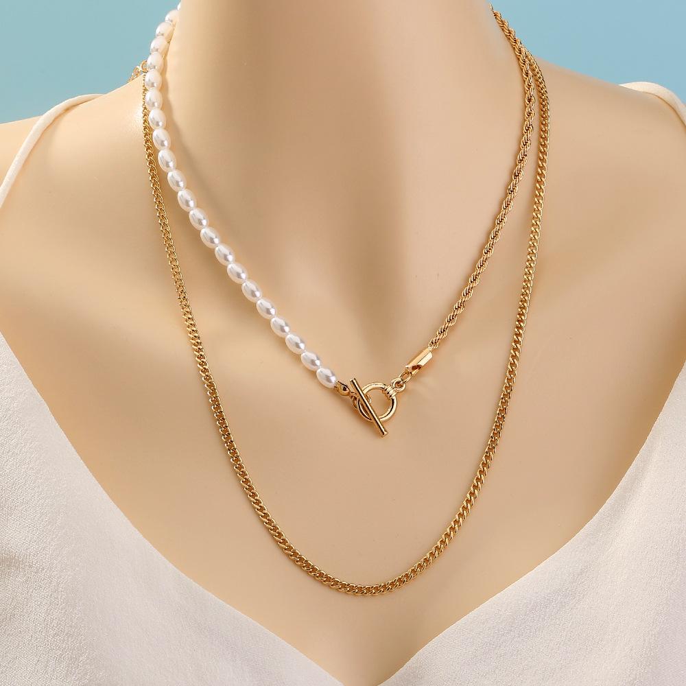 Collar de perlas de imitación vintage de hip-hop con joyas transfronterizas de Europa y Estados Unidos, cadena de metal geométrica urbana moderna, venta al por mayor