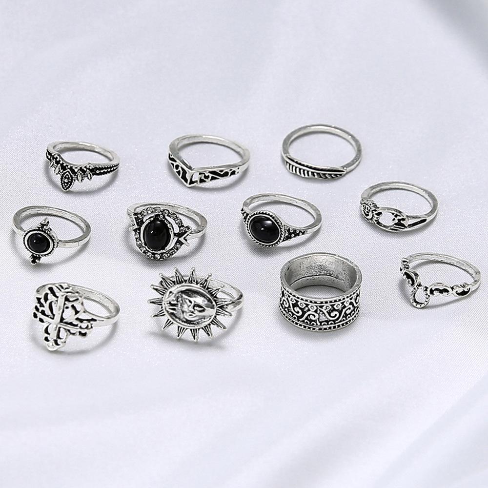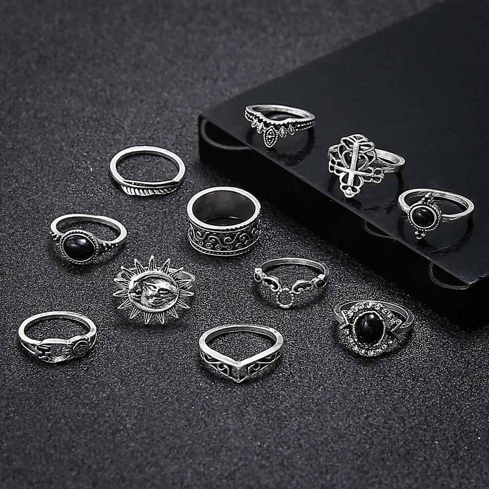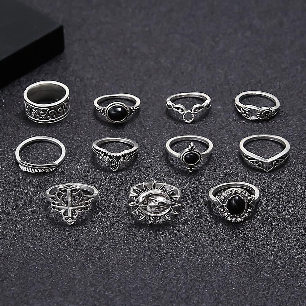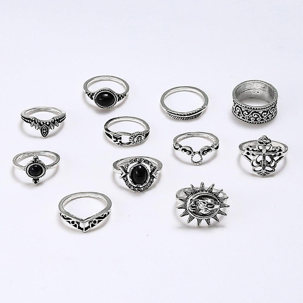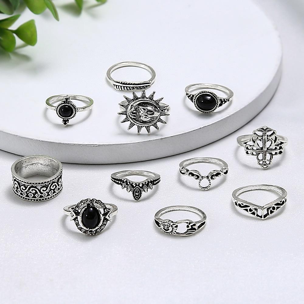 Europa y Estados Unidos joyería transfronteriza anillo de gema negra calado microdiamante anillo sonrisa sol mujeres