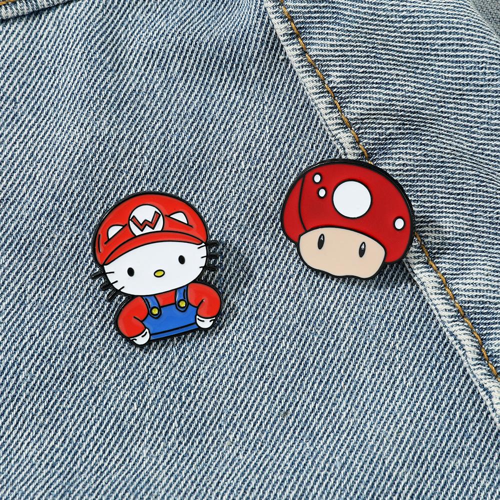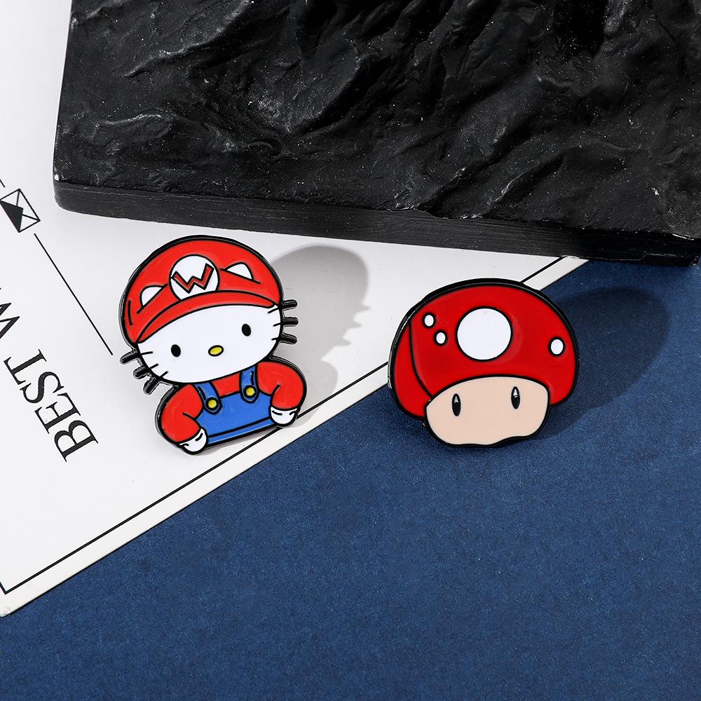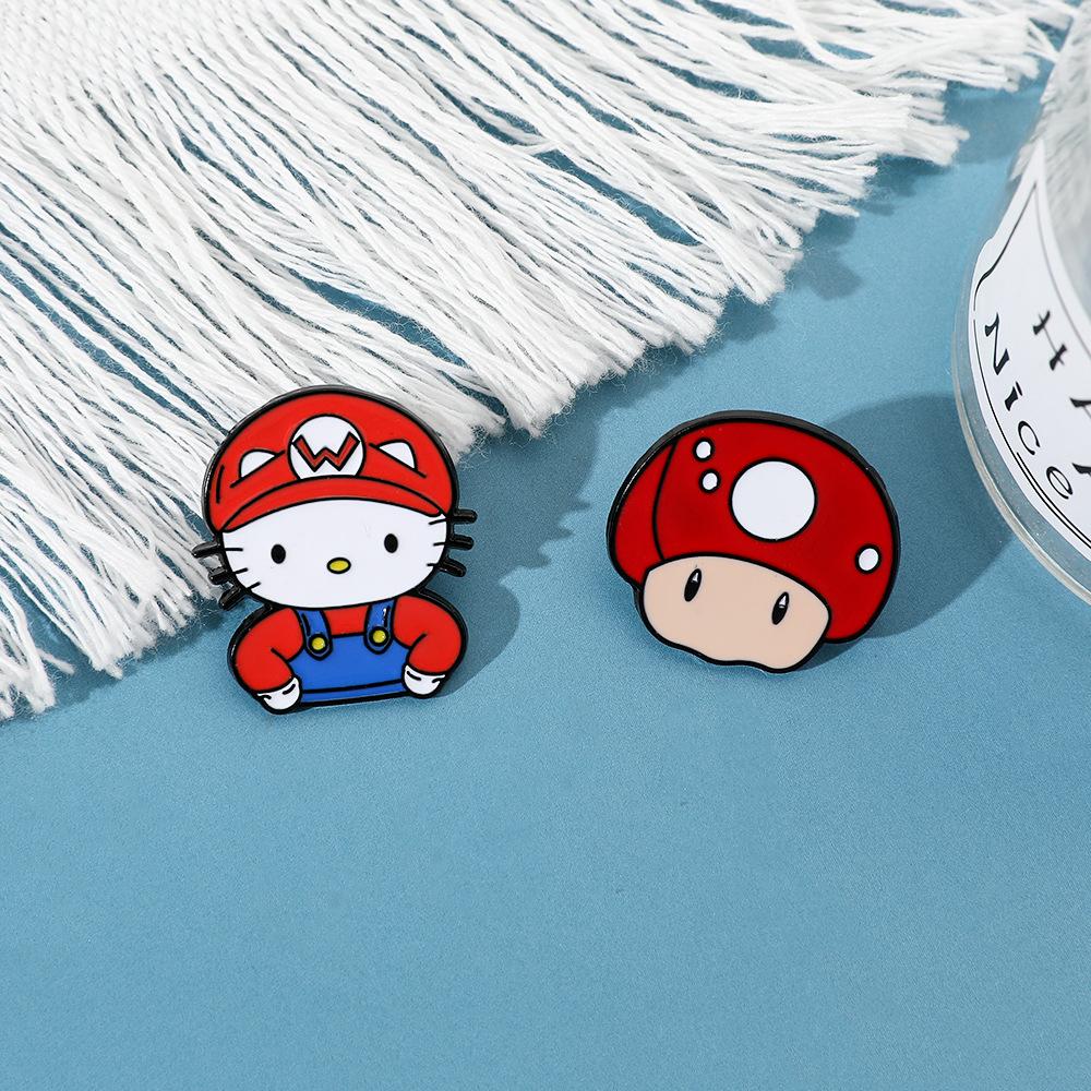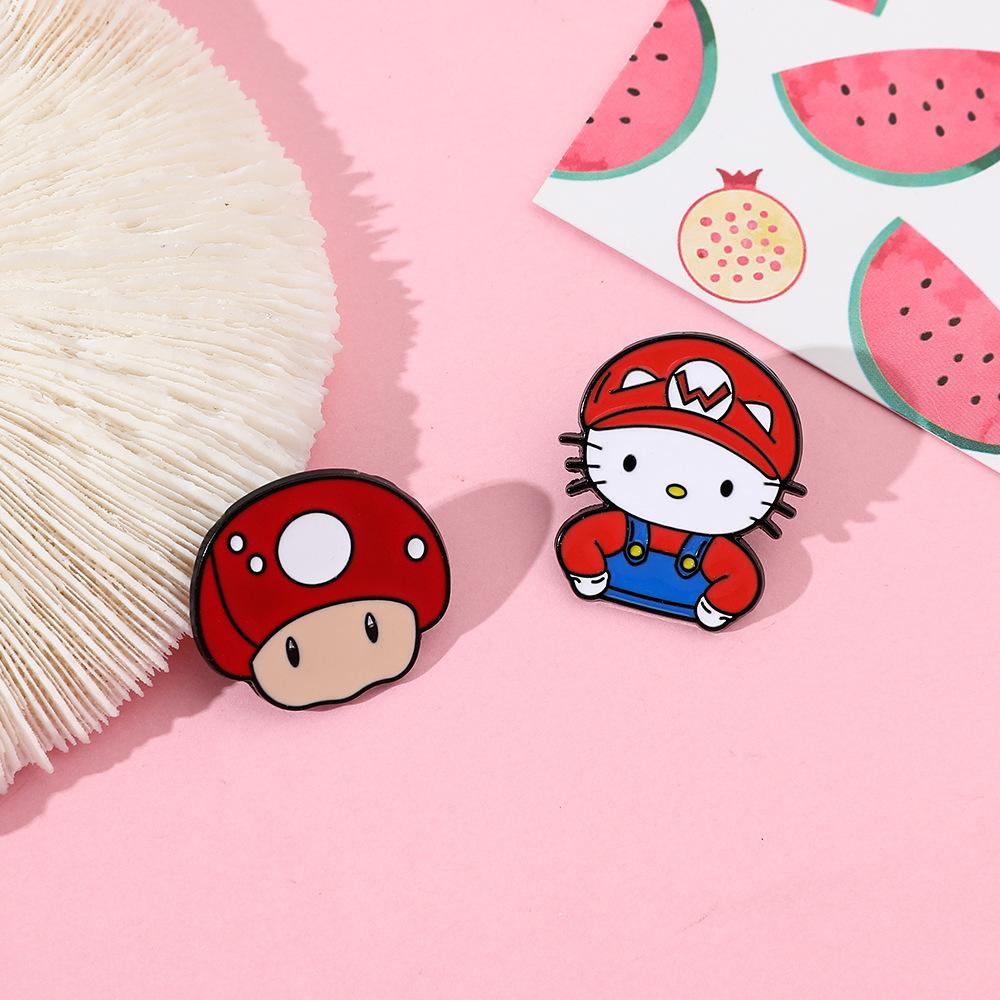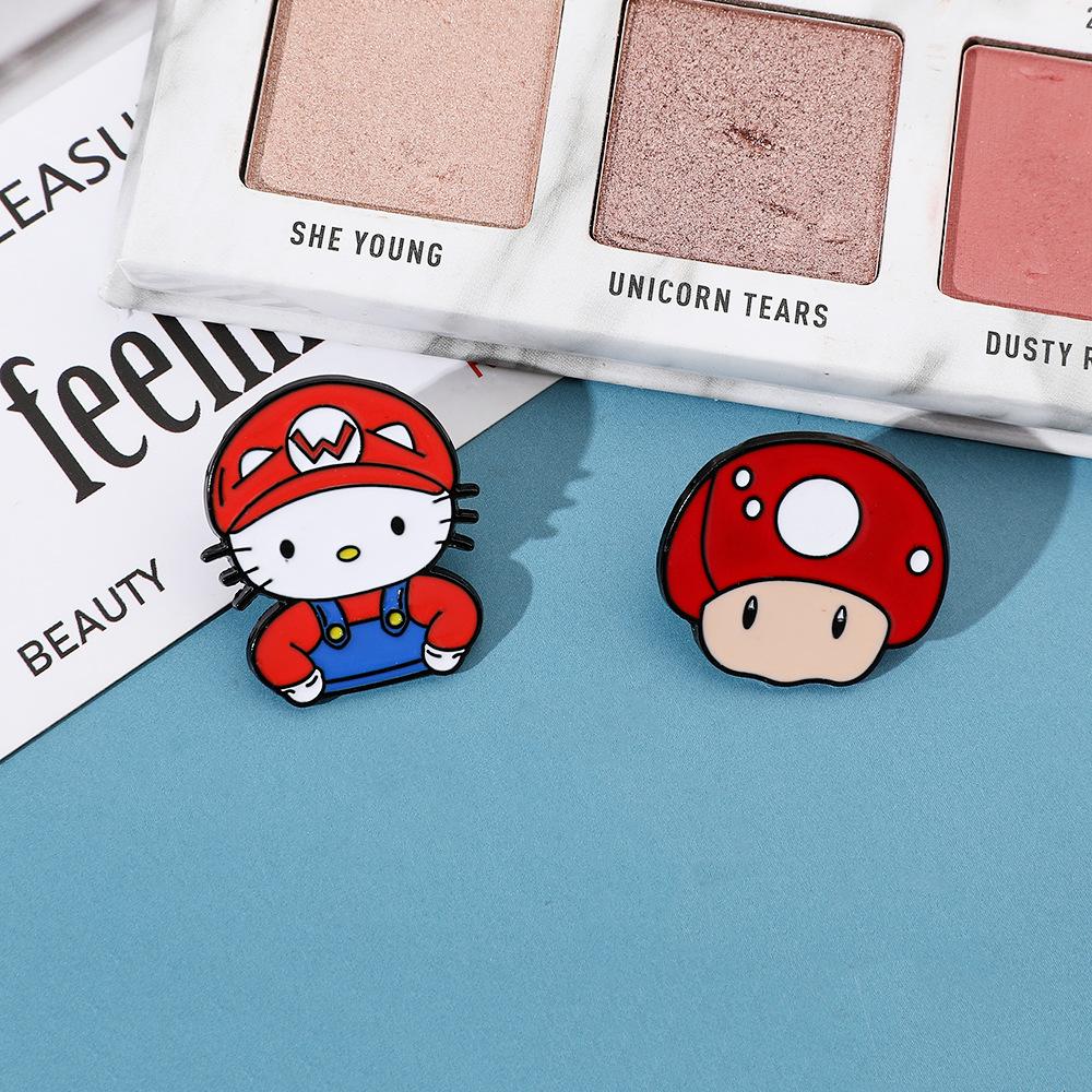 Nuevo broche de hongo creativo de dibujos animados Super Mario KT gato insignia de metal lindo gato accesorios para bolsa