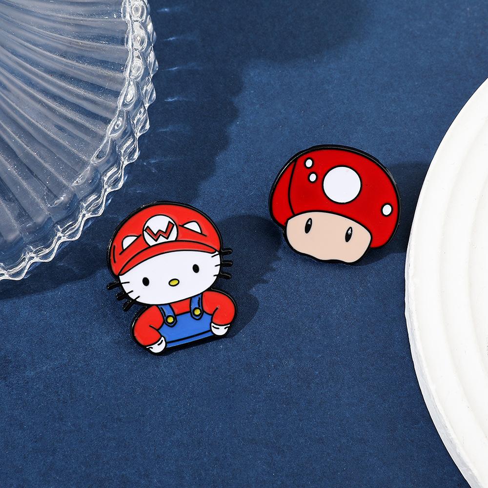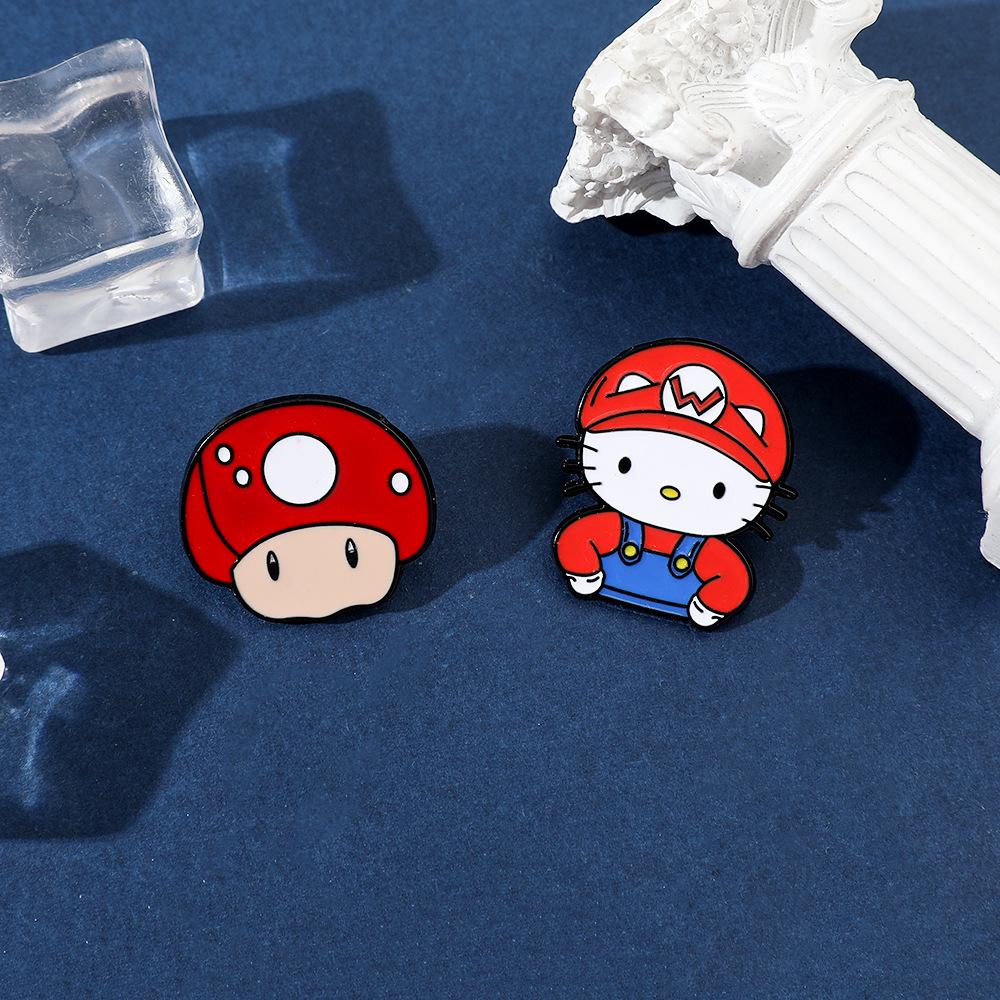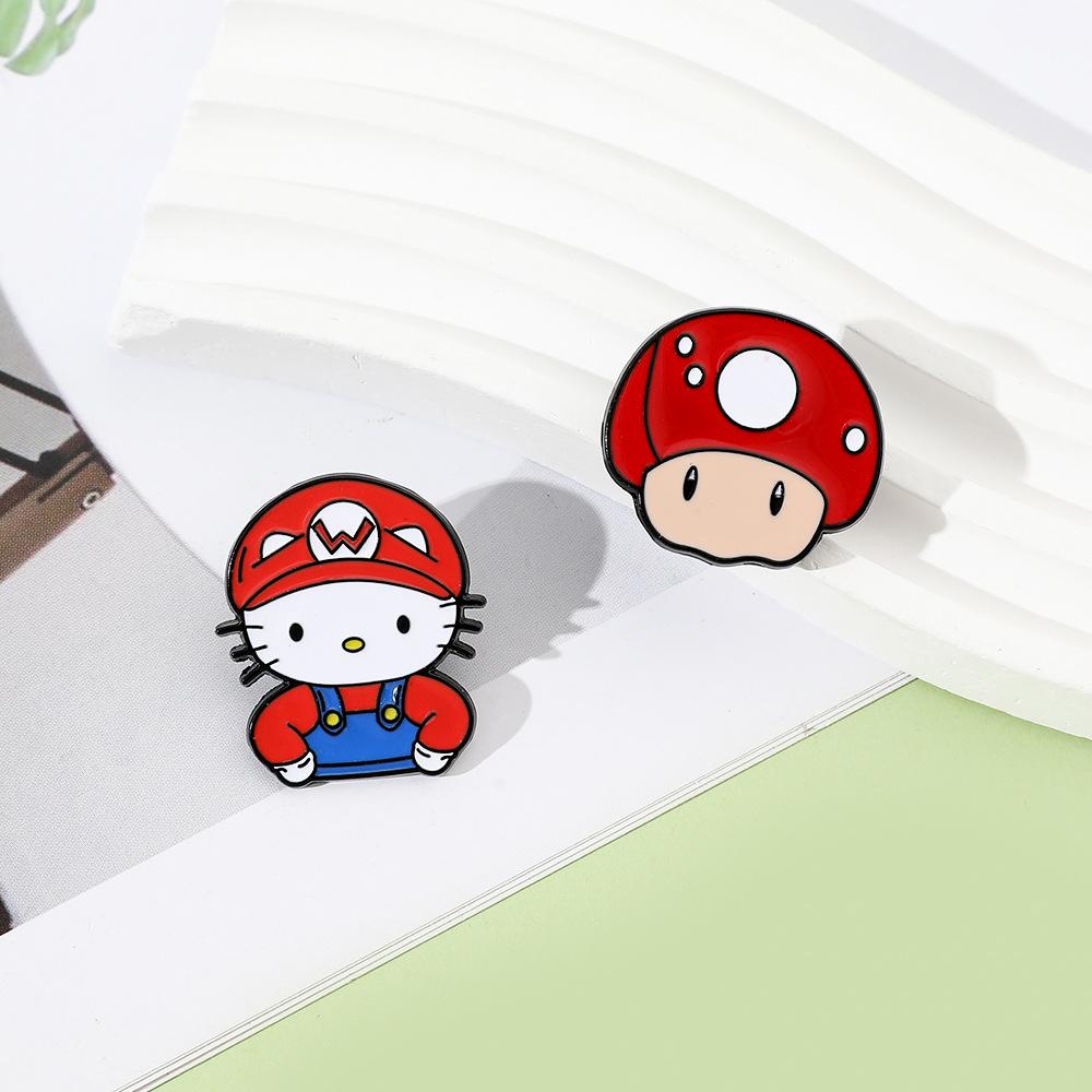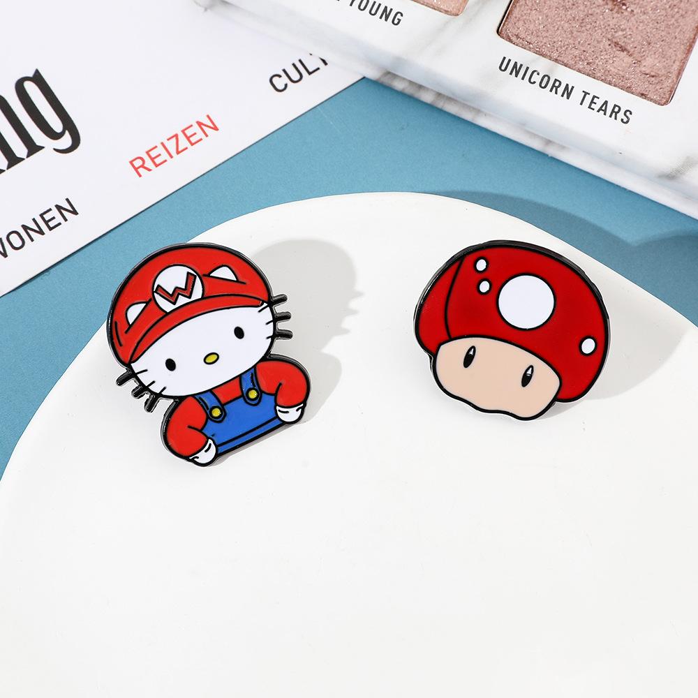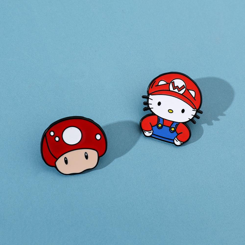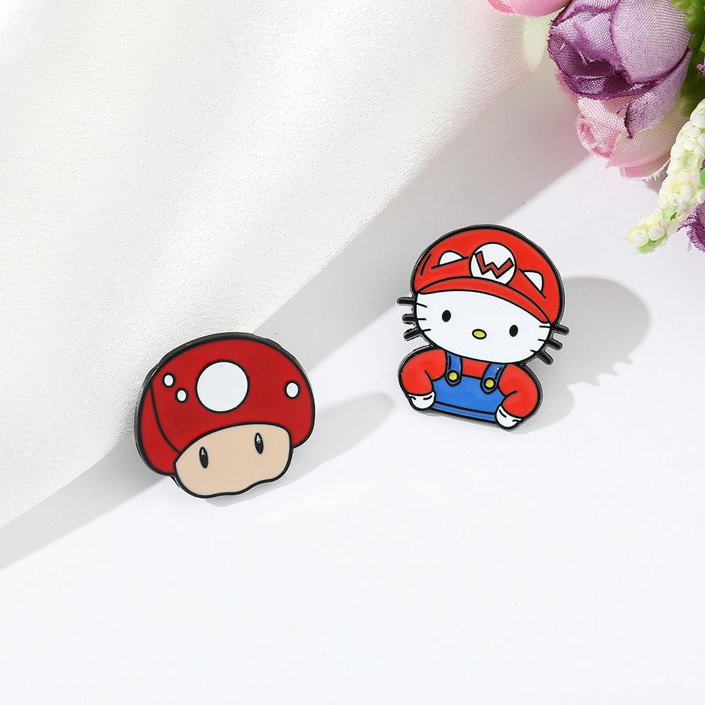 Nuevo broche de hongo creativo de dibujos animados Super Mario KT gato insignia de metal lindo gato accesorios para bolsa