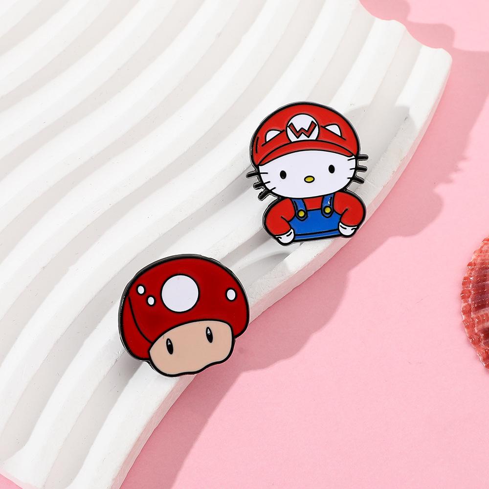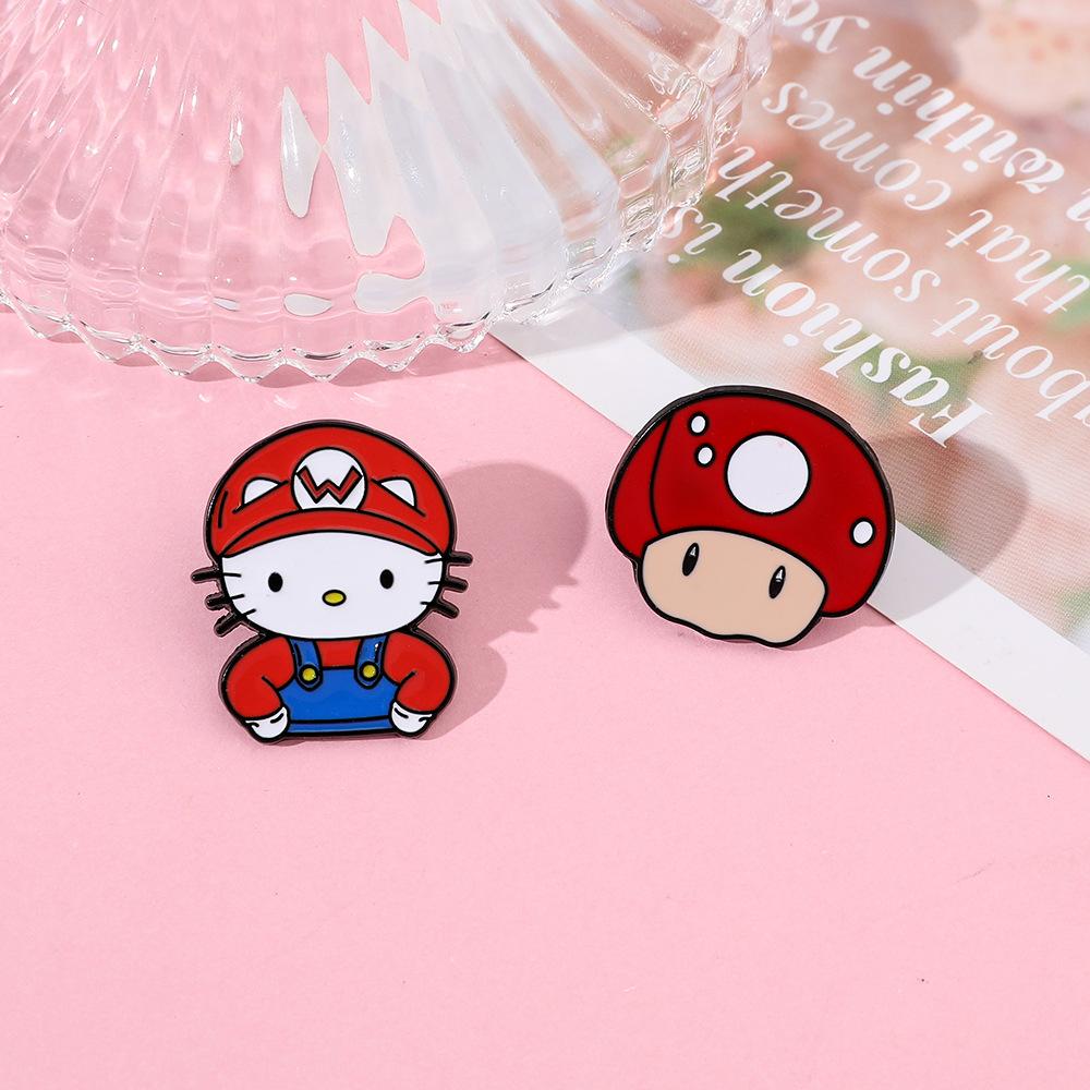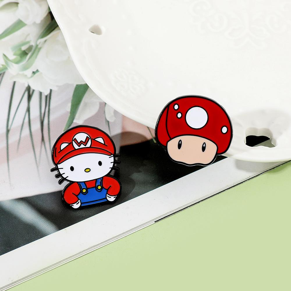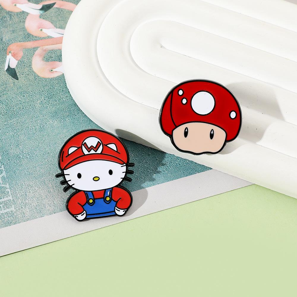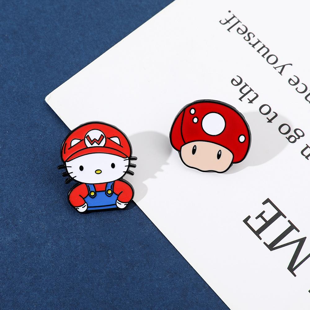 Nuevo broche de hongo creativo de dibujos animados Super Mario KT gato insignia de metal lindo gato accesorios para bolsa
