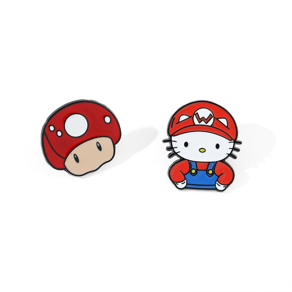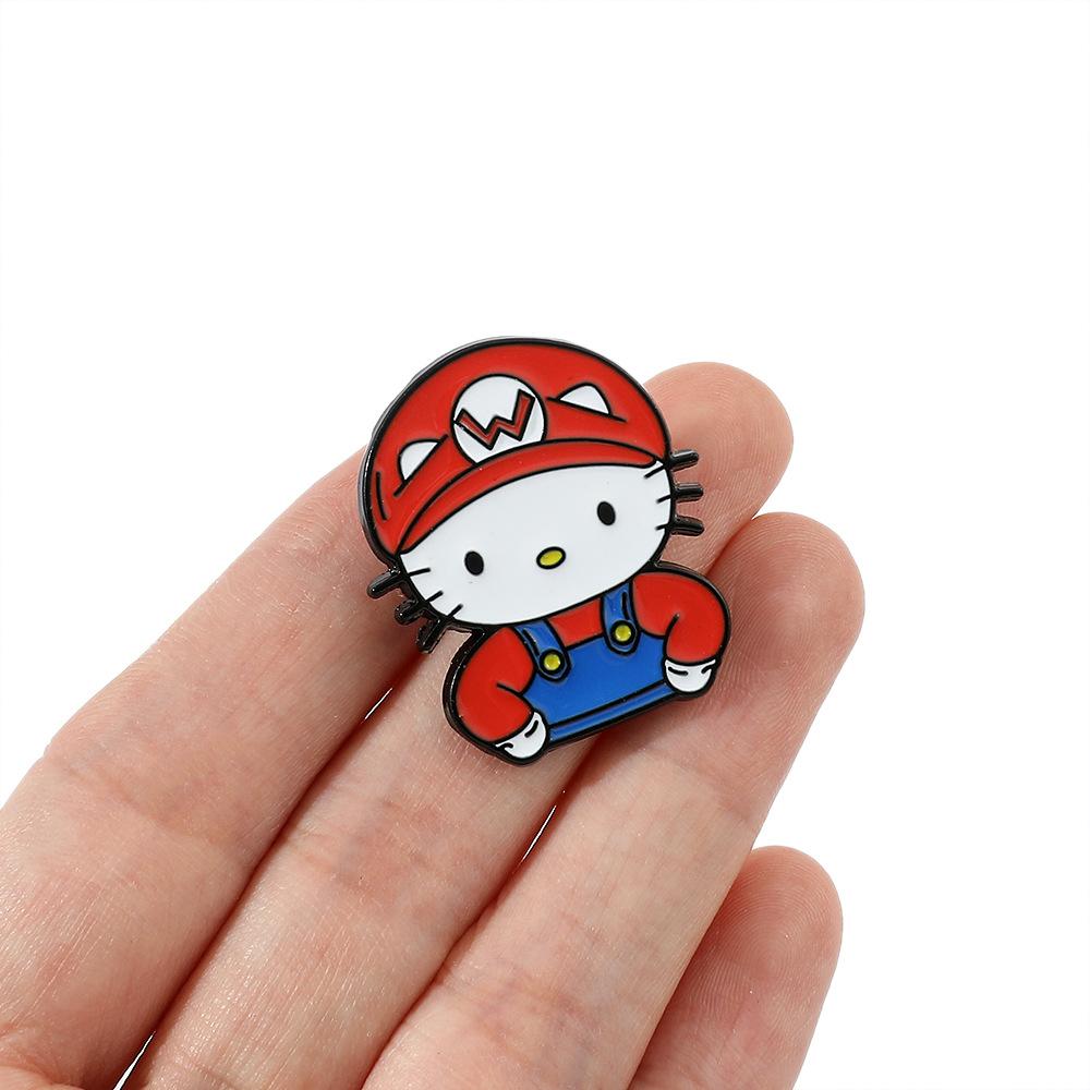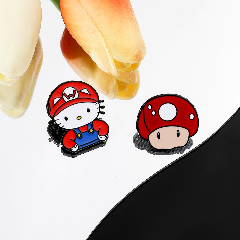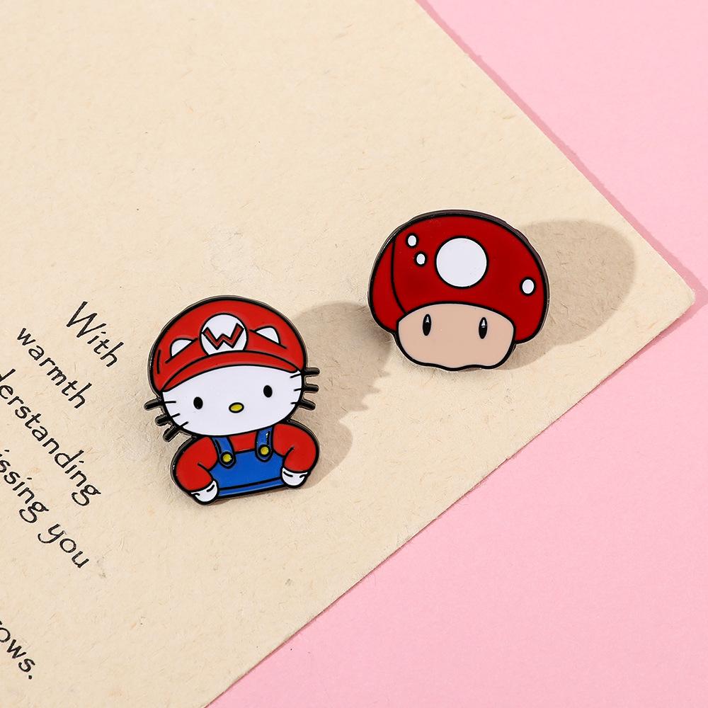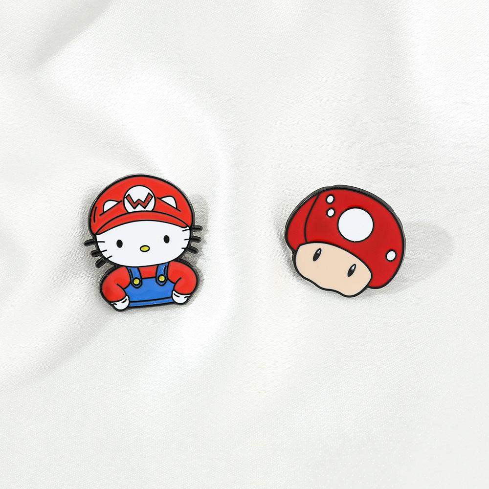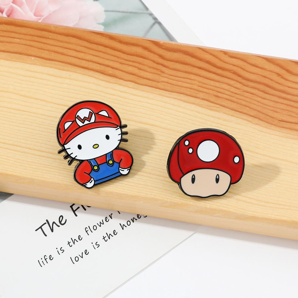 Nuevo broche de hongo creativo de dibujos animados Super Mario KT gato insignia de metal lindo gato accesorios para bolsa