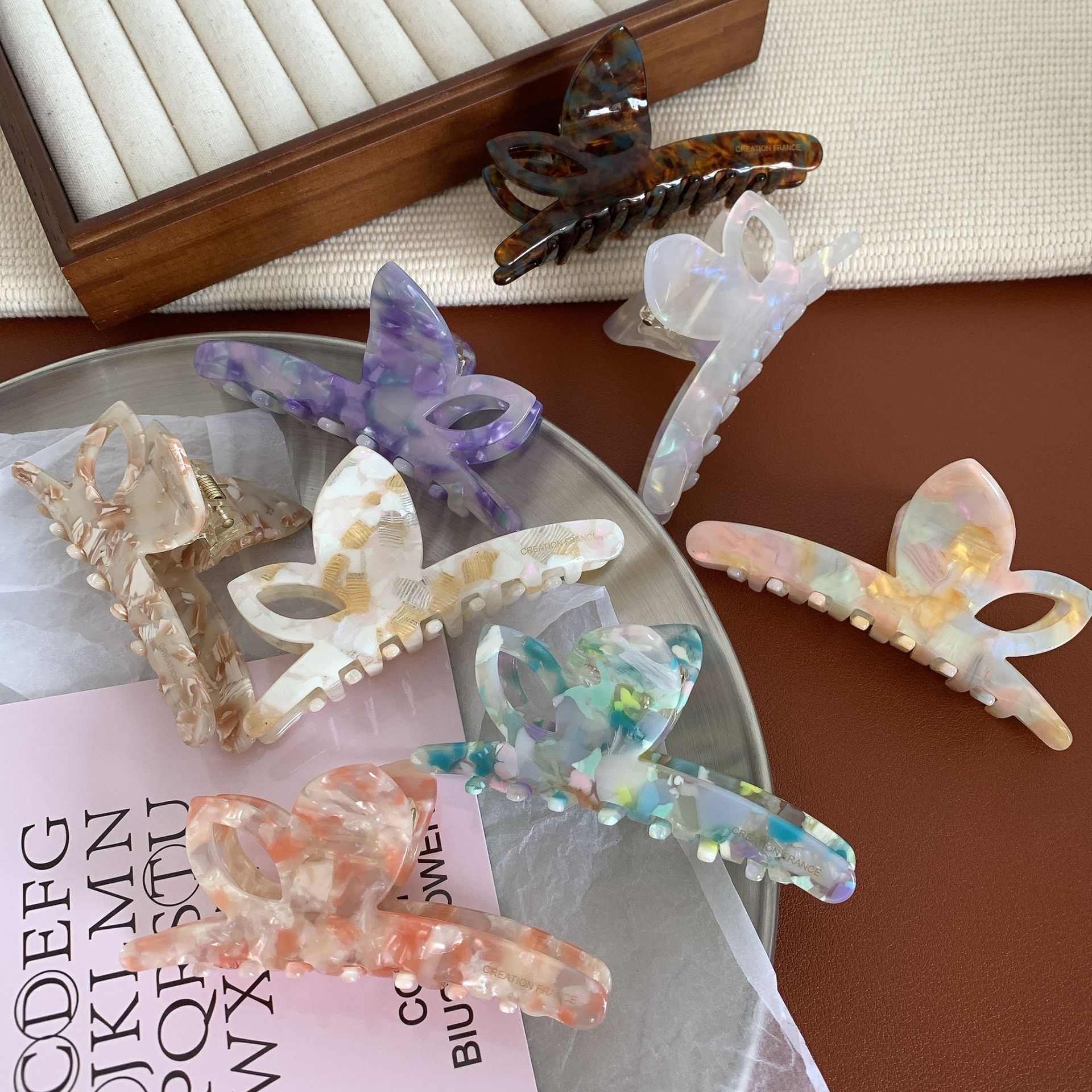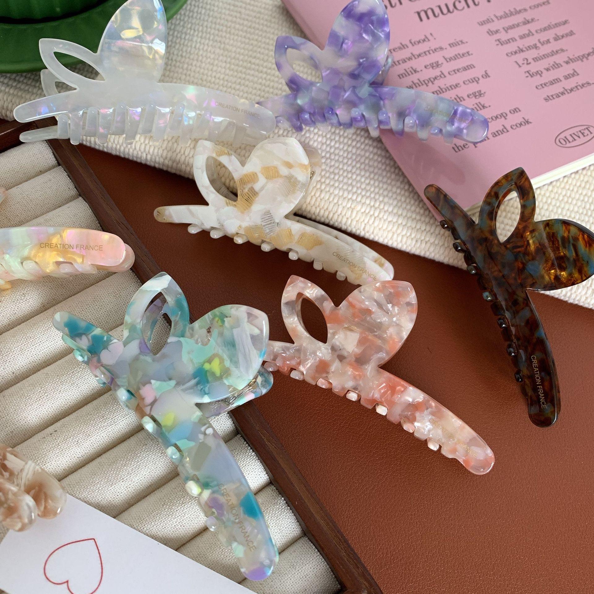 Horquilla de mariposa con forma de disco de ácido acético estilo coreano, pinza para el pelo, pinza para el pelo de niña, pinza de tiburón, ligera, de lujo, para el cabello, alta gama