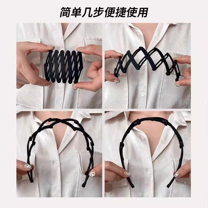 Diadema plegable retráctil para mujer, portátil, para viajes, lavado facial, especial, con dientes, prensado de cabello, antideslizante, para cabello roto, aro, flequillo, tarjeta para el cabello