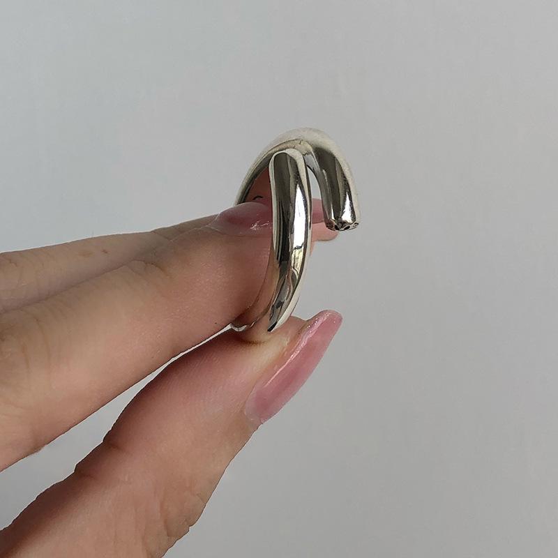 Anillo Cruz de Línea Simple Moda Retro para Mujer Diseño Nicho Ins Plata S925 Anillo Abierto Anillo para Dedo de Comida Trendy