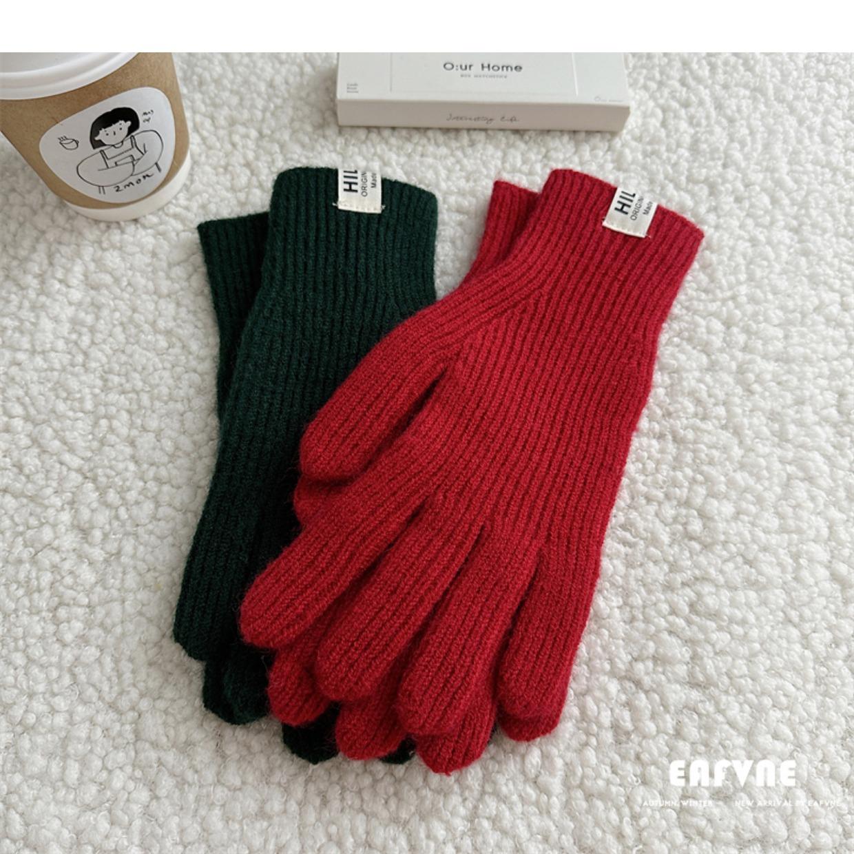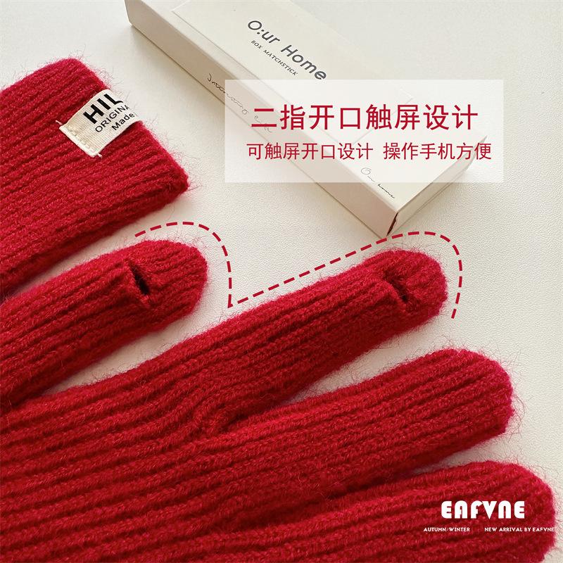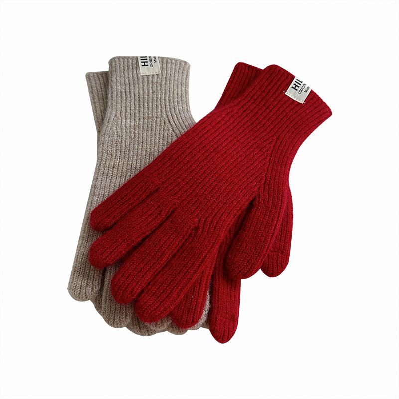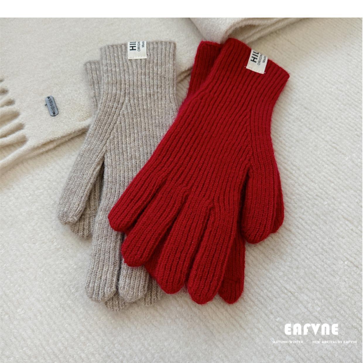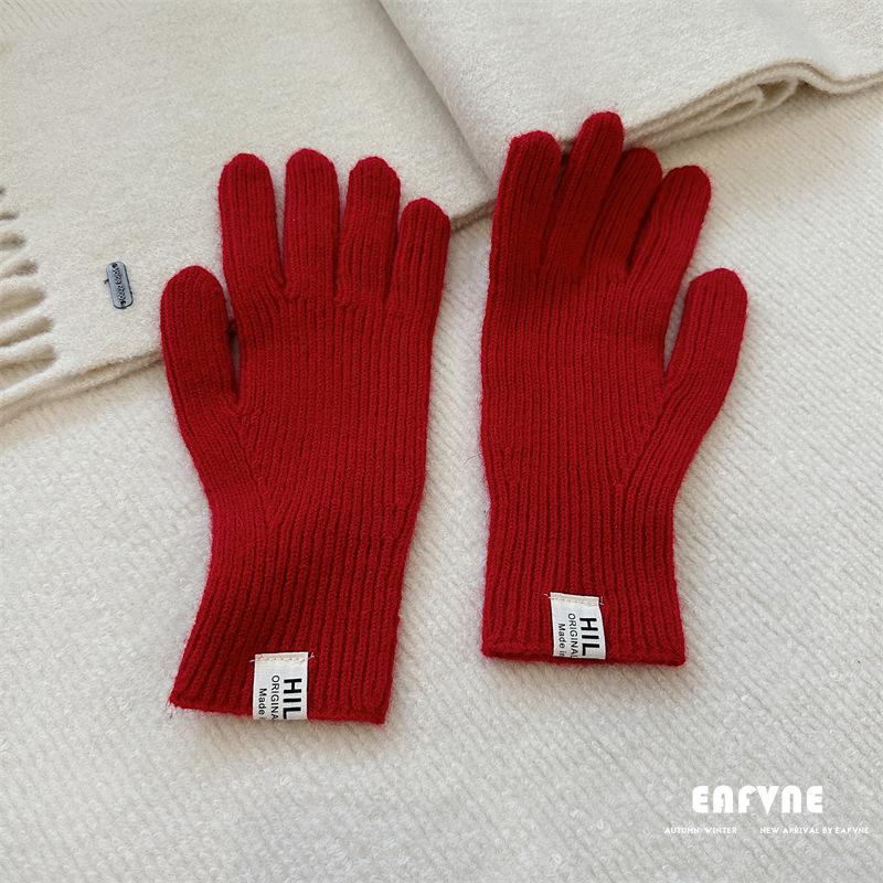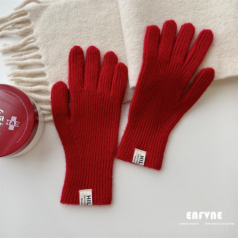 Guantes de lana de punto de color sólido para invierno para mujer, con pantalla táctil, resistentes al viento, cálidos y resistentes al frío, de lana roja para ciclismo de invierno.