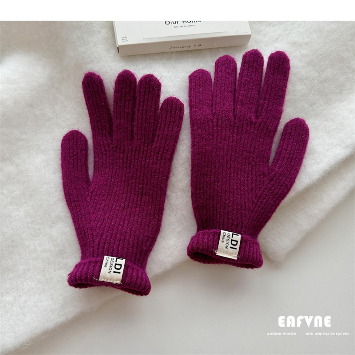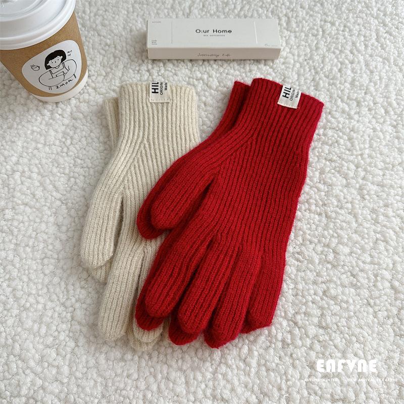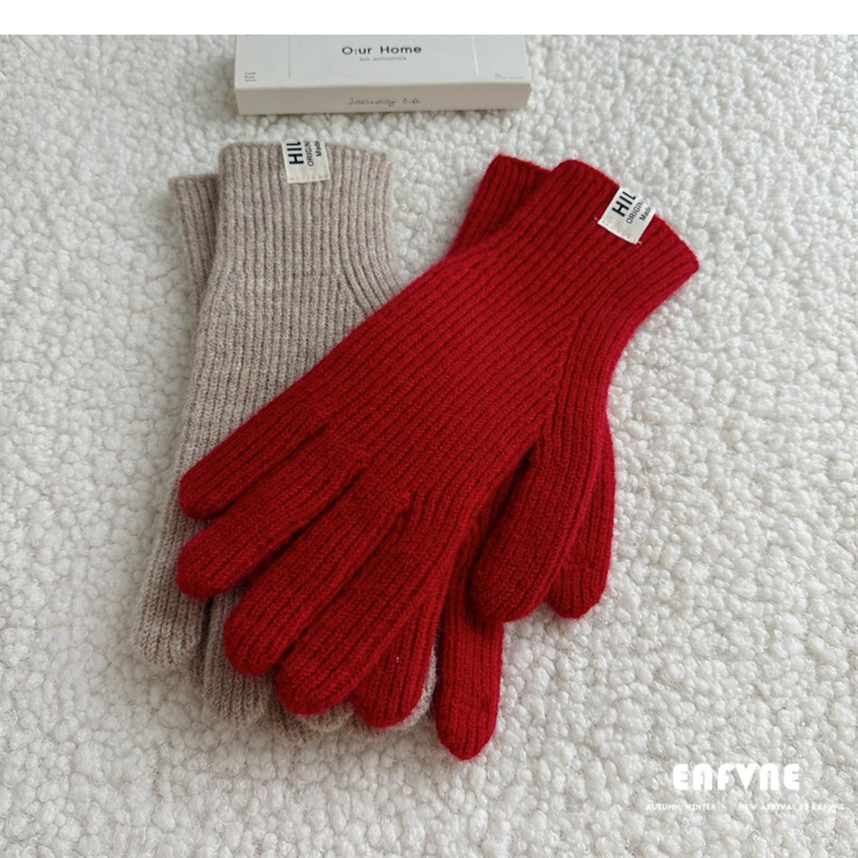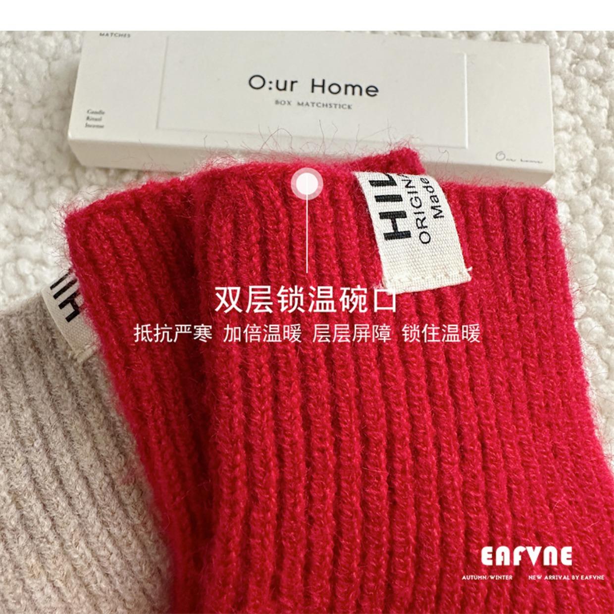 Guantes de lana de punto de color sólido para invierno para mujer, con pantalla táctil, resistentes al viento, cálidos y resistentes al frío, de lana roja para ciclismo de invierno.