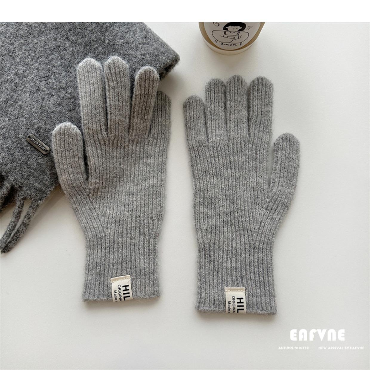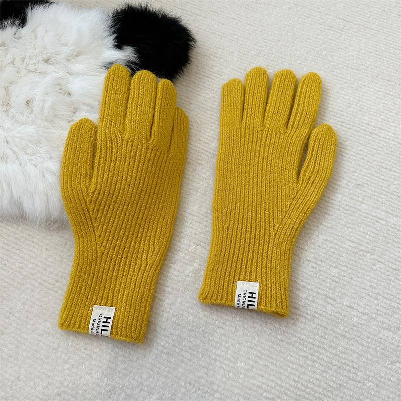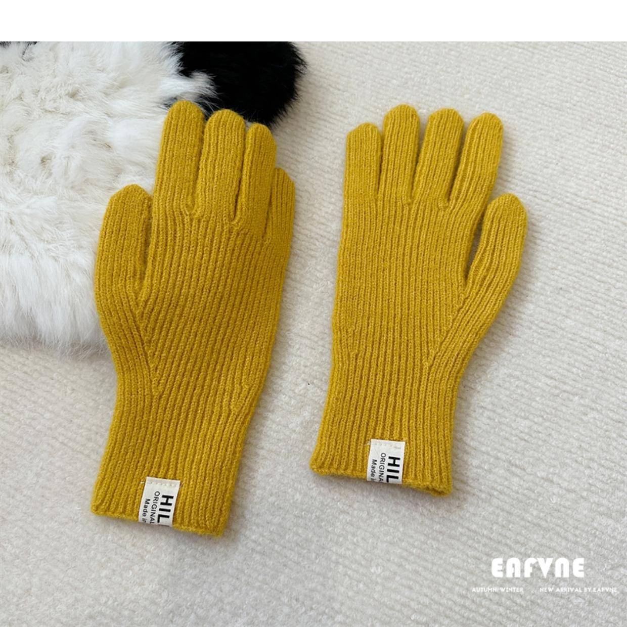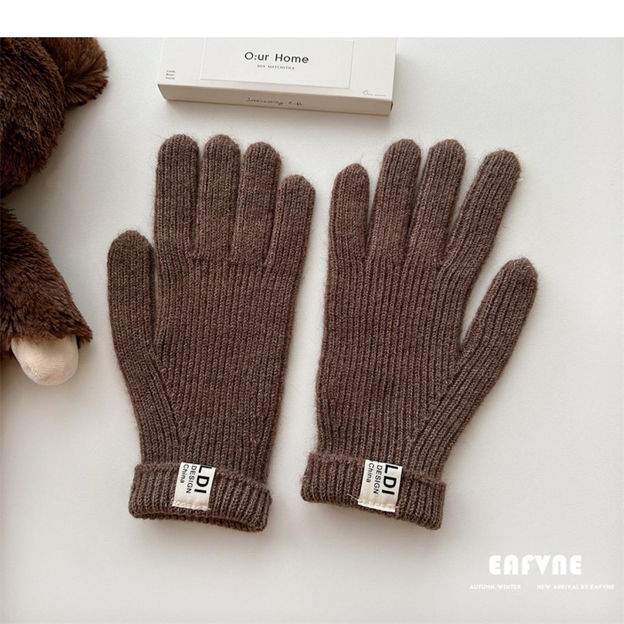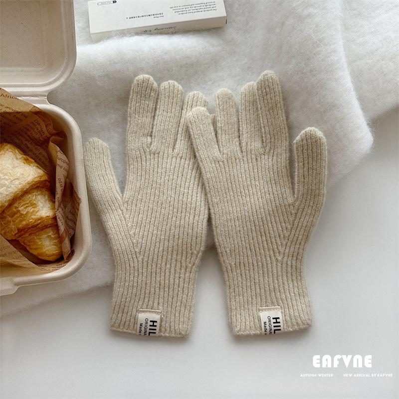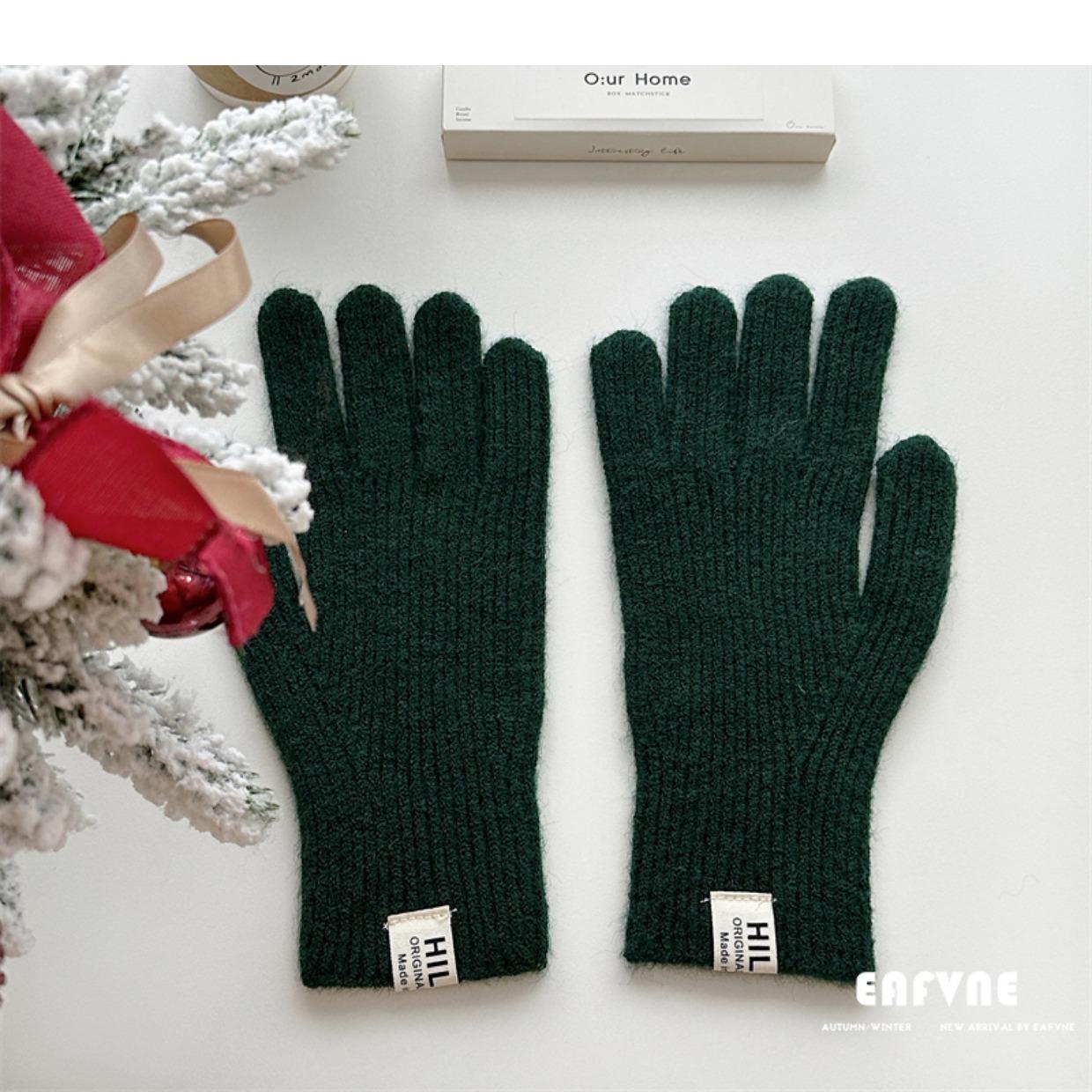 Guantes de lana de punto de color sólido para invierno para mujer, con pantalla táctil, resistentes al viento, cálidos y resistentes al frío, de lana roja para ciclismo de invierno.
