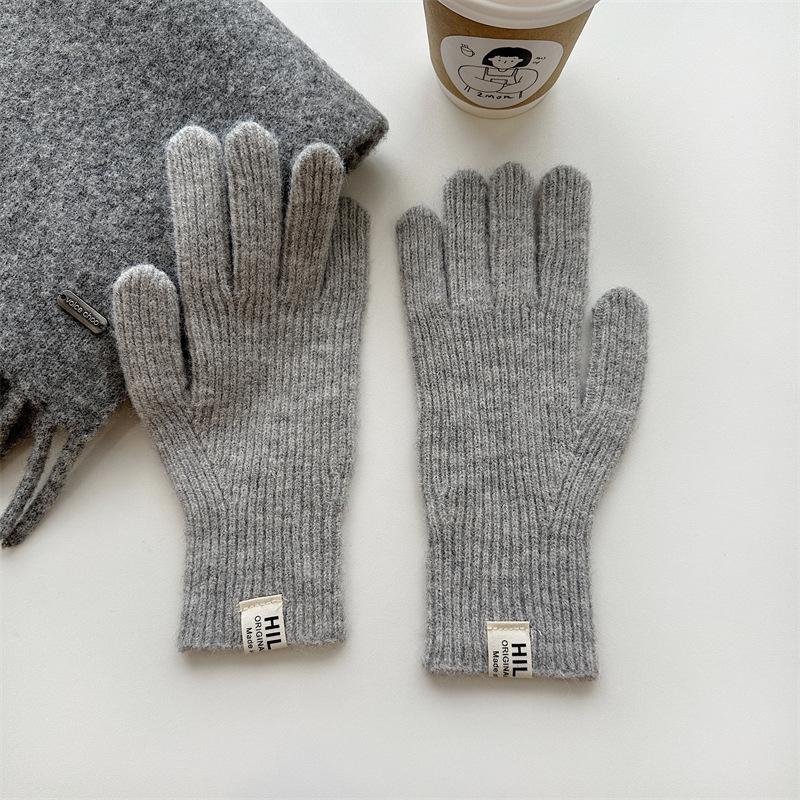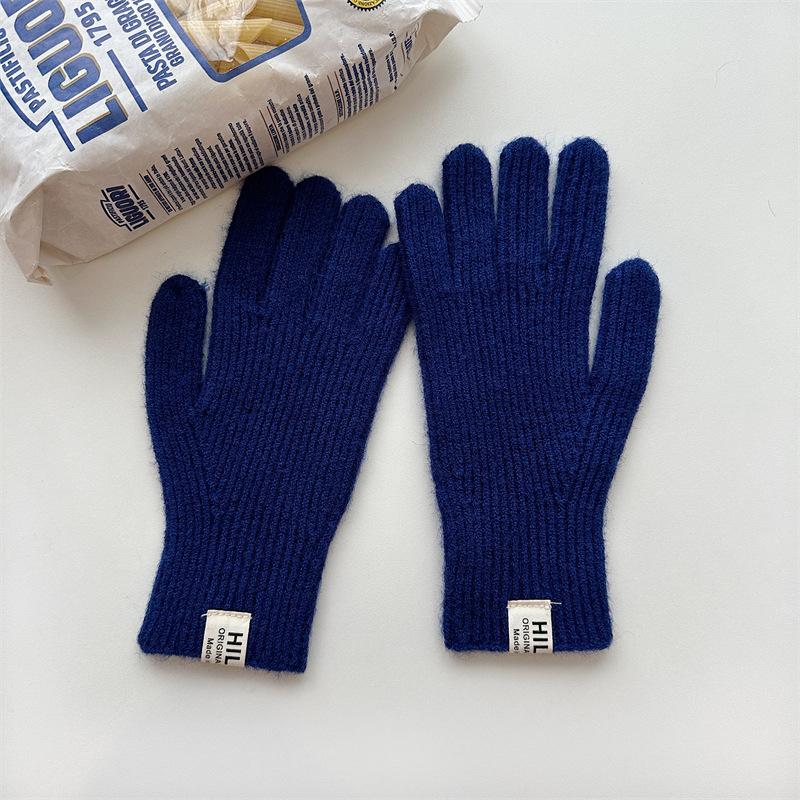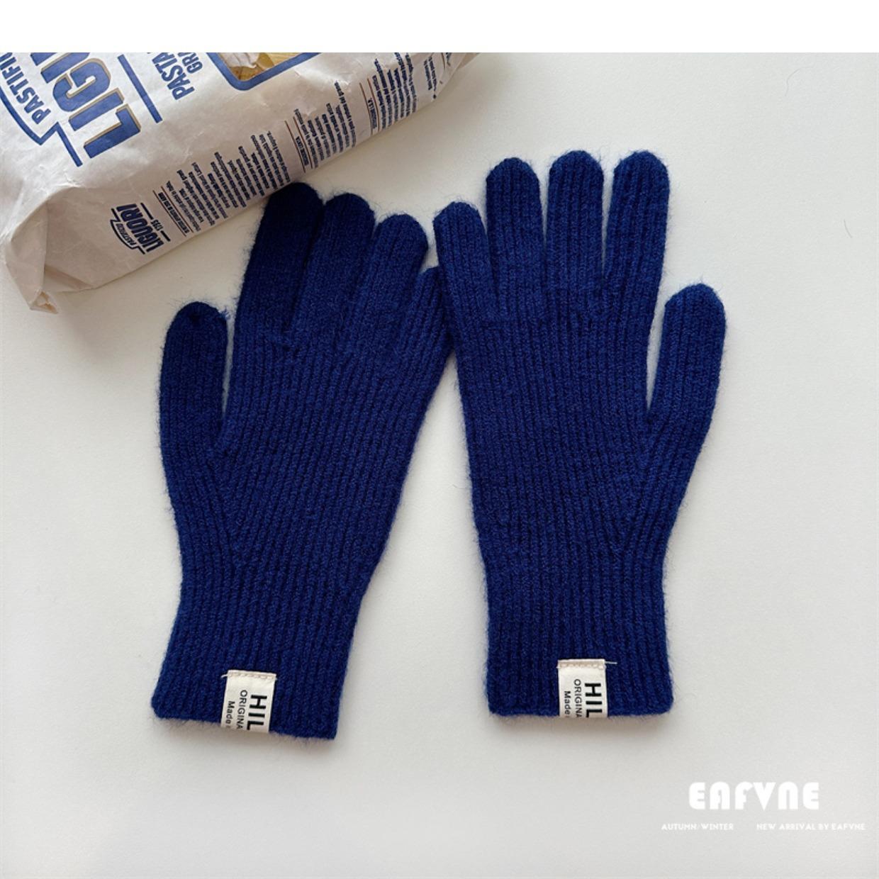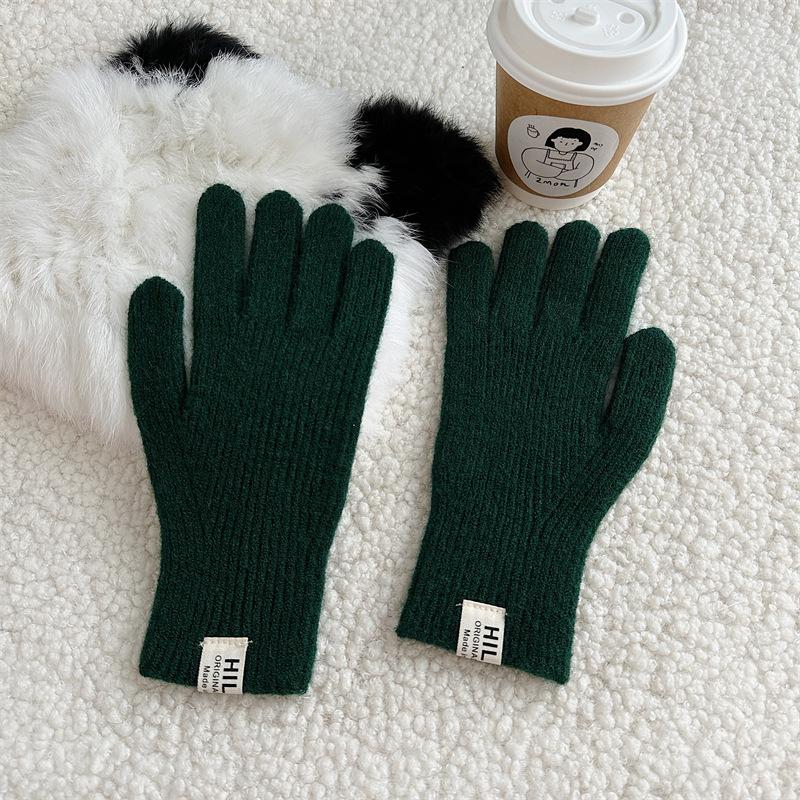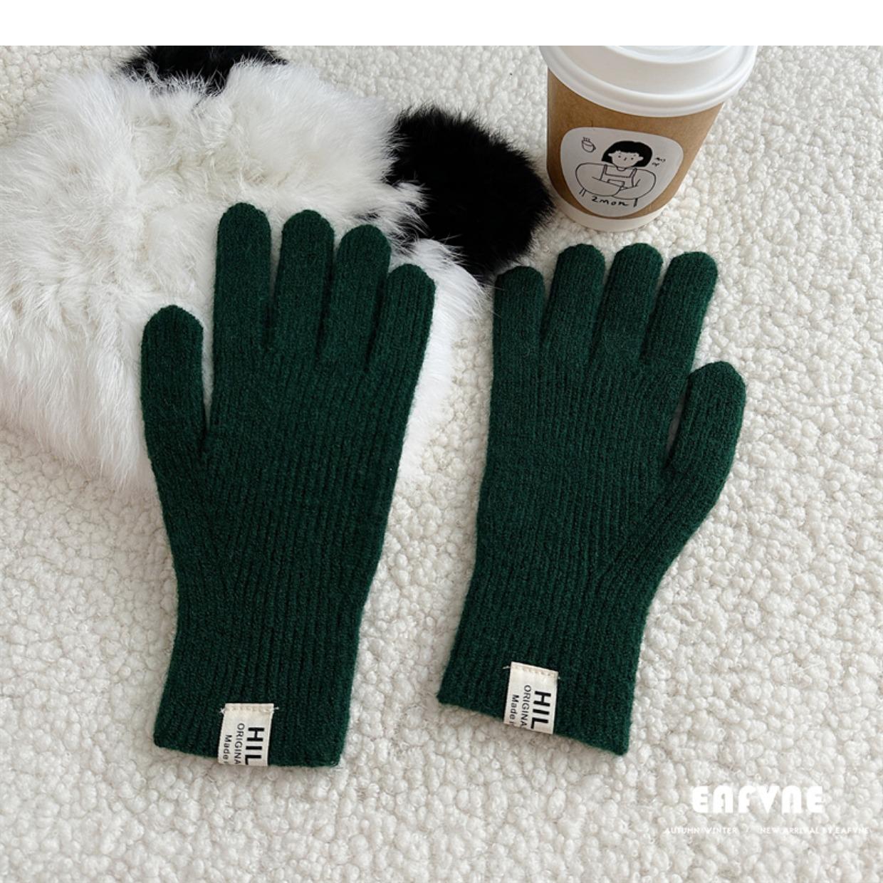 Guantes de lana de punto de color sólido para invierno para mujer, con pantalla táctil, resistentes al viento, cálidos y resistentes al frío, de lana roja para ciclismo de invierno.