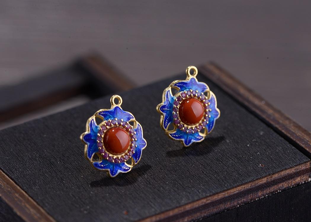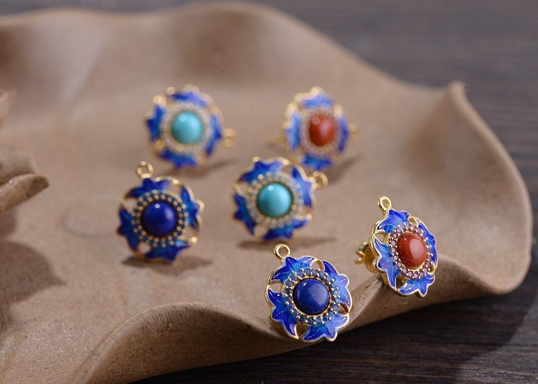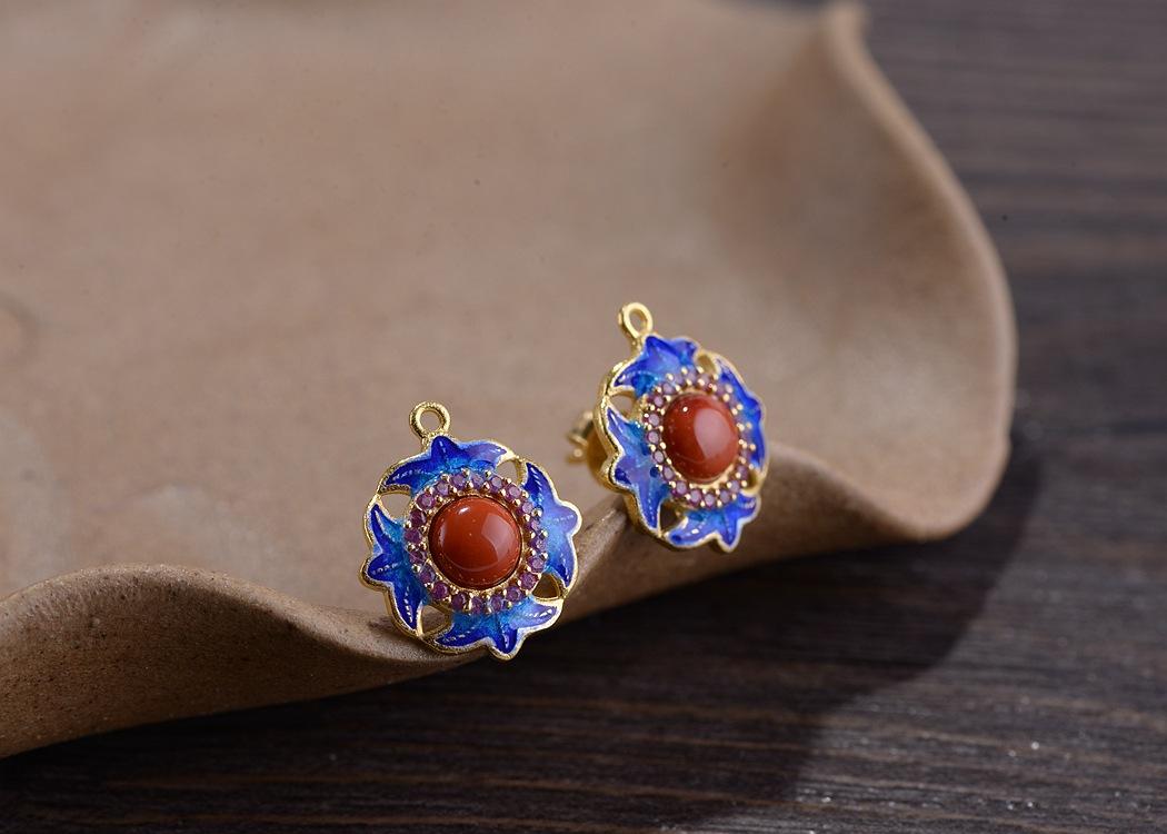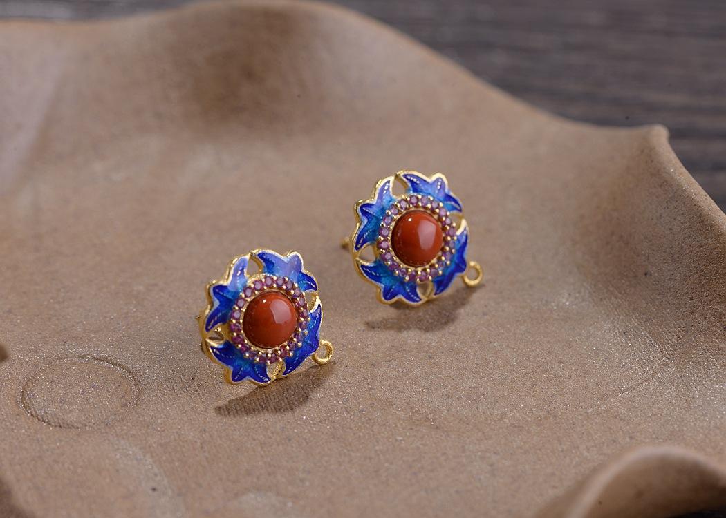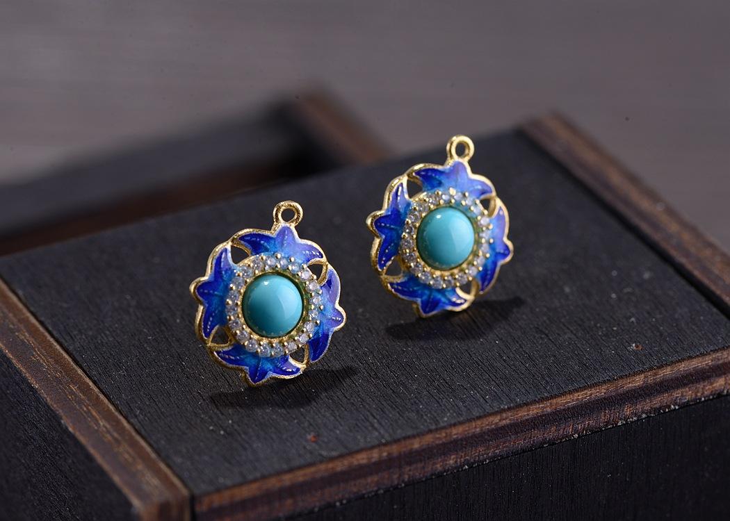 Pendientes artesanales de plata S925 bañados en oro azul quemado de Golden Deer King, venta al por mayor, pendientes redondos sencillos para mujer, accesorios de joyería