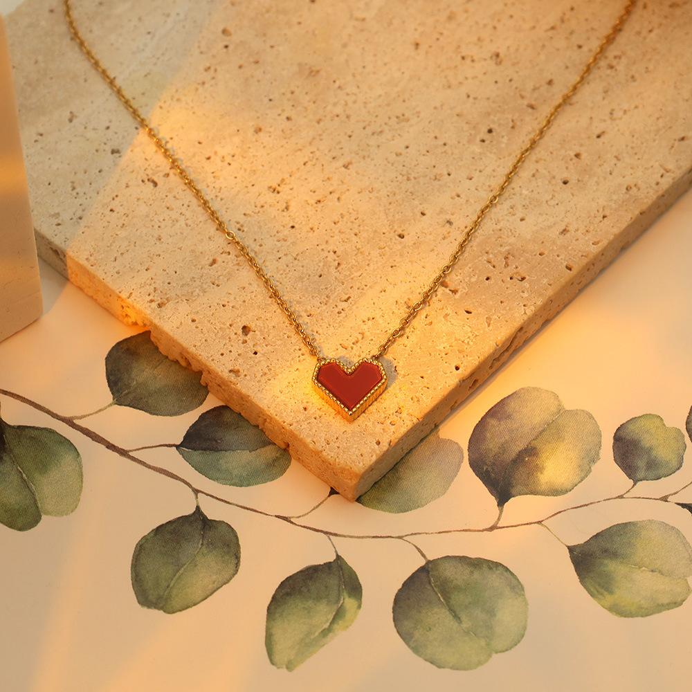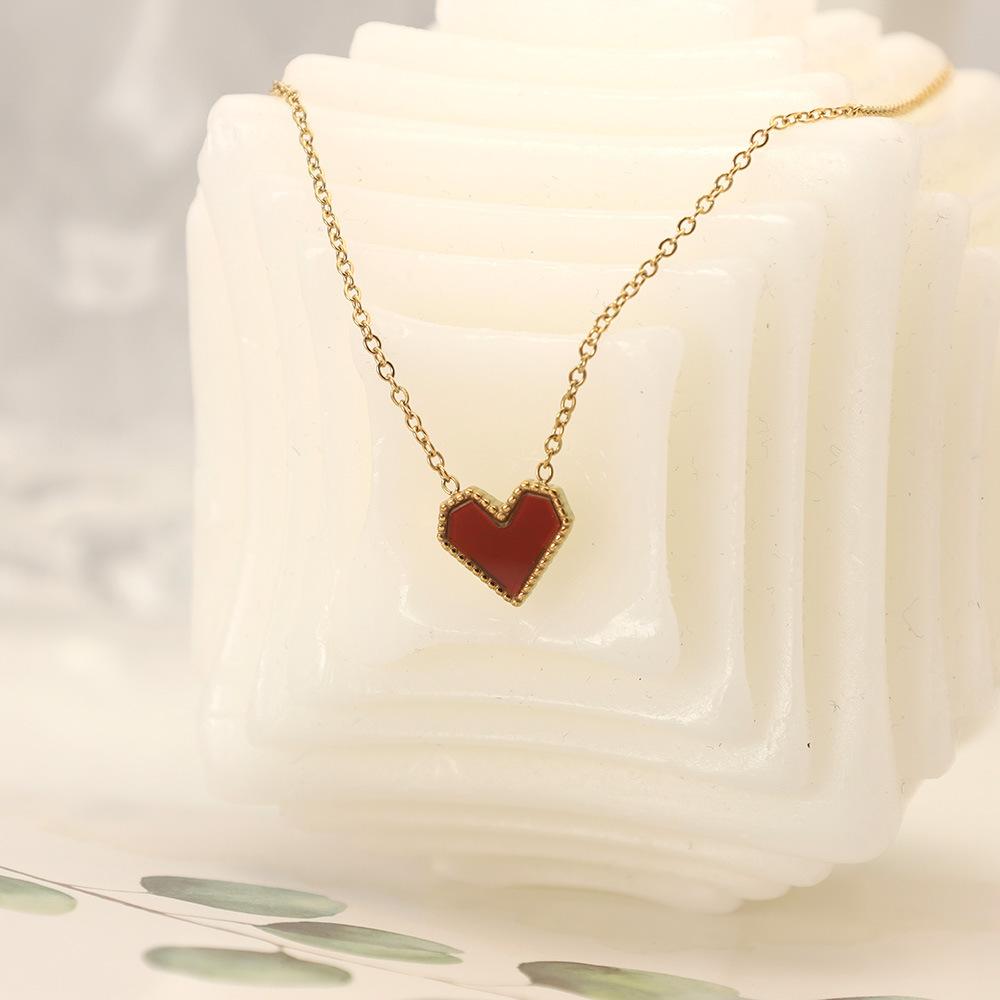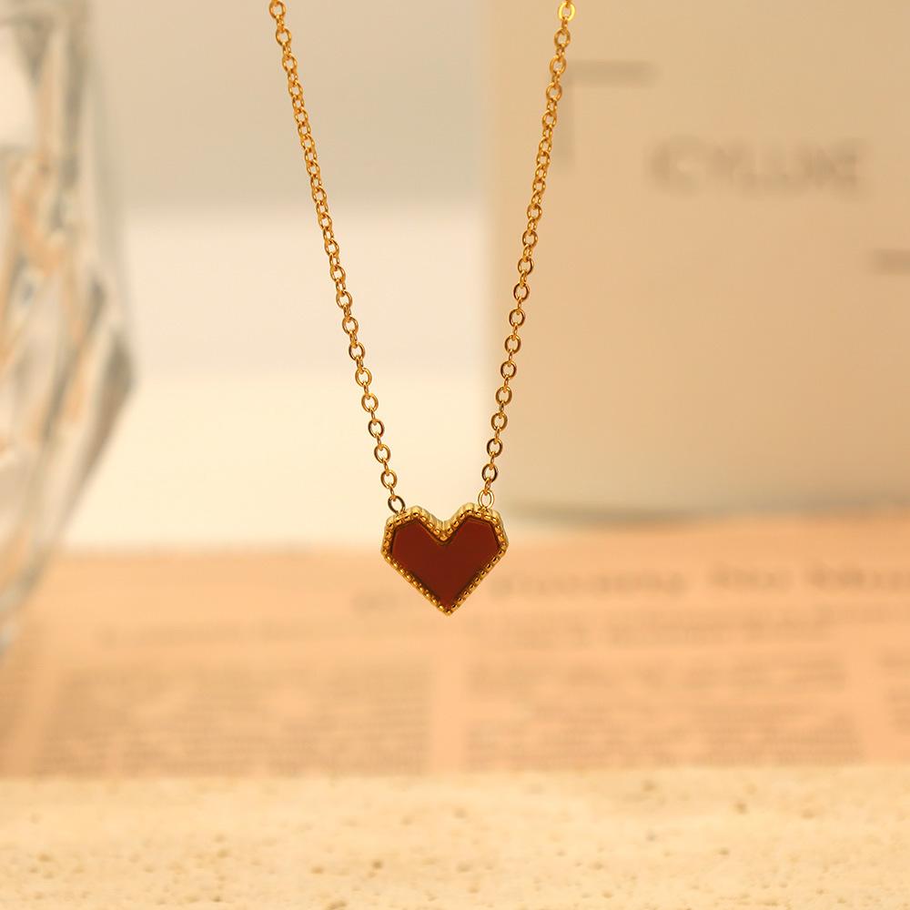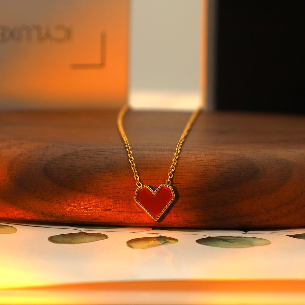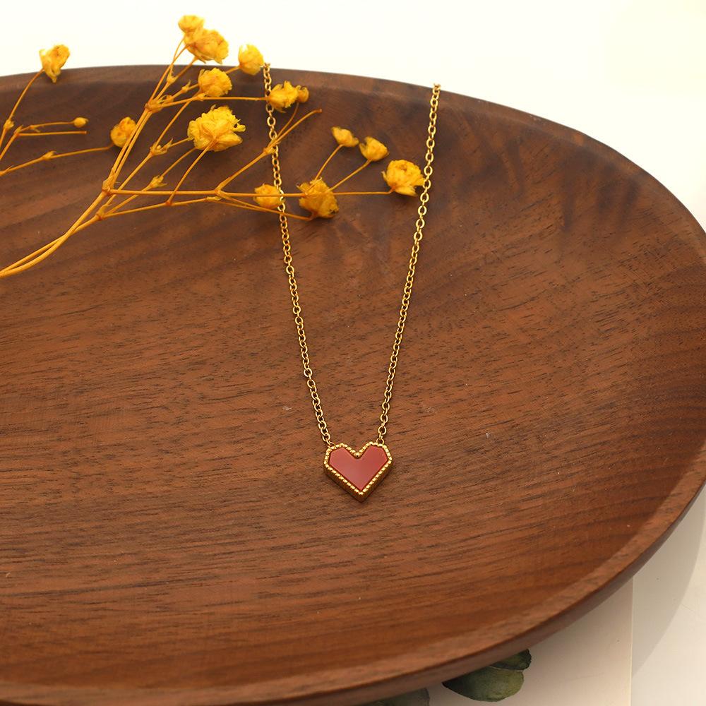 Collar de acero y titanio con cadena de clavícula de acrílico rojo vintage francés para mujer, estilo transfronterizo.
