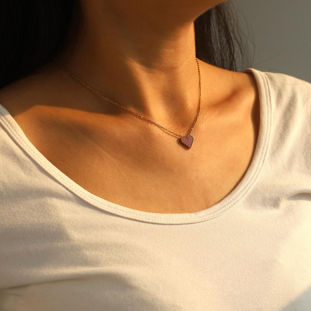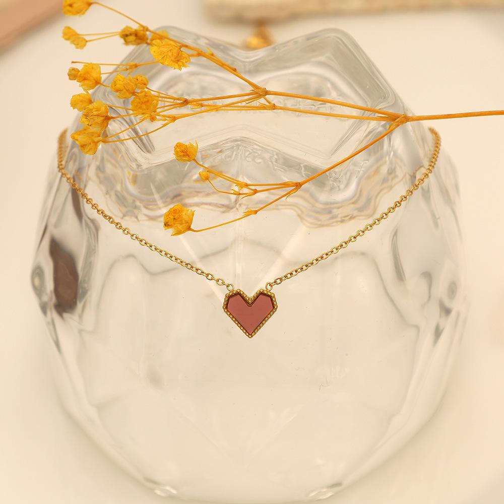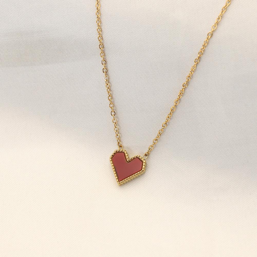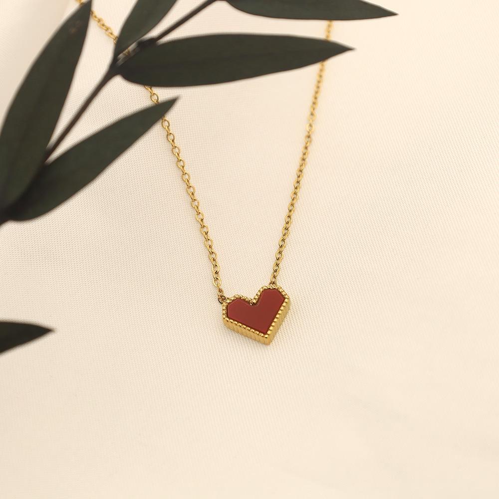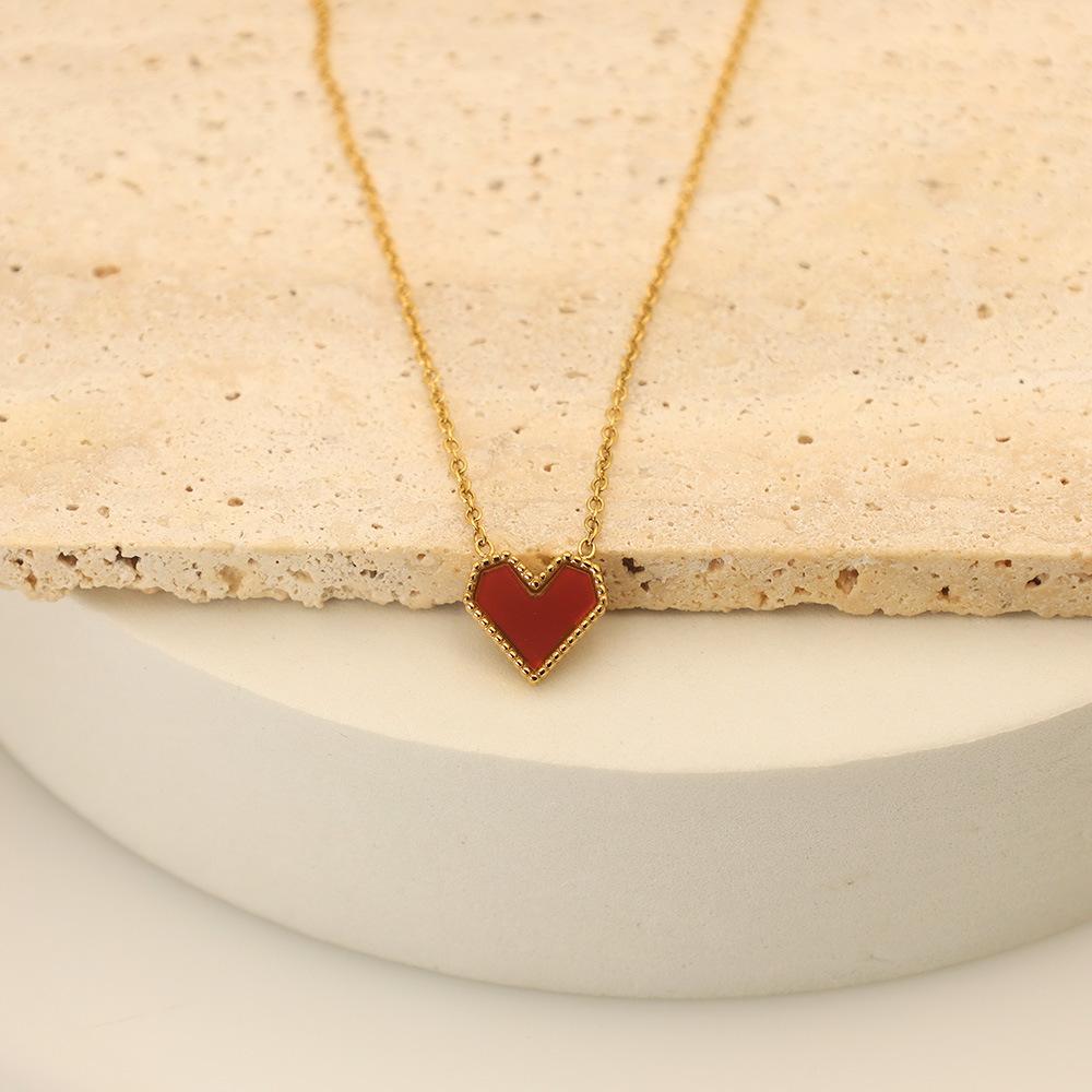 Collar de acero y titanio con cadena de clavícula de acrílico rojo vintage francés para mujer, estilo transfronterizo.