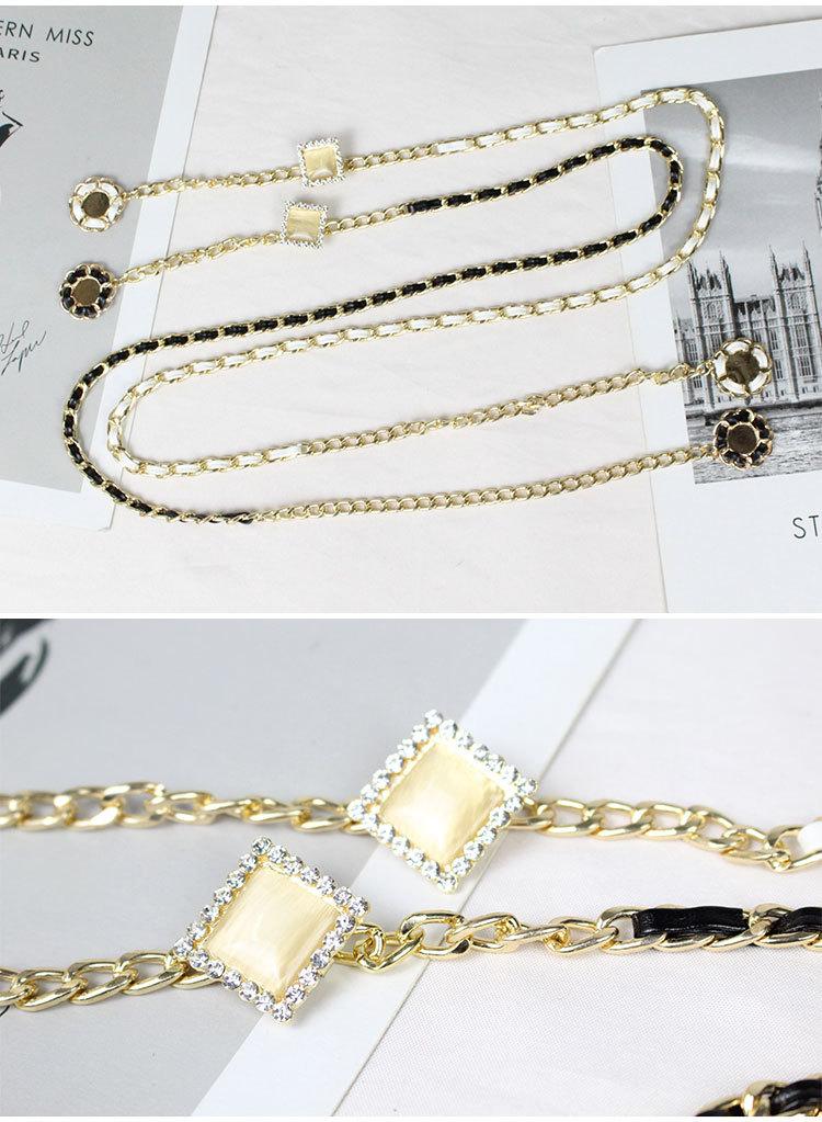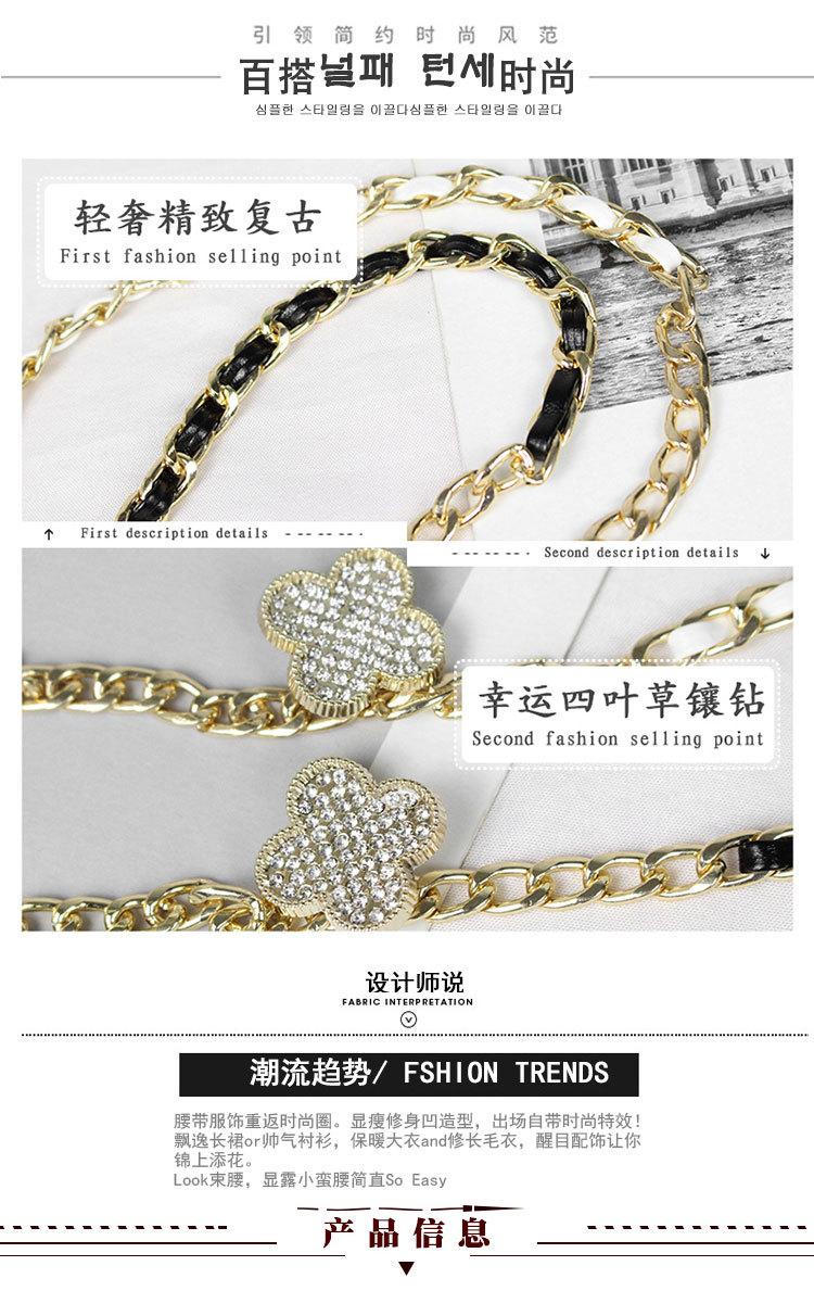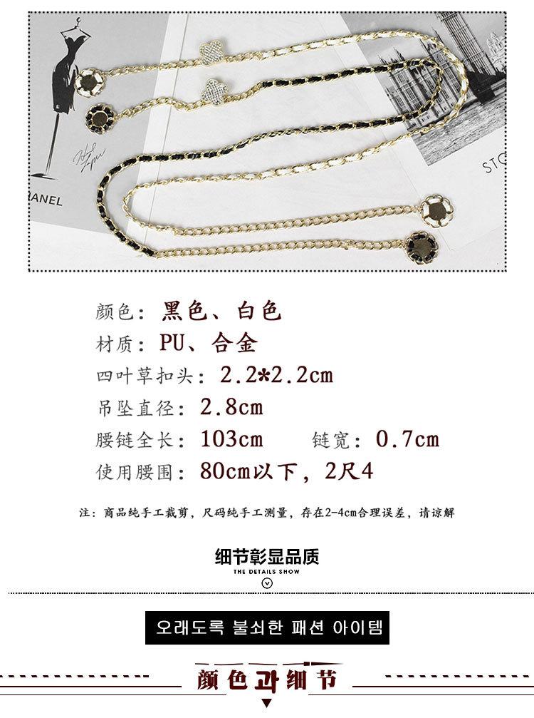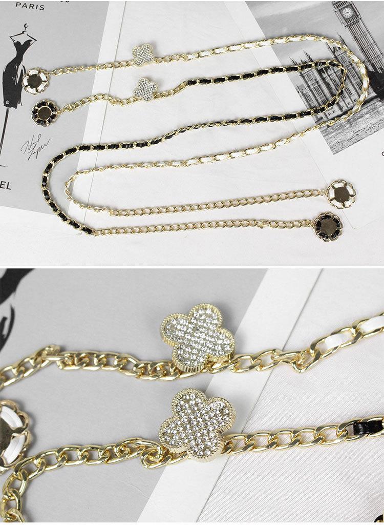 Cadena de Cintura de Metal para Mujer con Rhinestone Trébol de Cuatro Hojas Cadena Decoración de Borla Accesorios para Vestido Combinación Total Estilo Chanel Cinturón Delgado