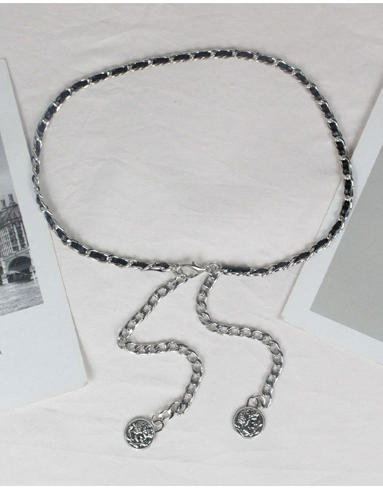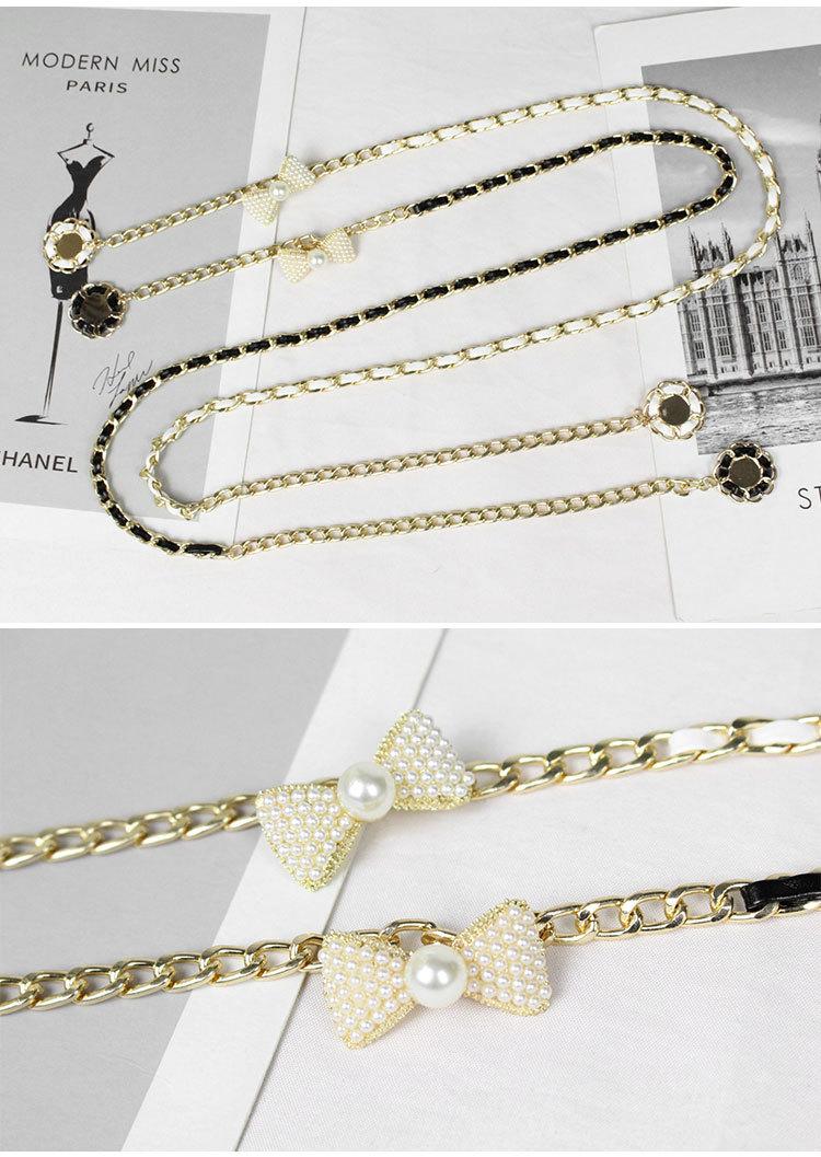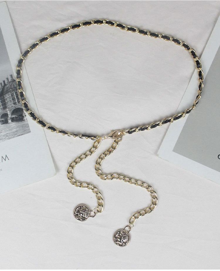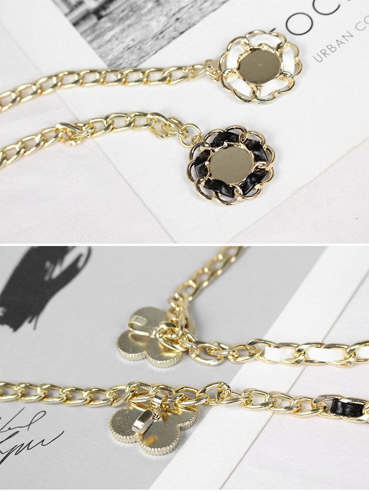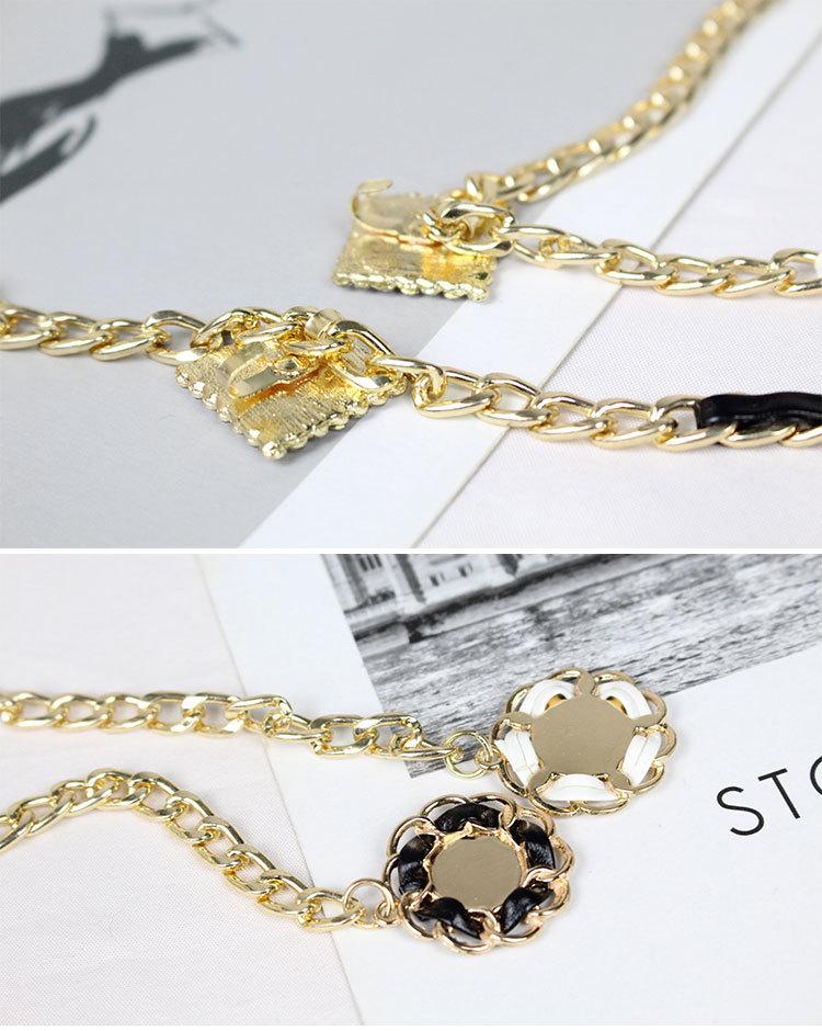 Cadena de Cintura de Metal para Mujer con Rhinestone Trébol de Cuatro Hojas Cadena Decoración de Borla Accesorios para Vestido Combinación Total Estilo Chanel Cinturón Delgado