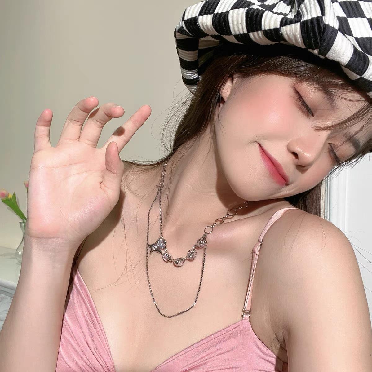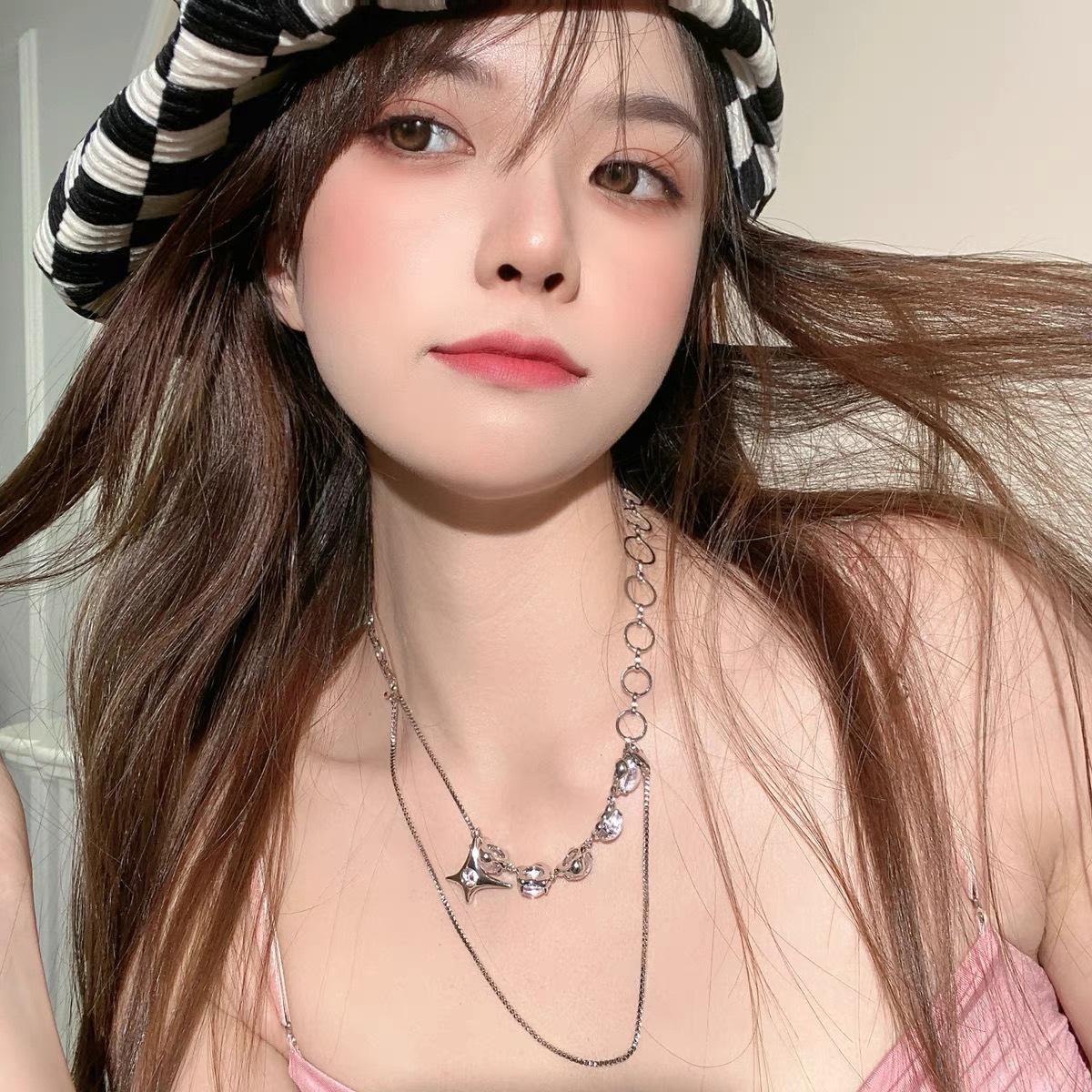 Collar con forma especial de estrella y costura de cristal, cadena de clavícula, collar simple con cruz de estrella, cadena de suéter, nicho dulce y genial