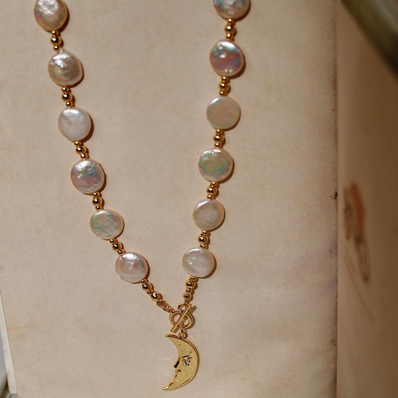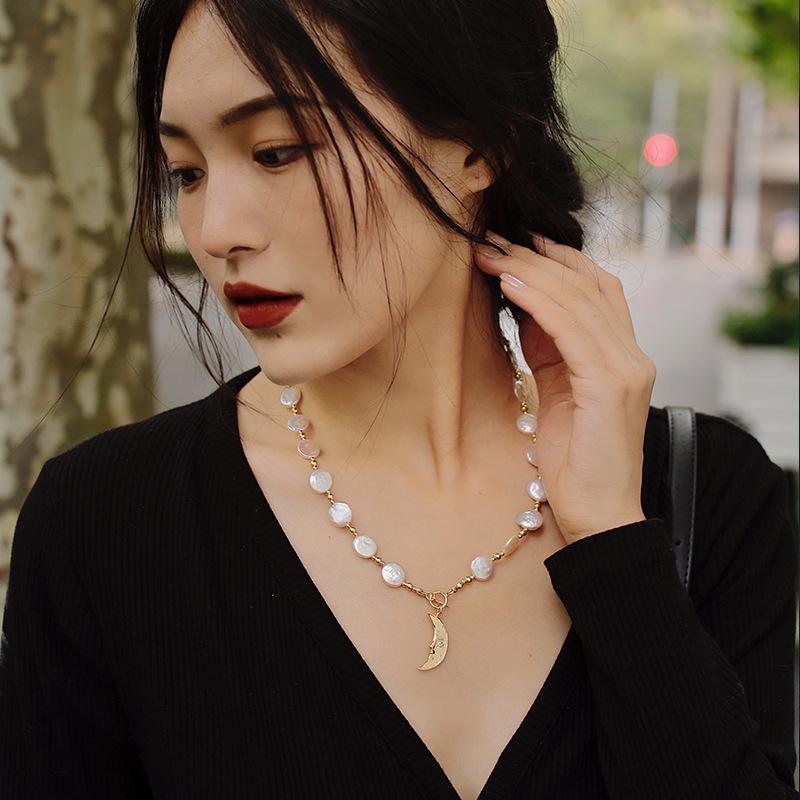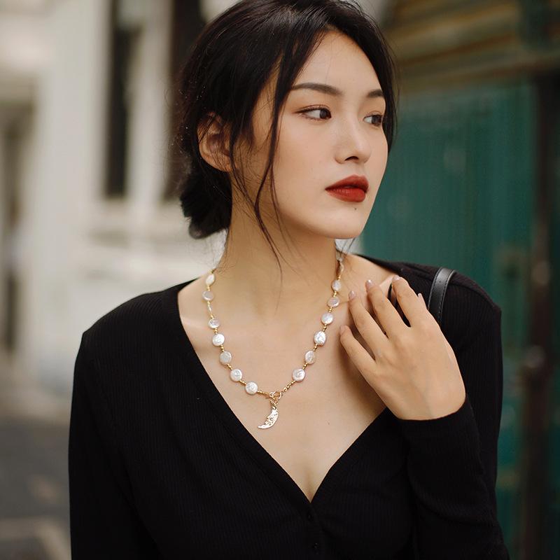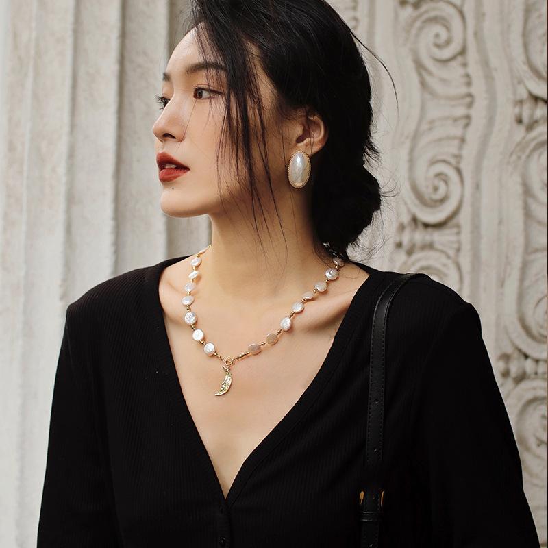 Fábrica Estilo Europeo y Americano Retro Estilo Perla de Agua Dulce Disco Nácar Serpentina Collar de Moda Collar de Mujer