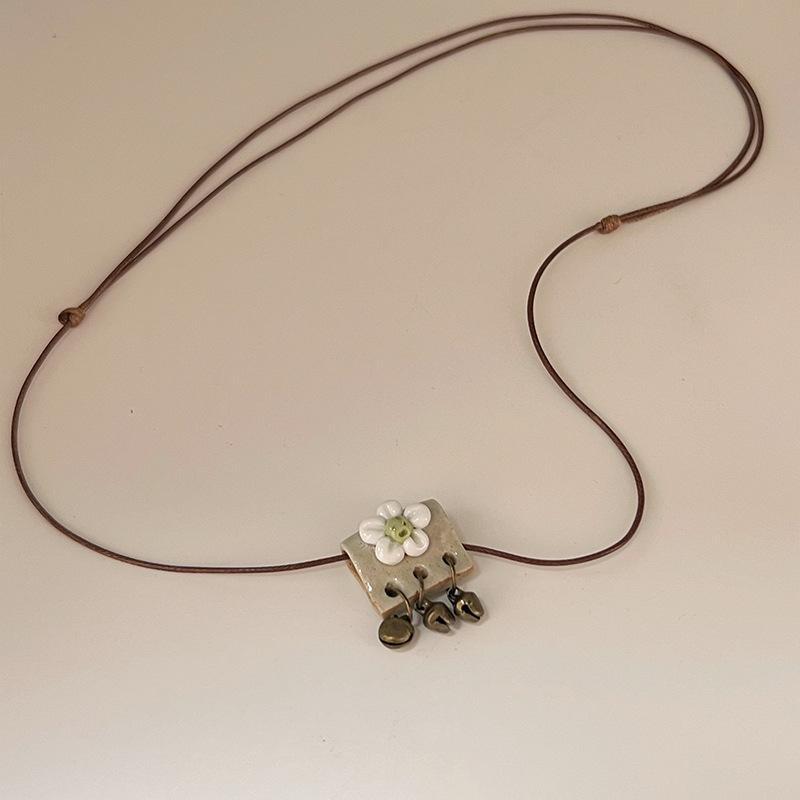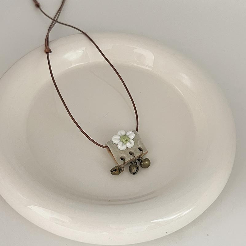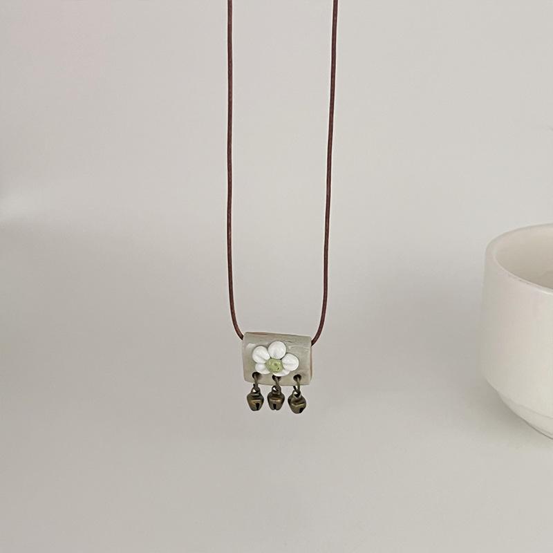 Collar con colgante de campana de mariposa de cerámica de estilo étnico retro para mujer 2023, nuevo accesorio de cadena larga de estilo antiguo a la moda