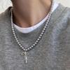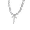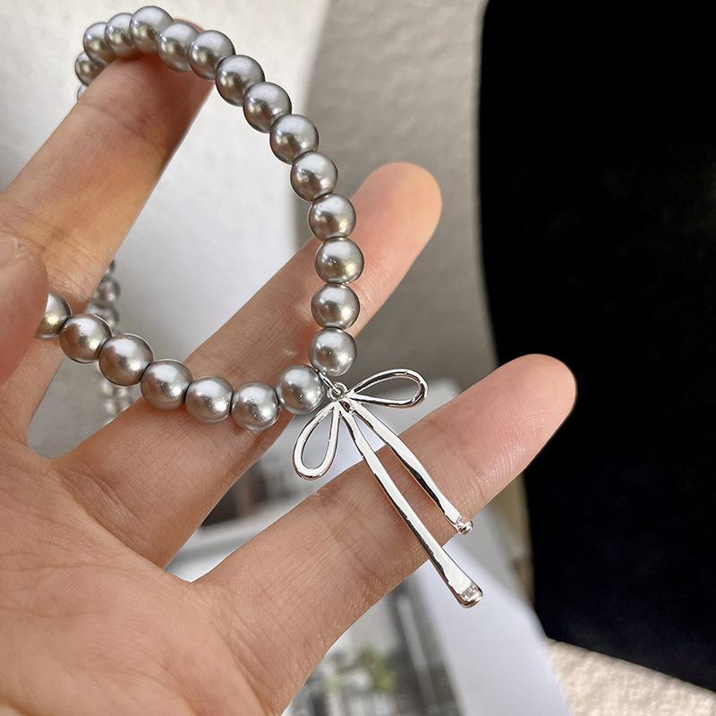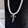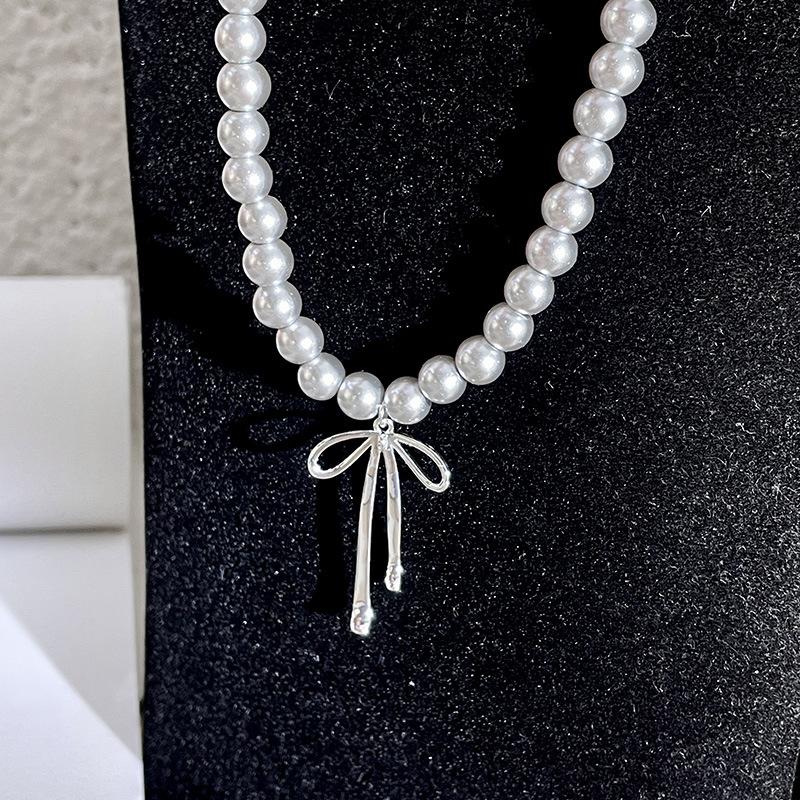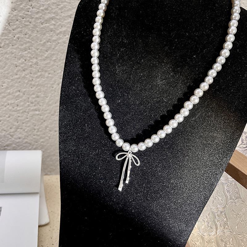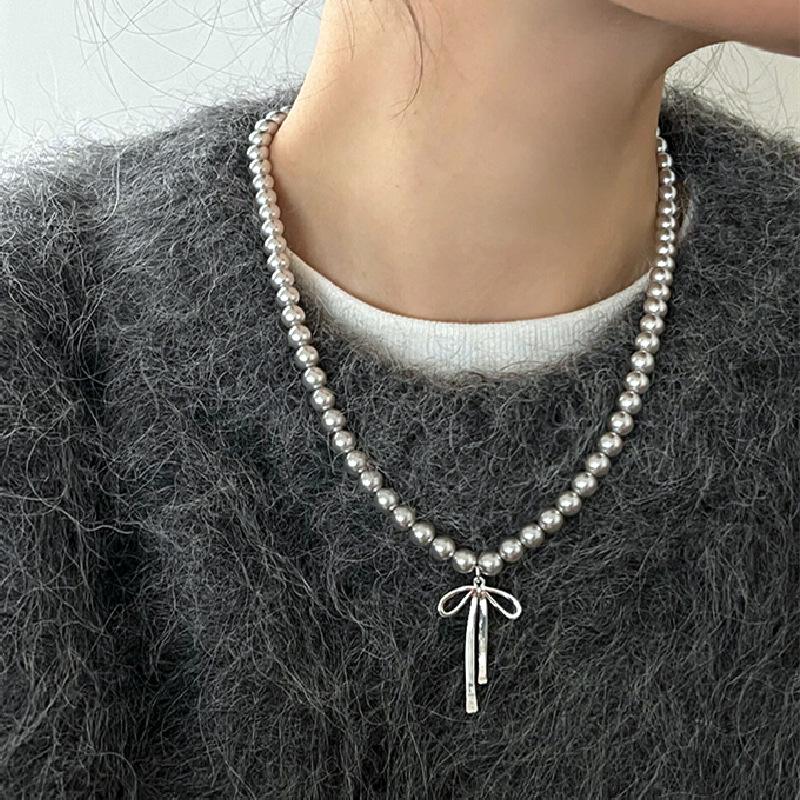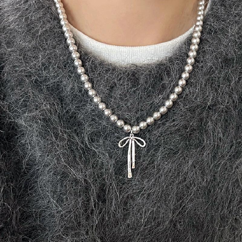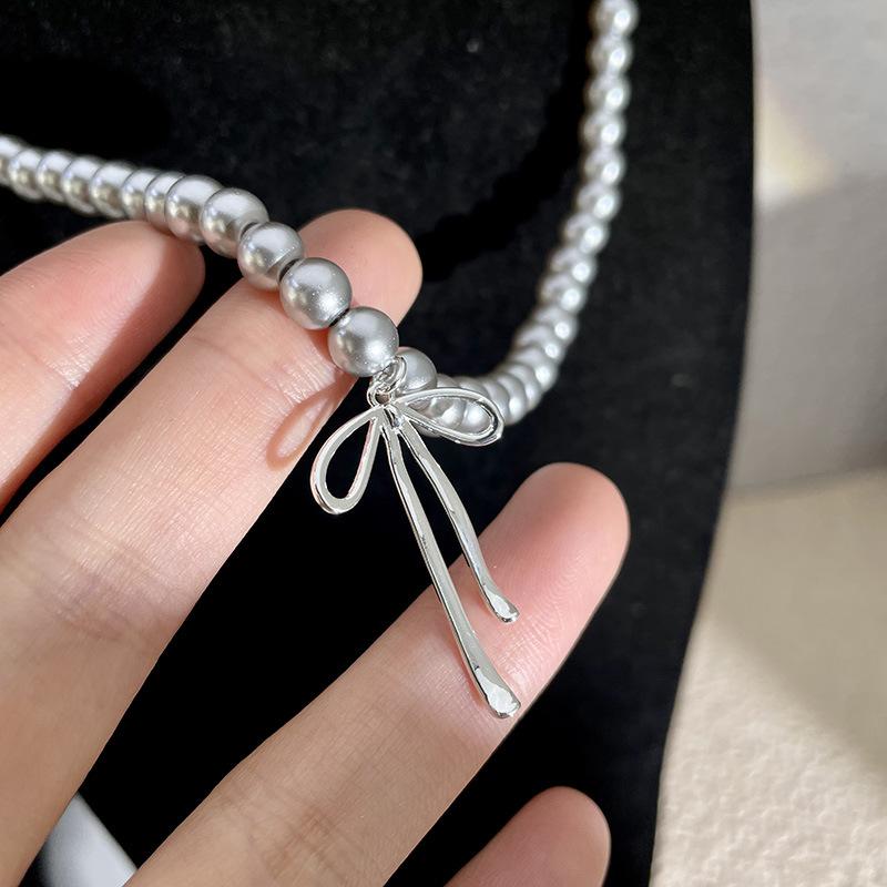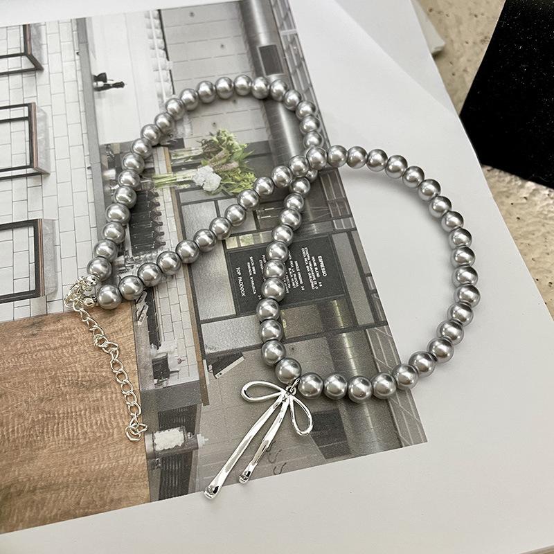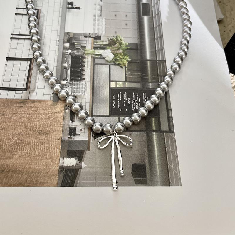 Collar de perlas grises con cuentas nuevo colgante de lazo único cadena para suéter accesorios de otoño e invierno collar para mujer cadena para clavícula