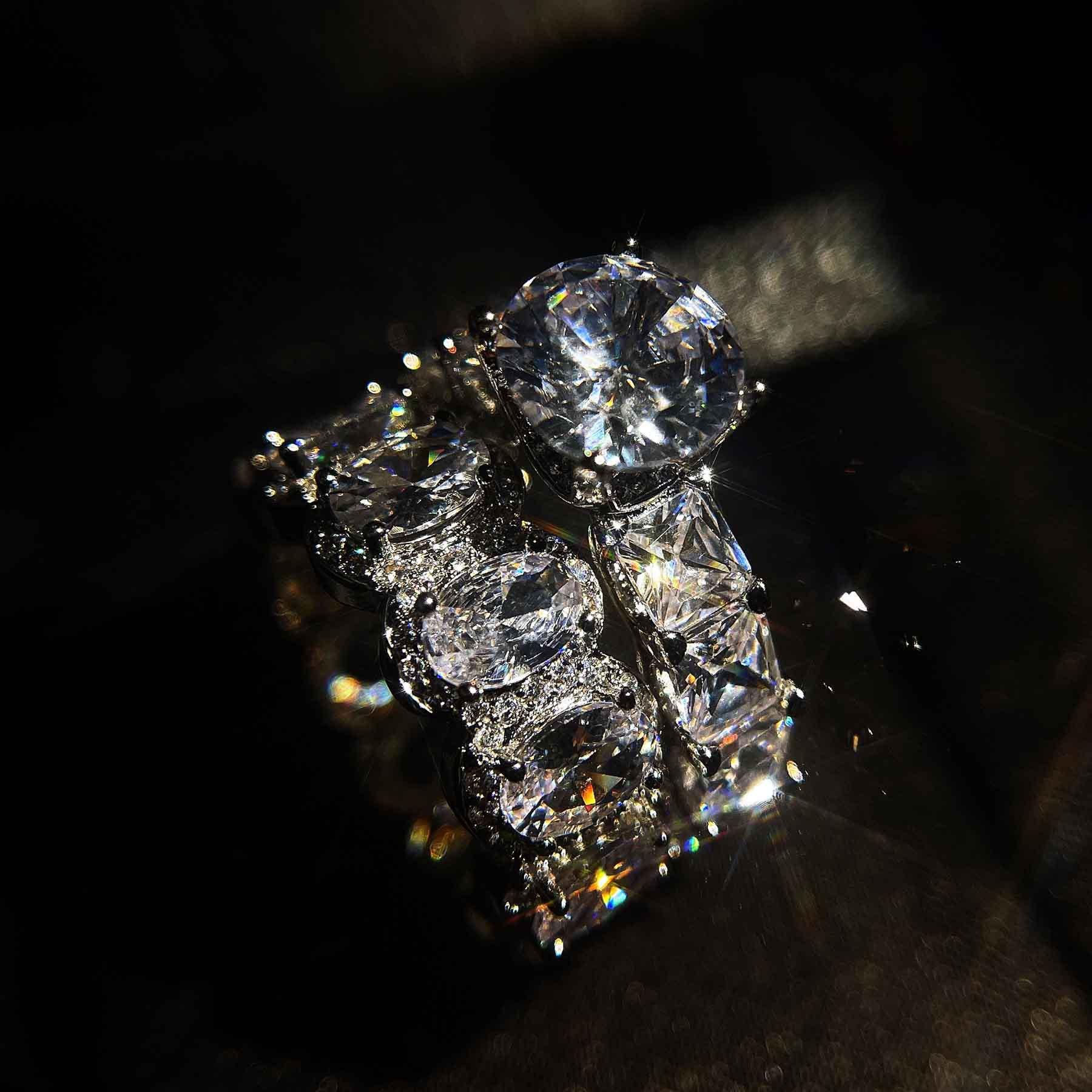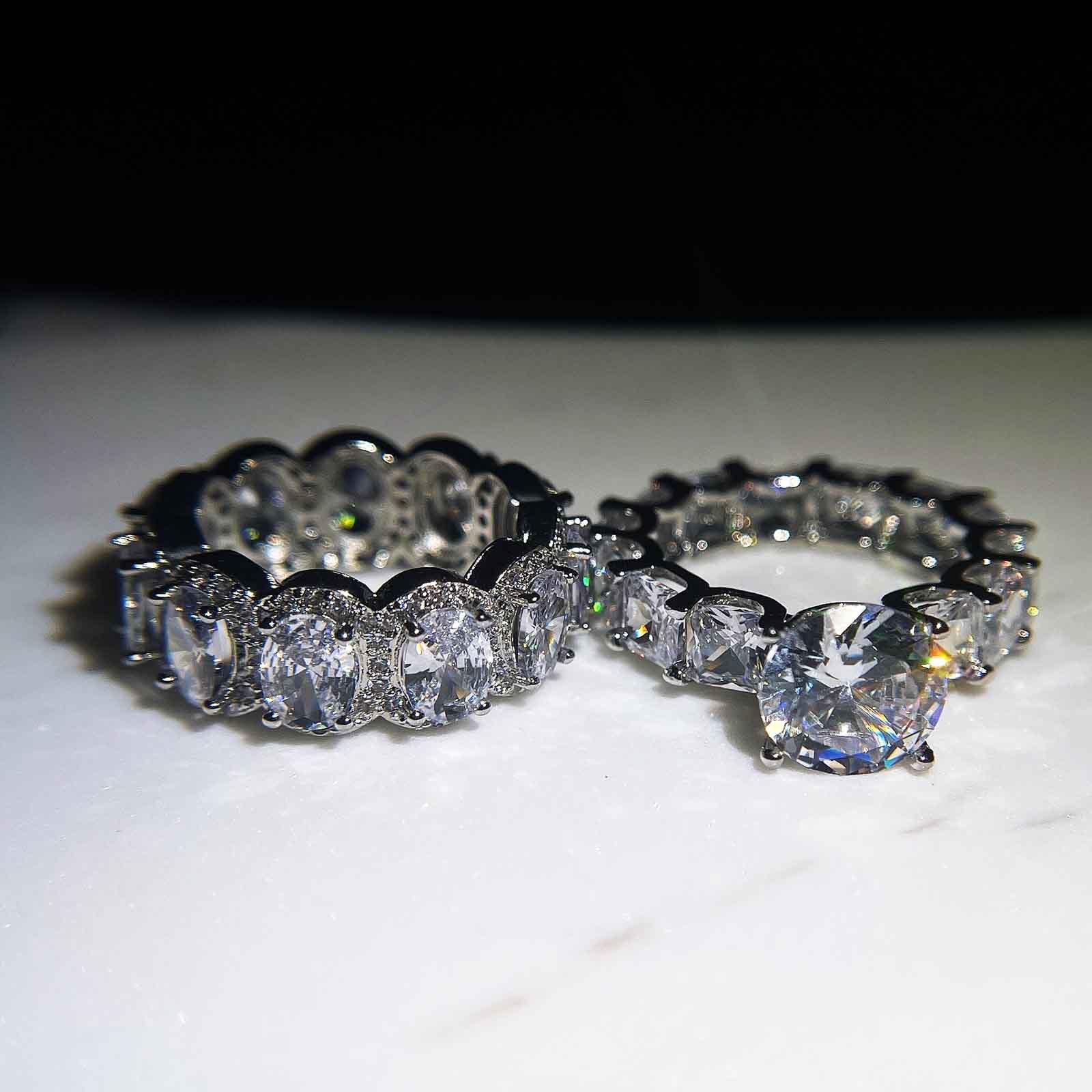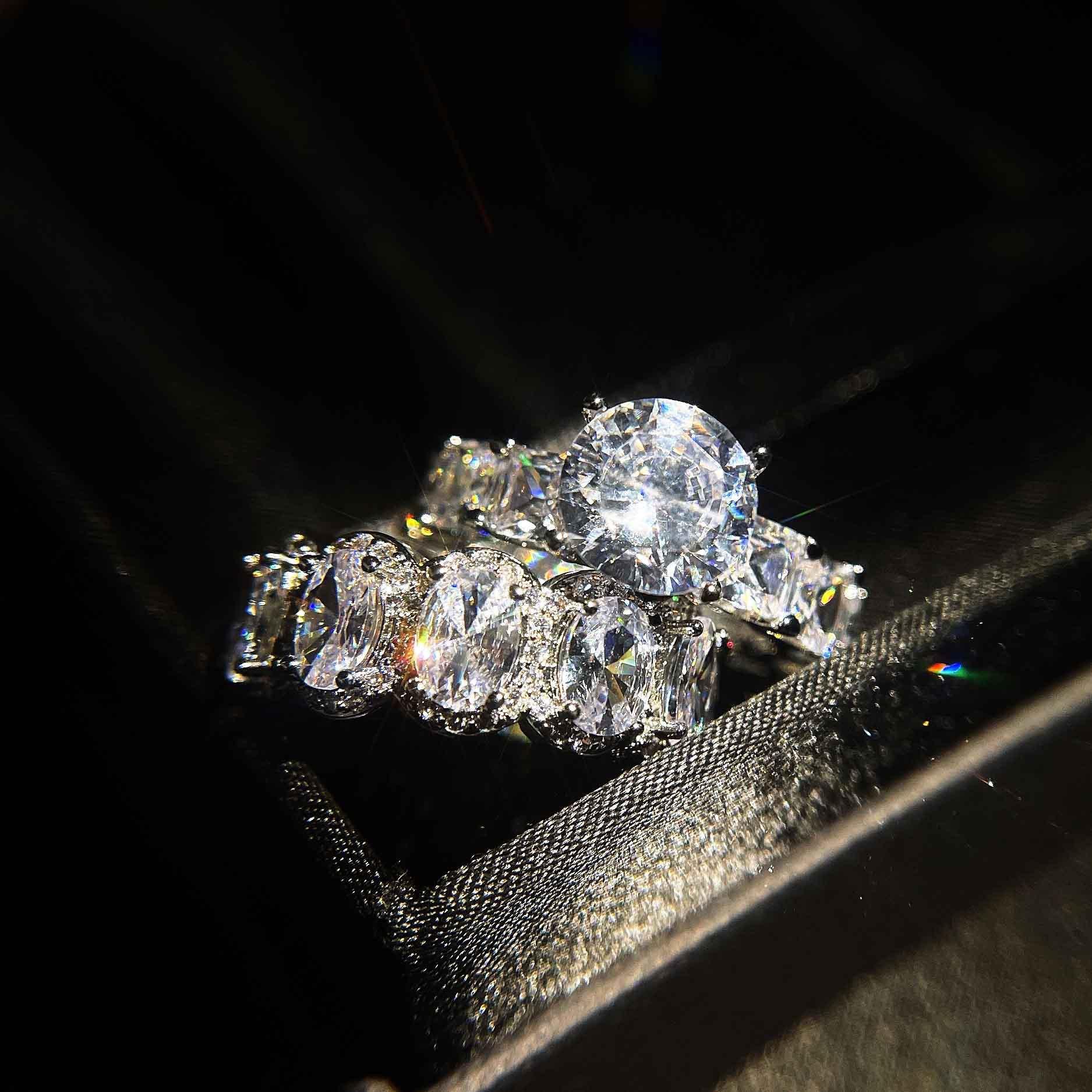 Zhenrong AliExpress Explosiones Super Flash Imitación Diamante Mosan Juego Anillo Europeo y Americano Micro Incrustado Diamante Completo Zirconio Anillo de Compromiso