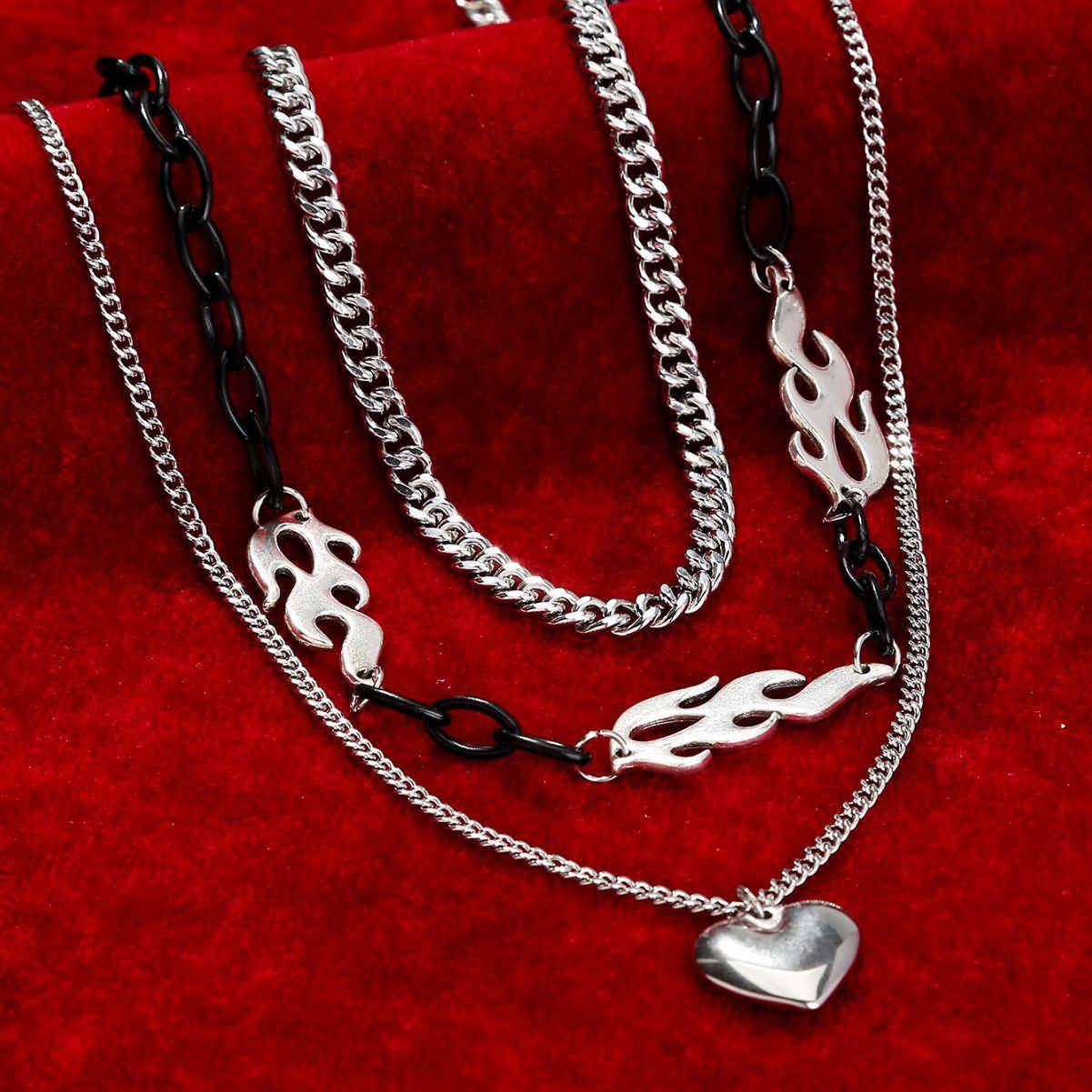 Joyería transfronteriza europea y americana Collar de llama dominante para hombres y mujeres Moda Simple Europeo y Americano Hip Hop Amor Collar multicapa