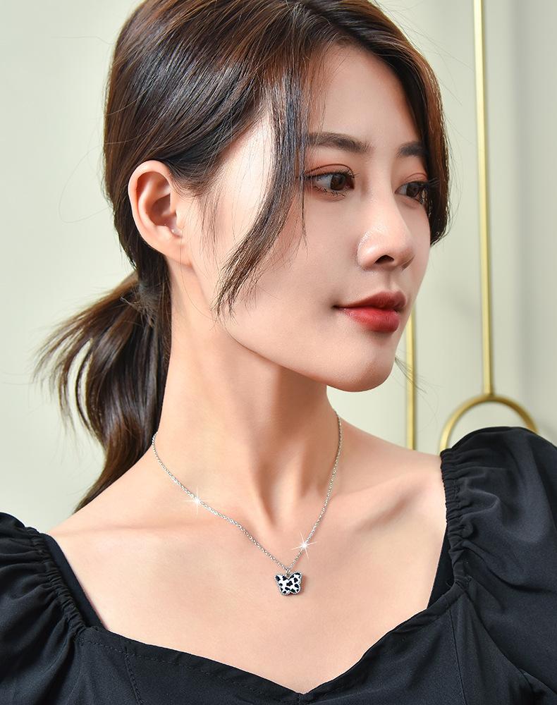 Venta directa de fábrica, collar de circonita con flor de cerezo y acero de titanio para mujer, personalidad de celebridad de Internet, collar de flores y hojas de una pieza de dos piezas al por mayor