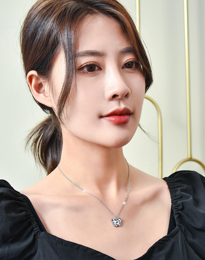 Collar de mariposa con alas batientes, personalizado, con transmisión en vivo, suministro directo para mujer, cadena de clavícula de nácar natural de acero y titanio, accesorios de diseño de nicho