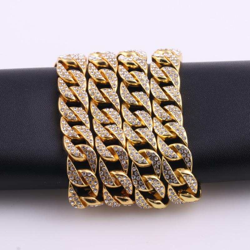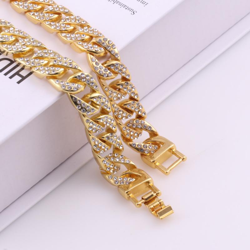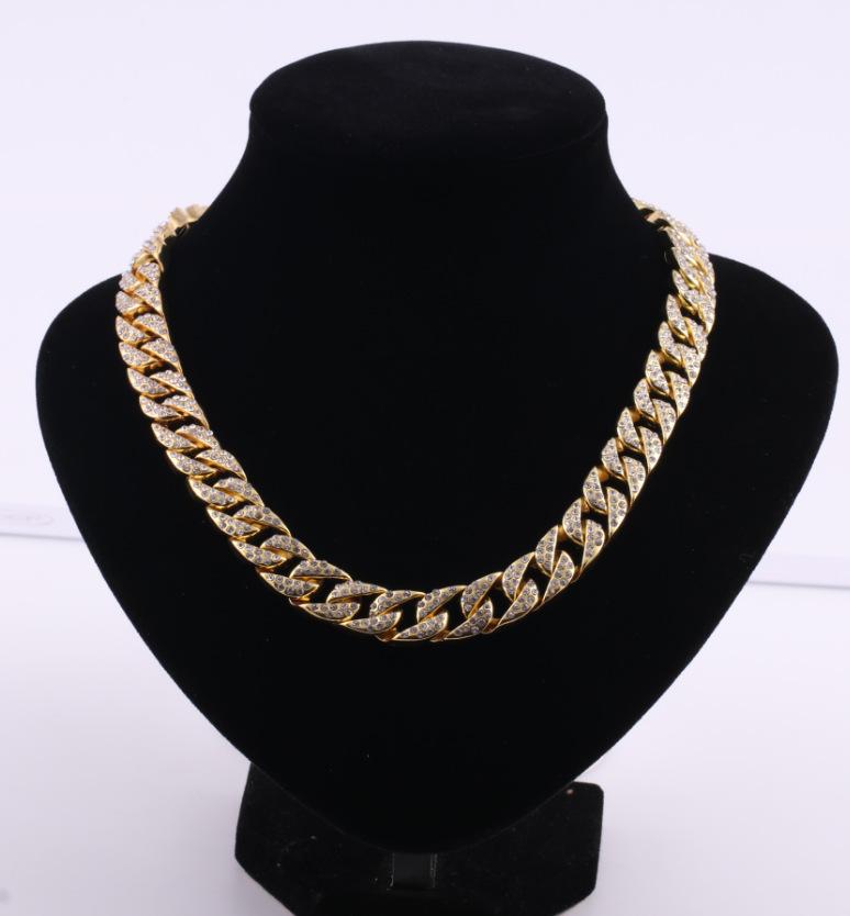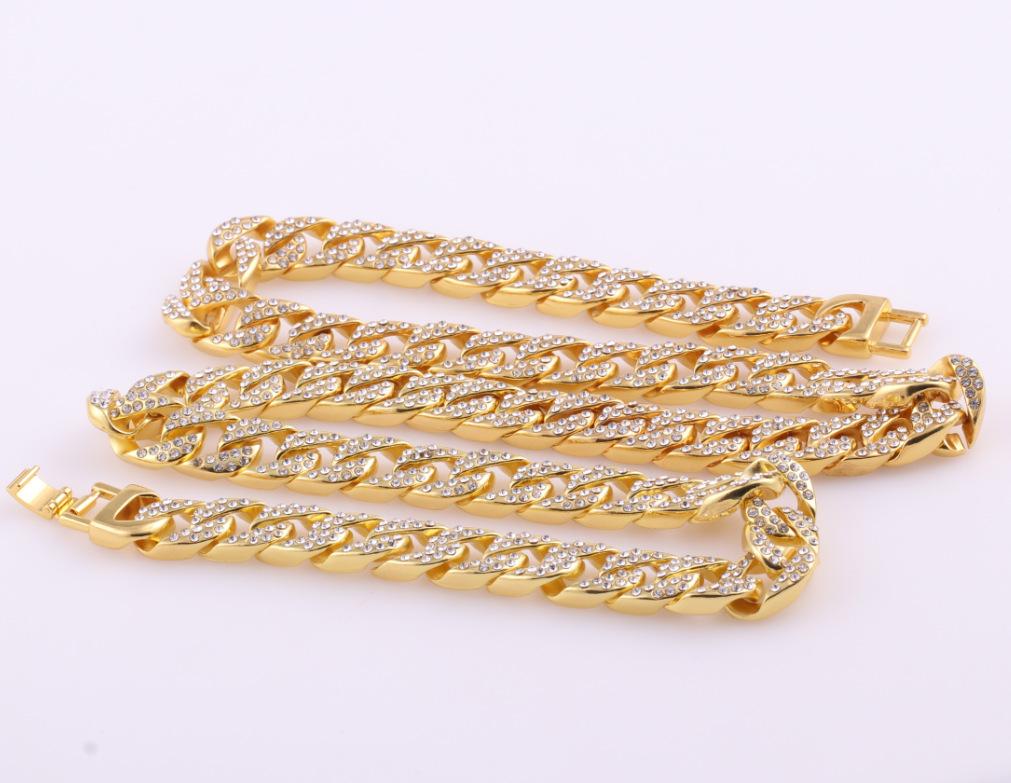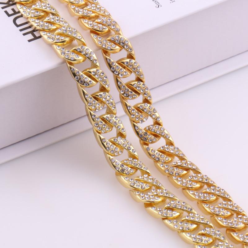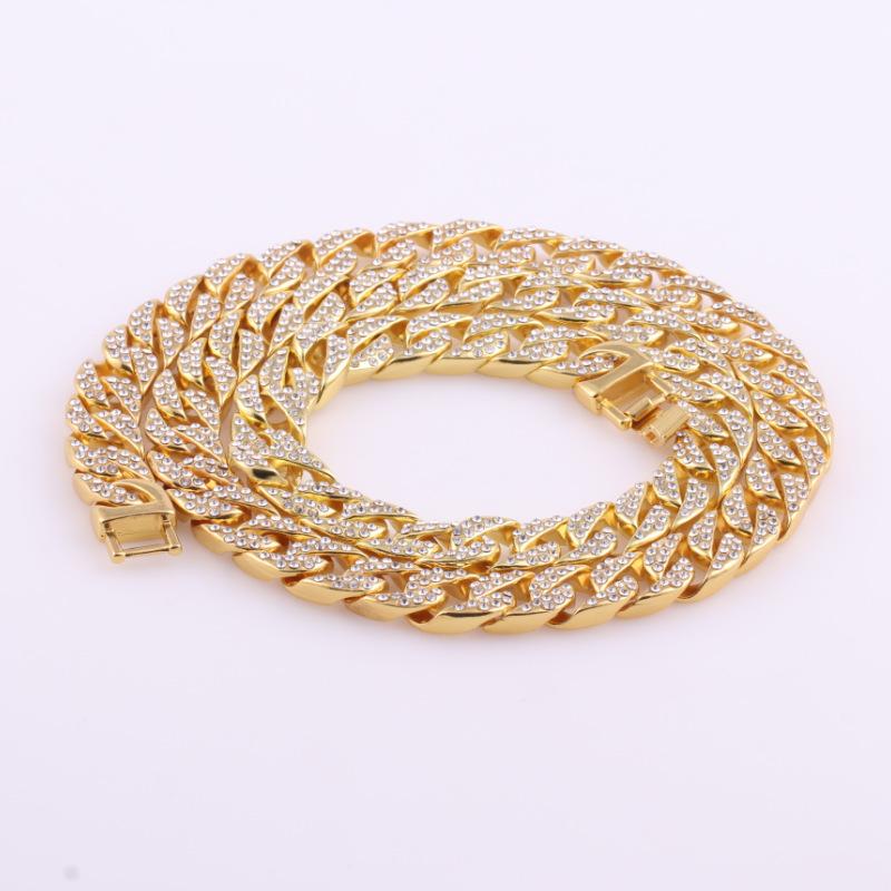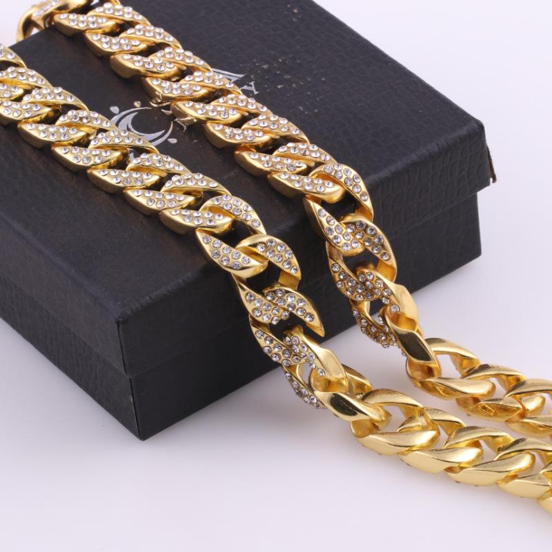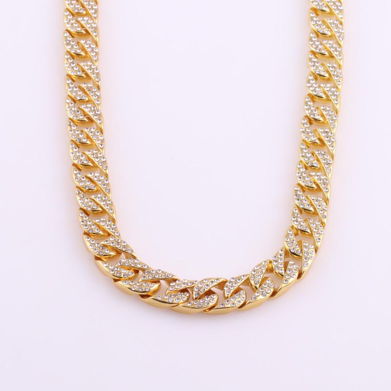 Collar de Moda para Hombre con Cadena Cubana de Aleación Fundida con Diamantes, Nuevo de Venta Caliente Europeo y Americano, Chapado en Oro, Estilo Hip Hop