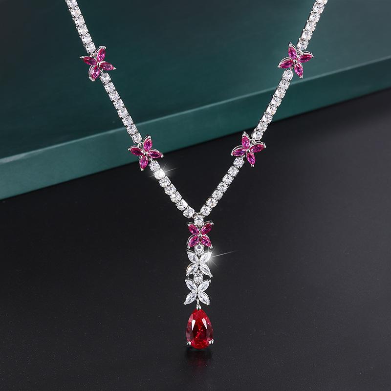 Joyería Zhuang Shengsheng Cobre Chapado en Oro Corindón Rojo Colgante de Cadena Joker Mariposa Diamante Collar para Mujer 9*14