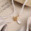 Collar de perlas europeas y americanas con colgante de perla irregular OT, collar retro con borde cruzado, cadena de clavícula del mismo estilo para mujer