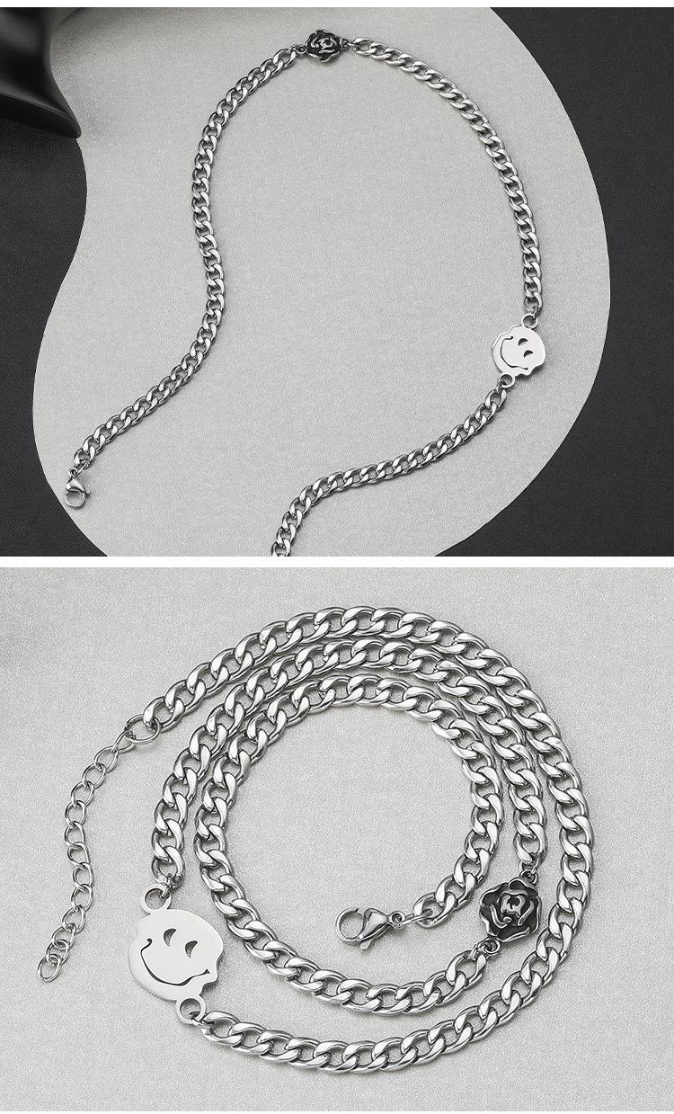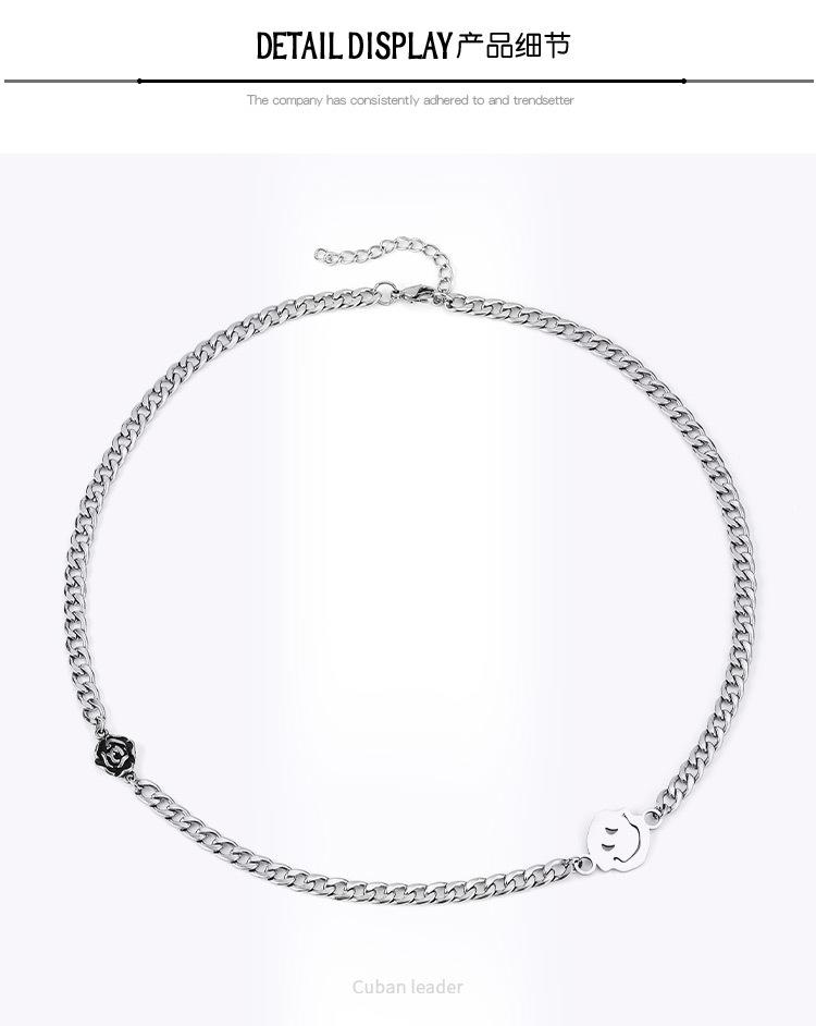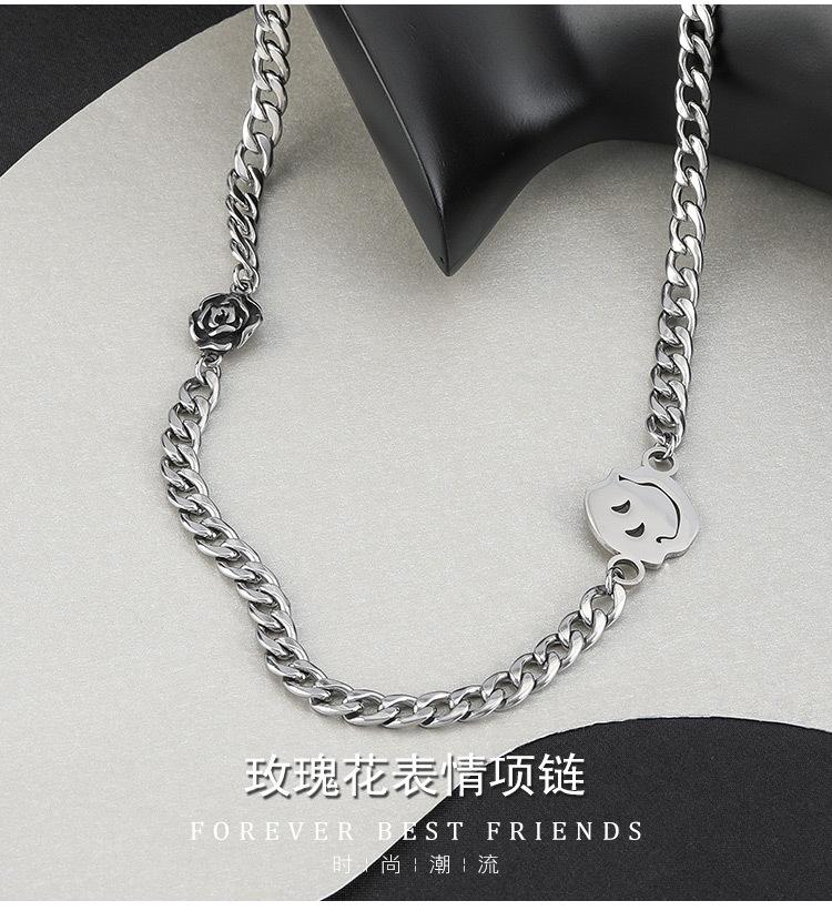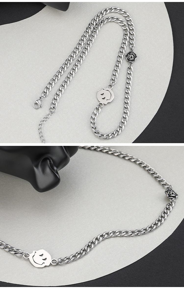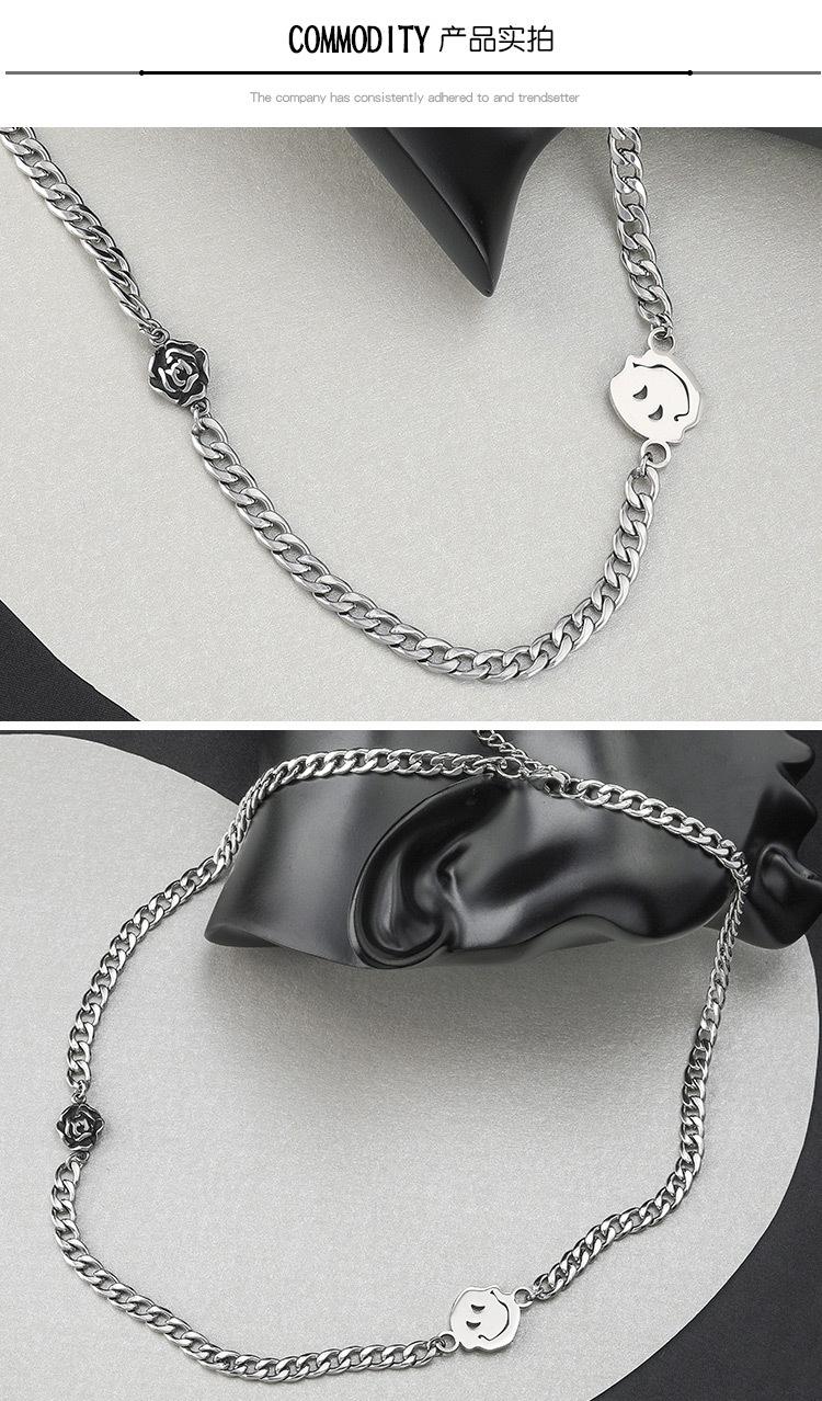 Cadena de cuello de alta gama con sensación de nicho, cadena de clavícula de lujo con luz de viento frío, collar de acero inoxidable con expresión de rosa, joyería para mujer al por mayor