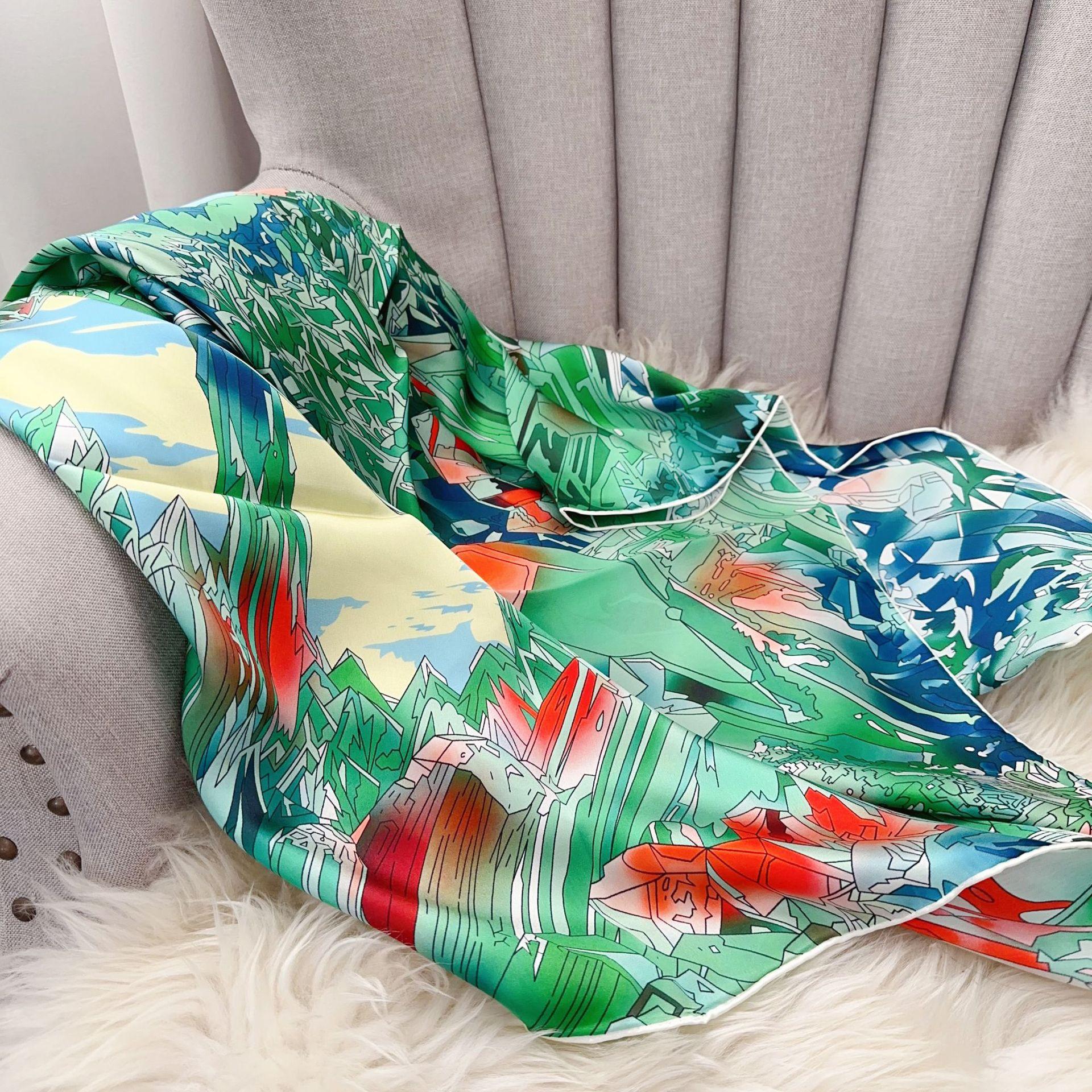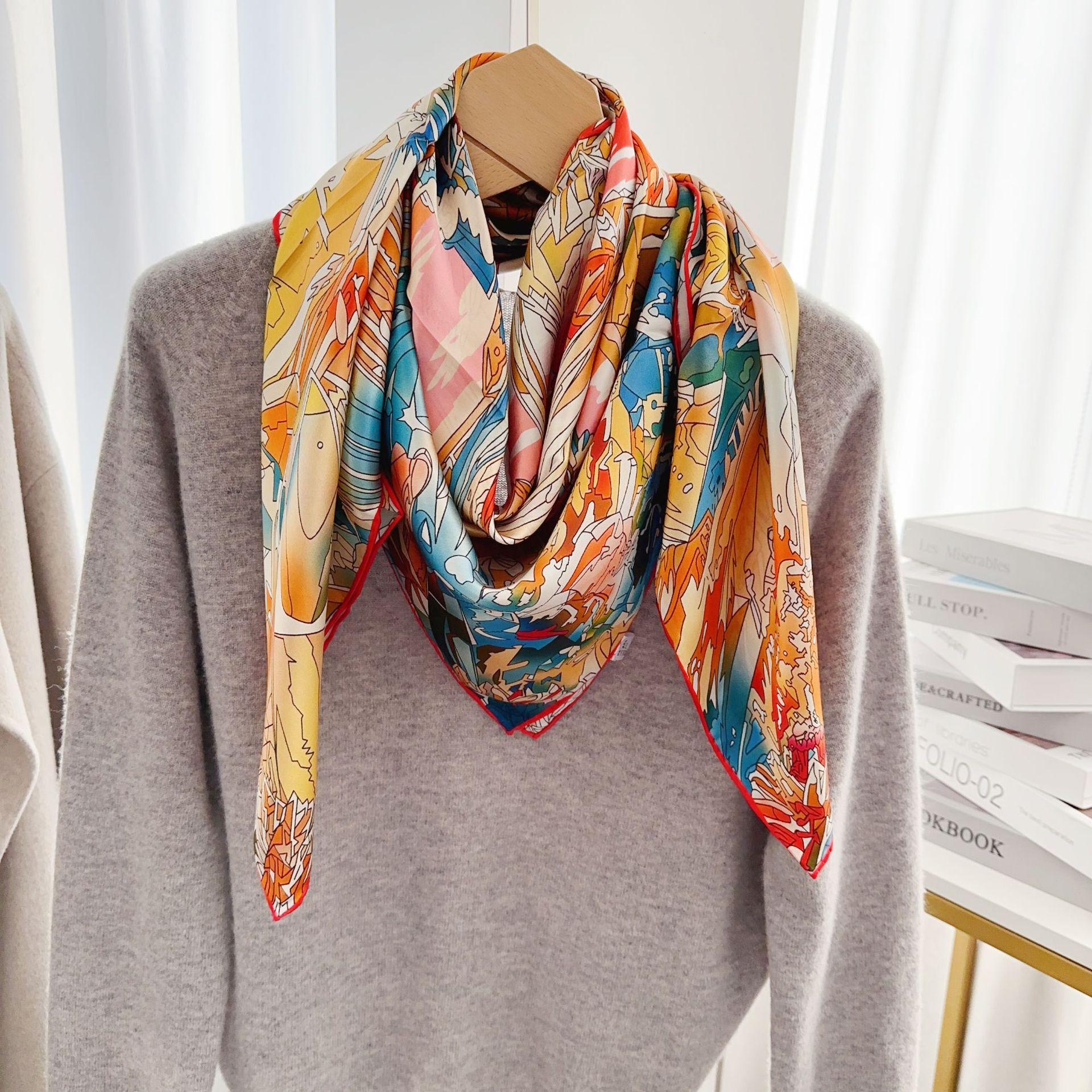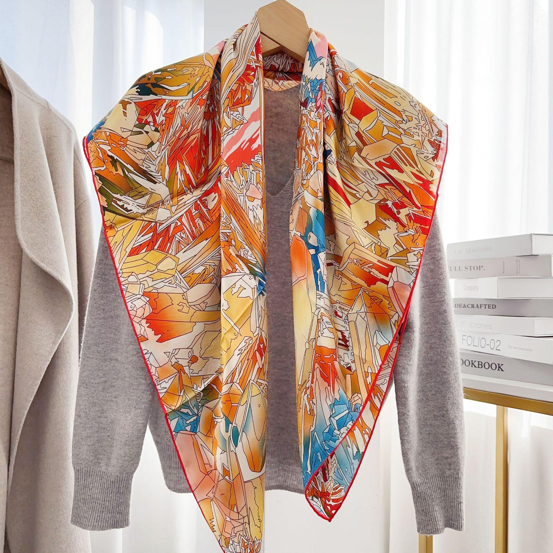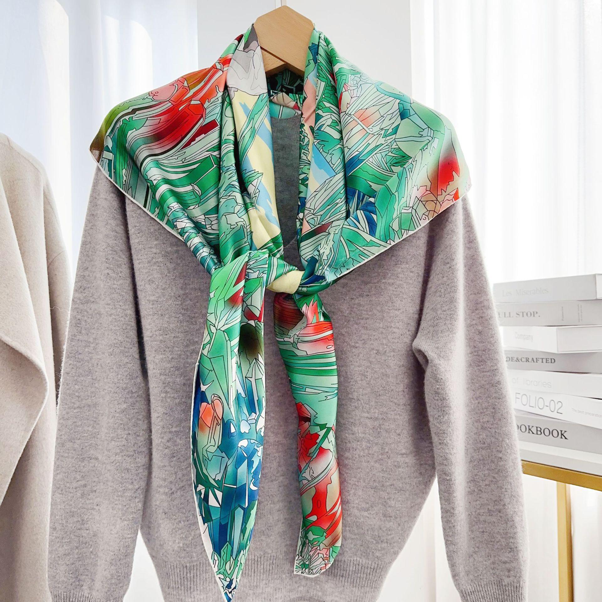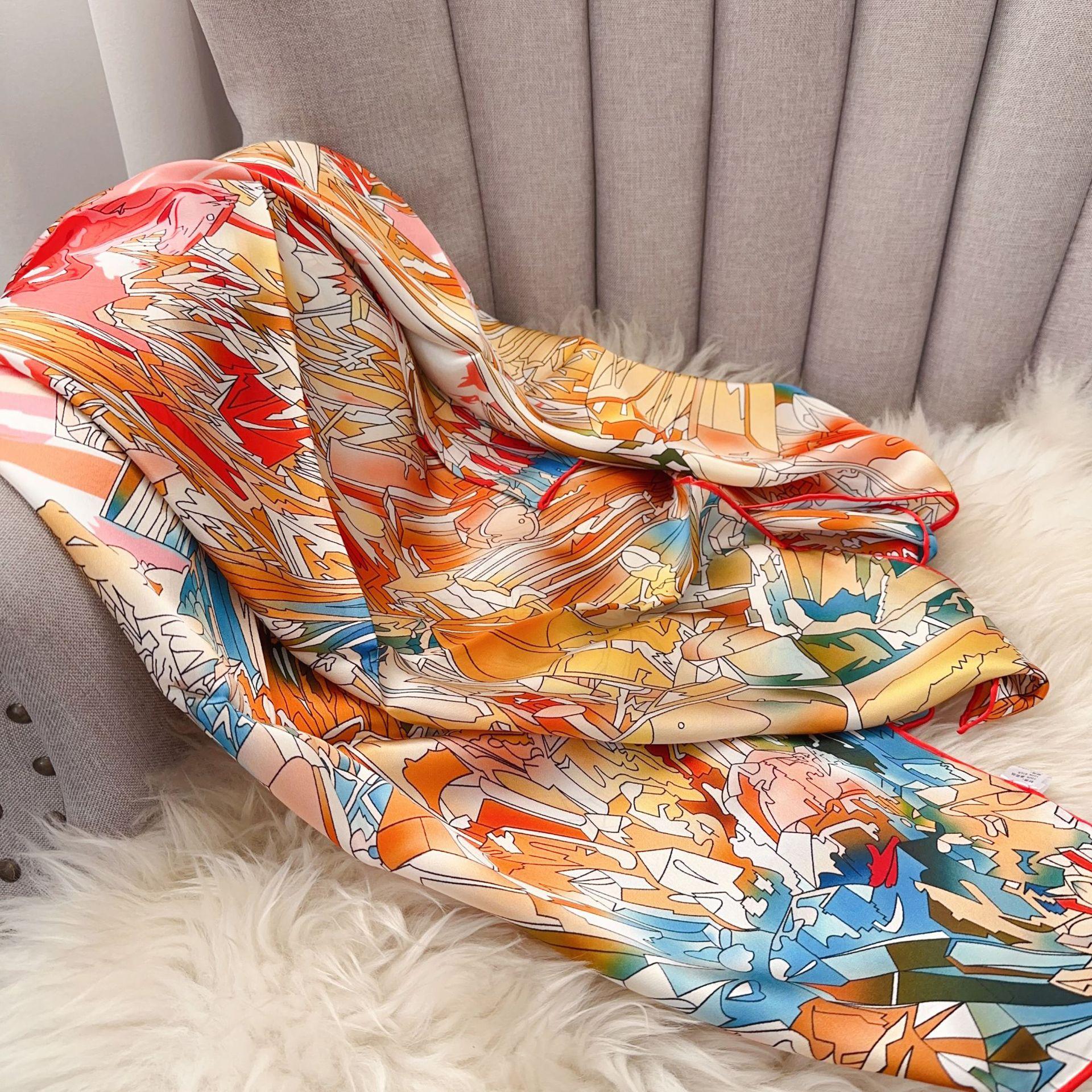 Bufanda cuadrada de seda morera ligera de lujo para mujer, chal largo de moda de estilo occidental, simple, protector solar, para regalo, novedad de 2025.