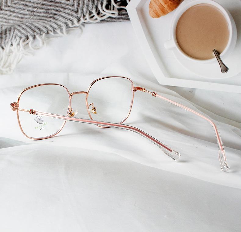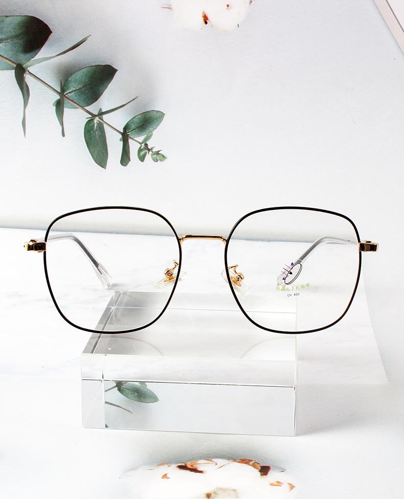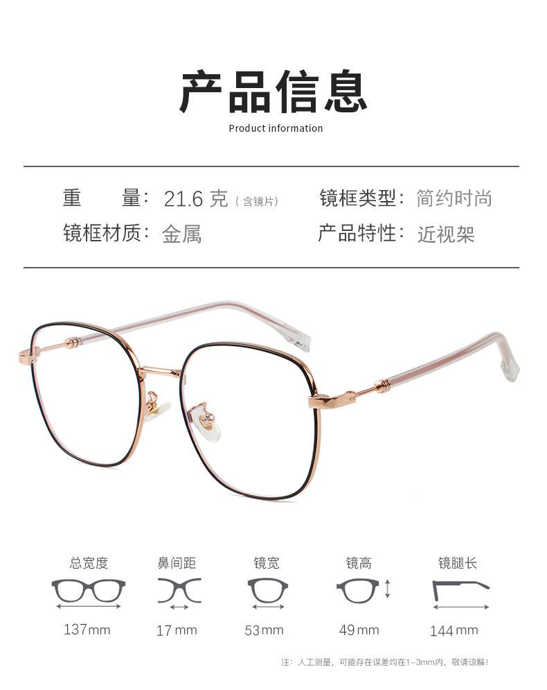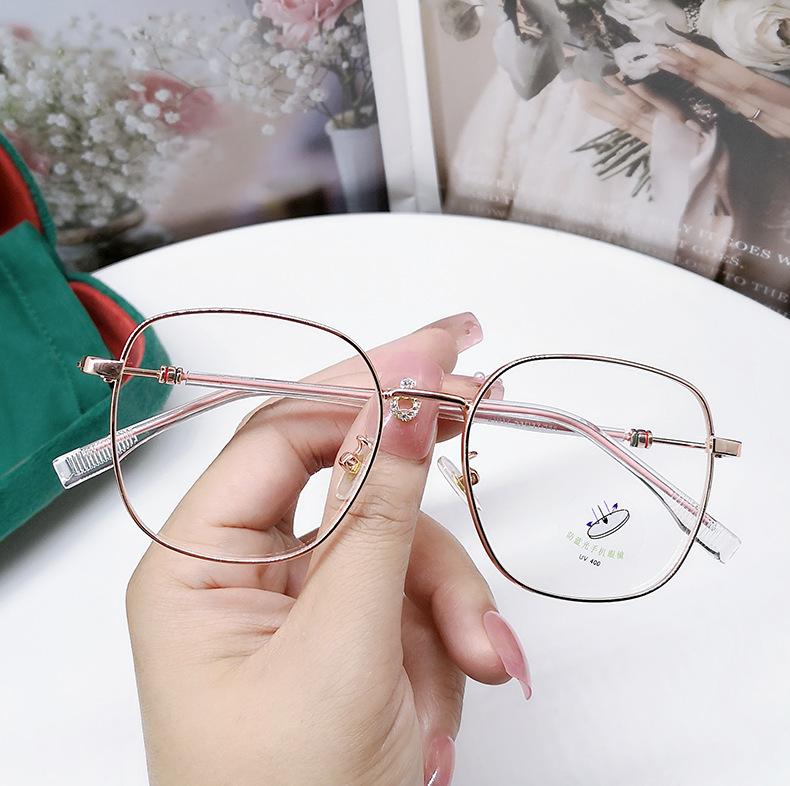 Retro estilo coreano estilo Harajuku Metal Luz anti-azul Espejo plano para hombres y mujeres Estudiantes Estilo universitario montura de espejo para miopía
