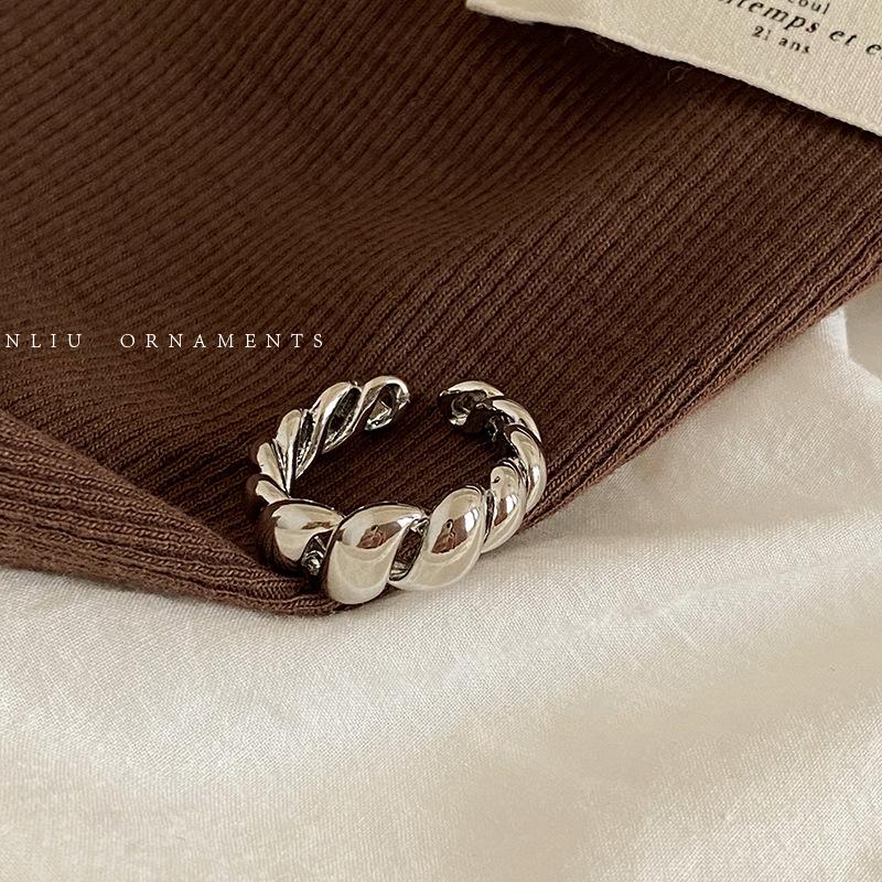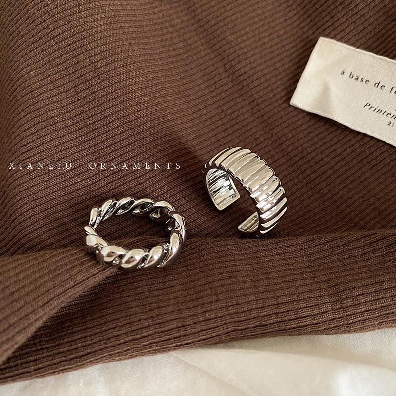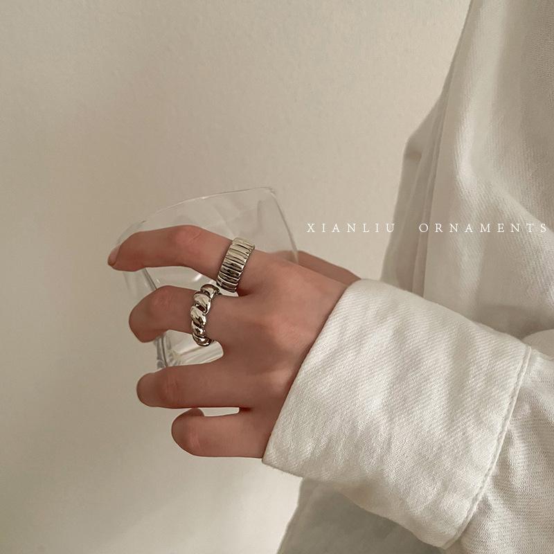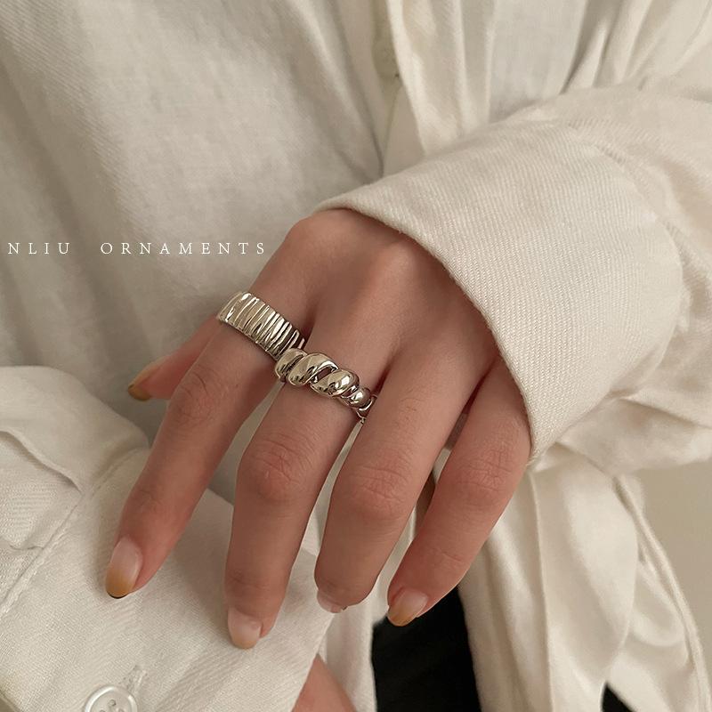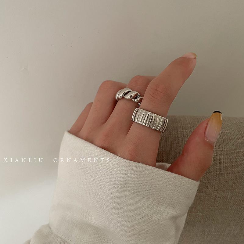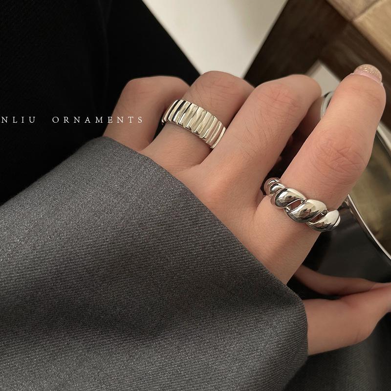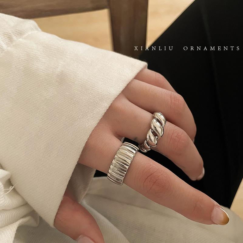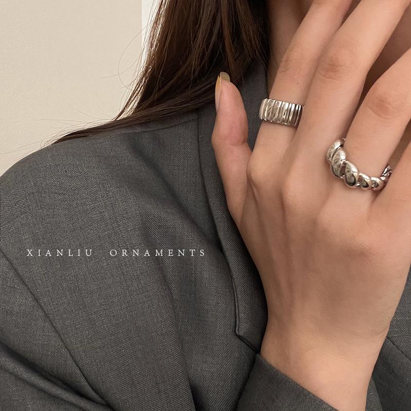 Anillo Ode de Plata S925 Estilo Coreano con Bolsa de Cuerno Calada para Mujer, Moda Retro, Hip-hop, Anillo Abierto Creativo para Dedo