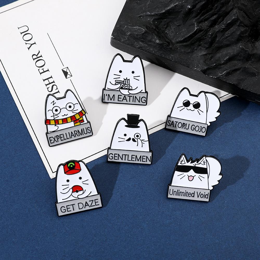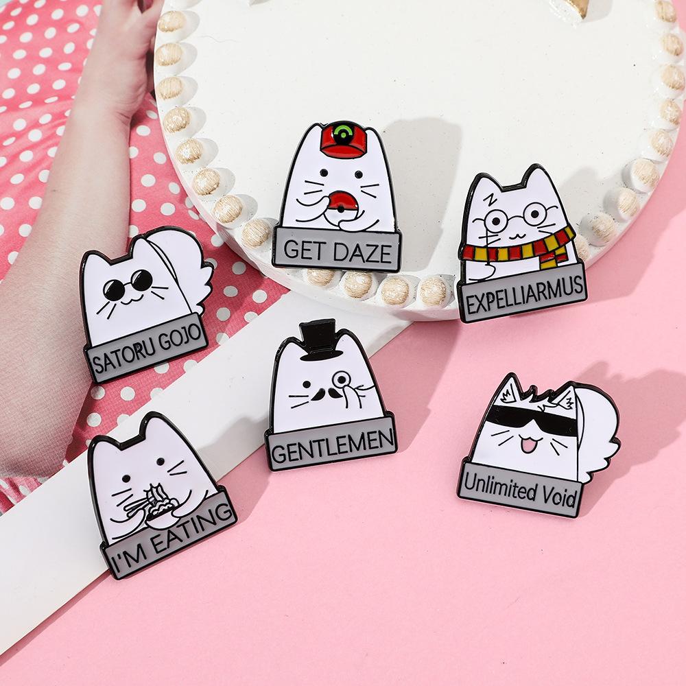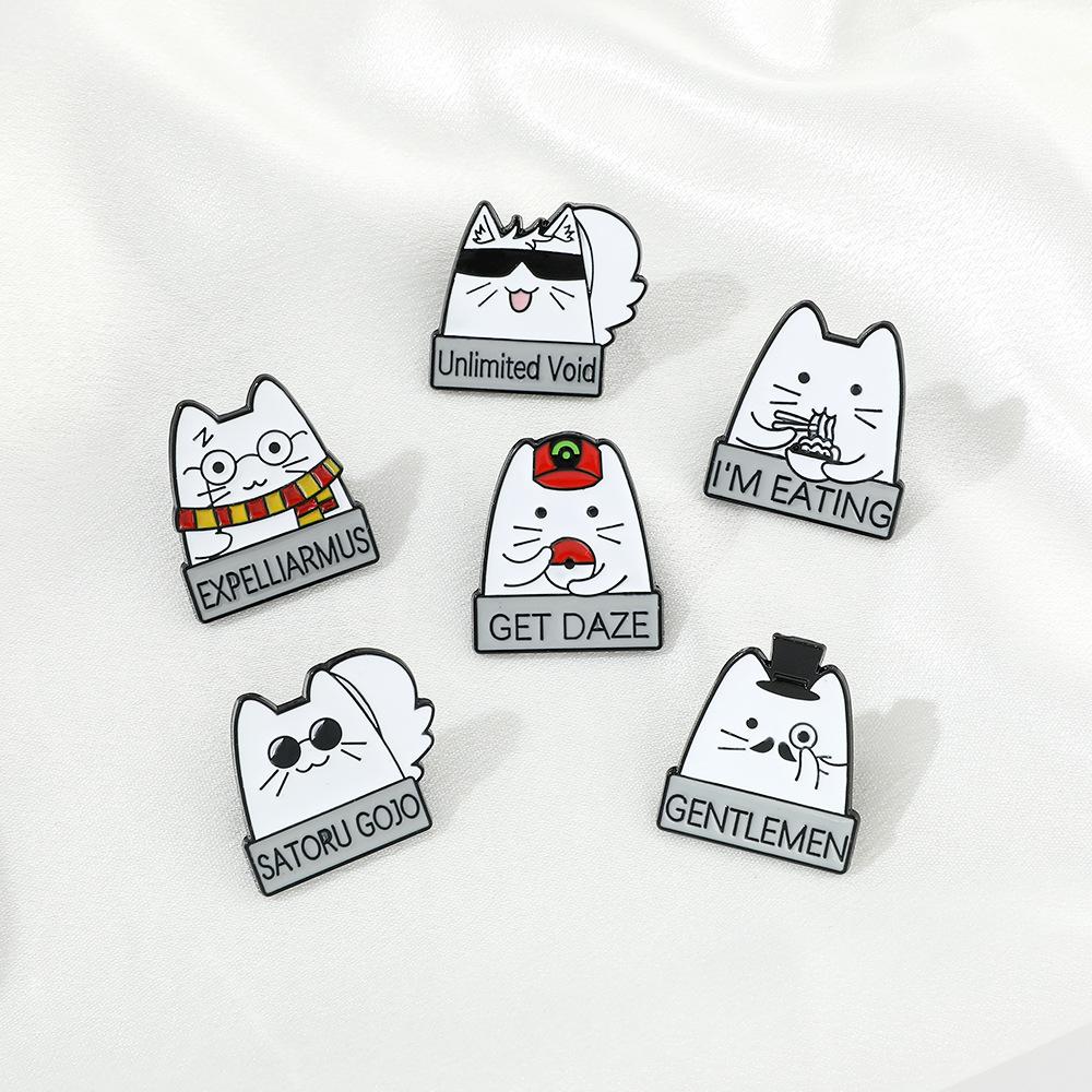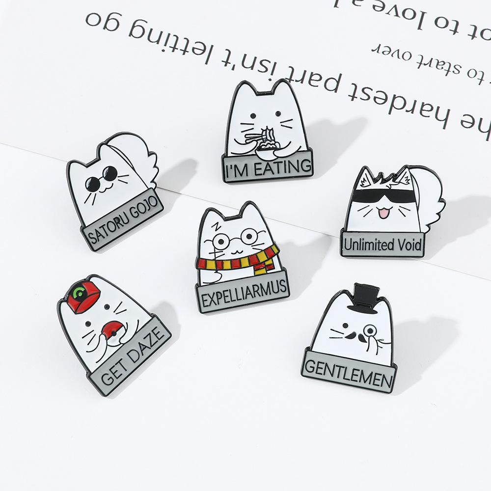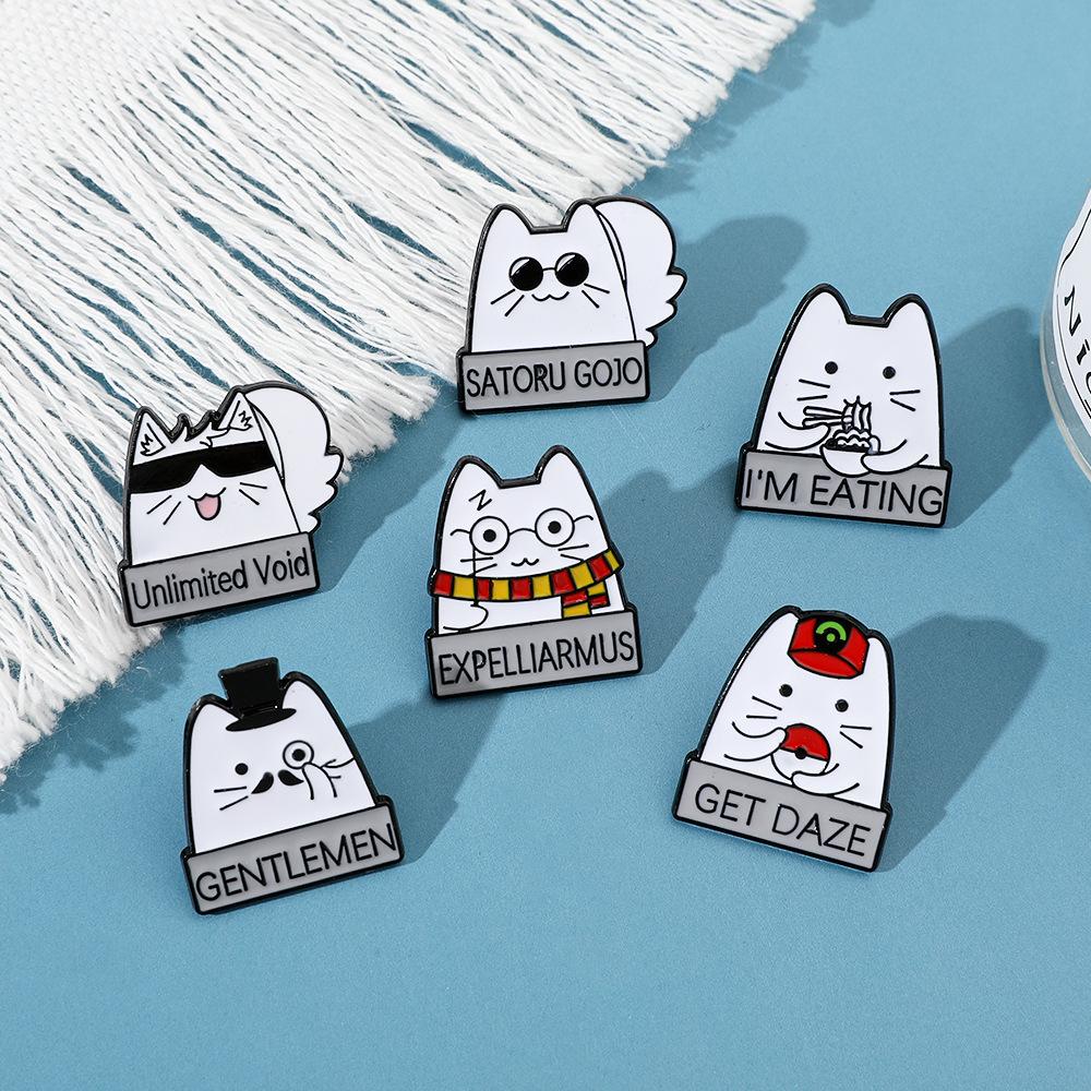 Lindo Broche de Gato de Dibujos Animados Creativo Divertido Gato Comiendo Fideos Gatito Mágico Insignia de Metal Accesorios para Bolsa Pin