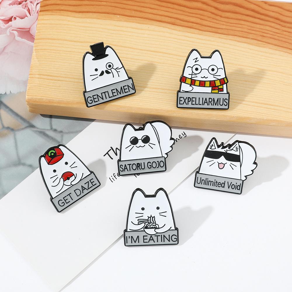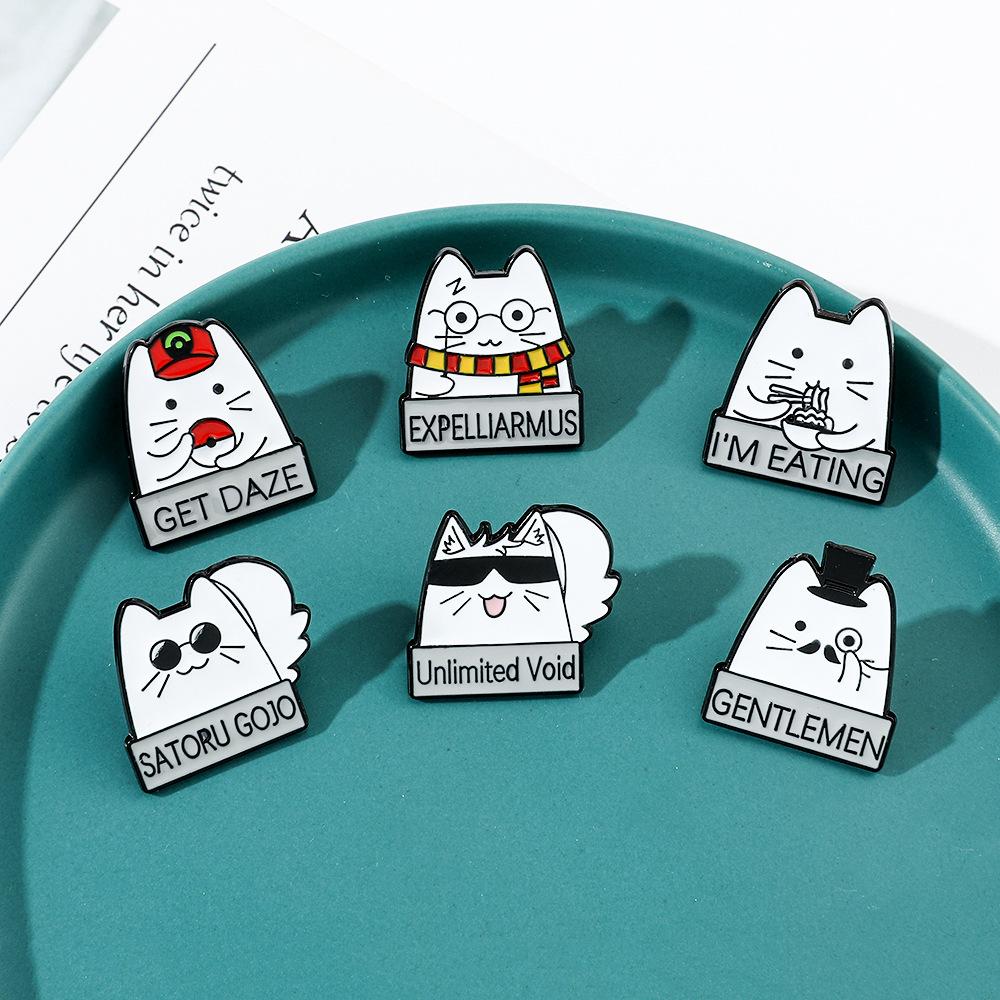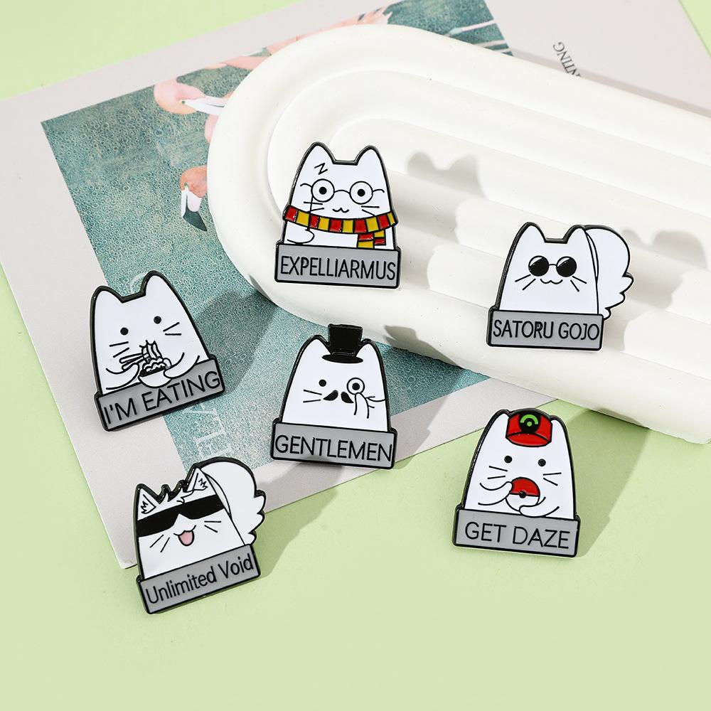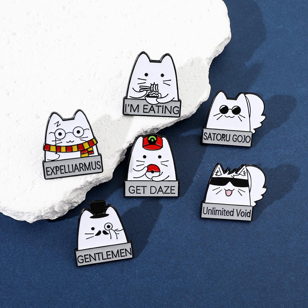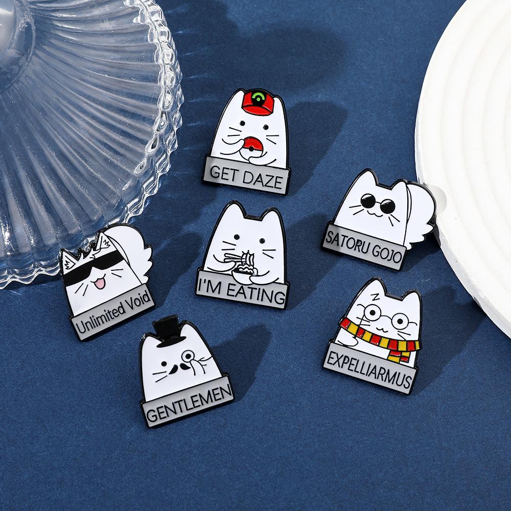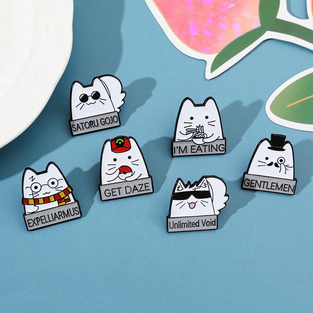 Lindo Broche de Gato de Dibujos Animados Creativo Divertido Gato Comiendo Fideos Gatito Mágico Insignia de Metal Accesorios para Bolsa Pin