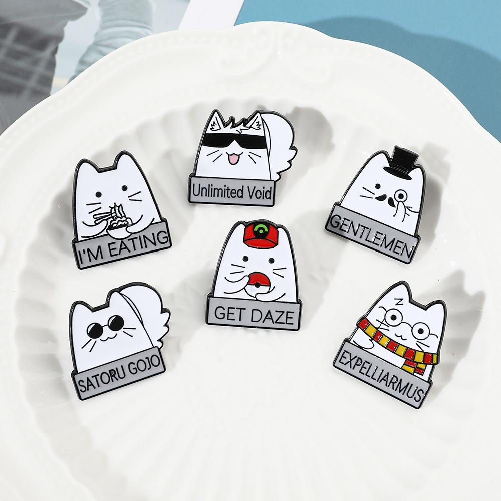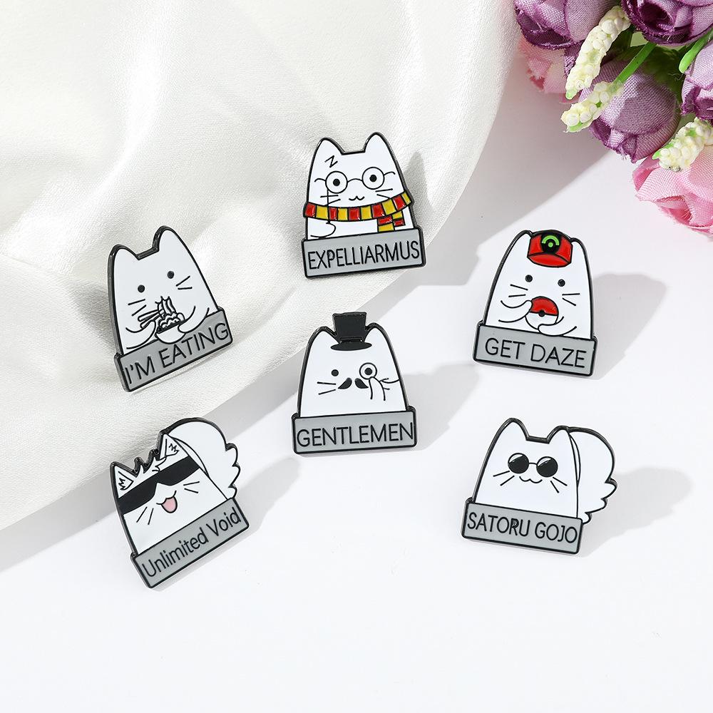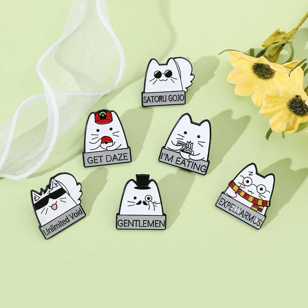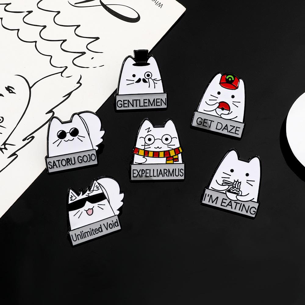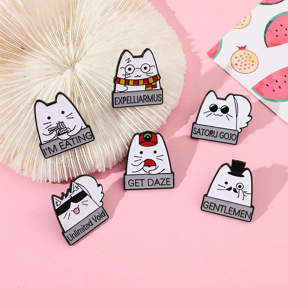 Lindo Broche de Gato de Dibujos Animados Creativo Divertido Gato Comiendo Fideos Gatito Mágico Insignia de Metal Accesorios para Bolsa Pin