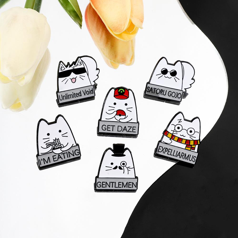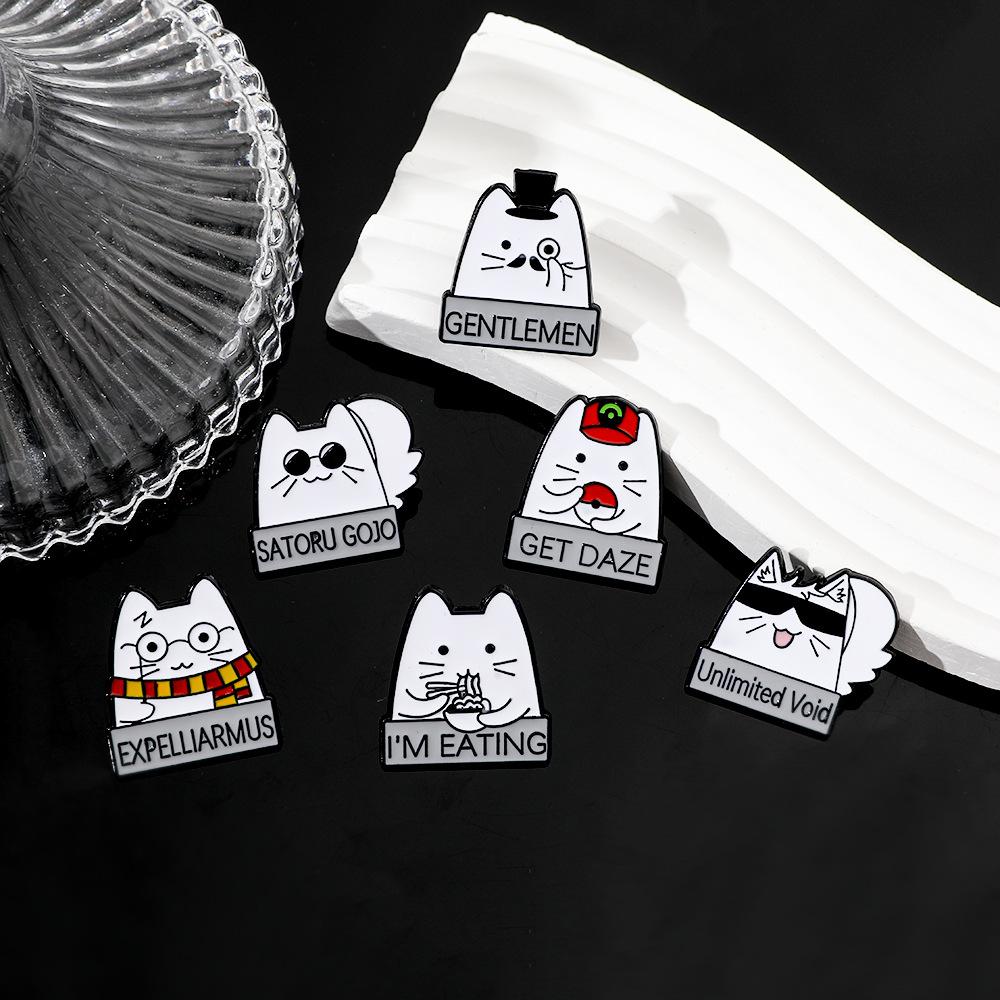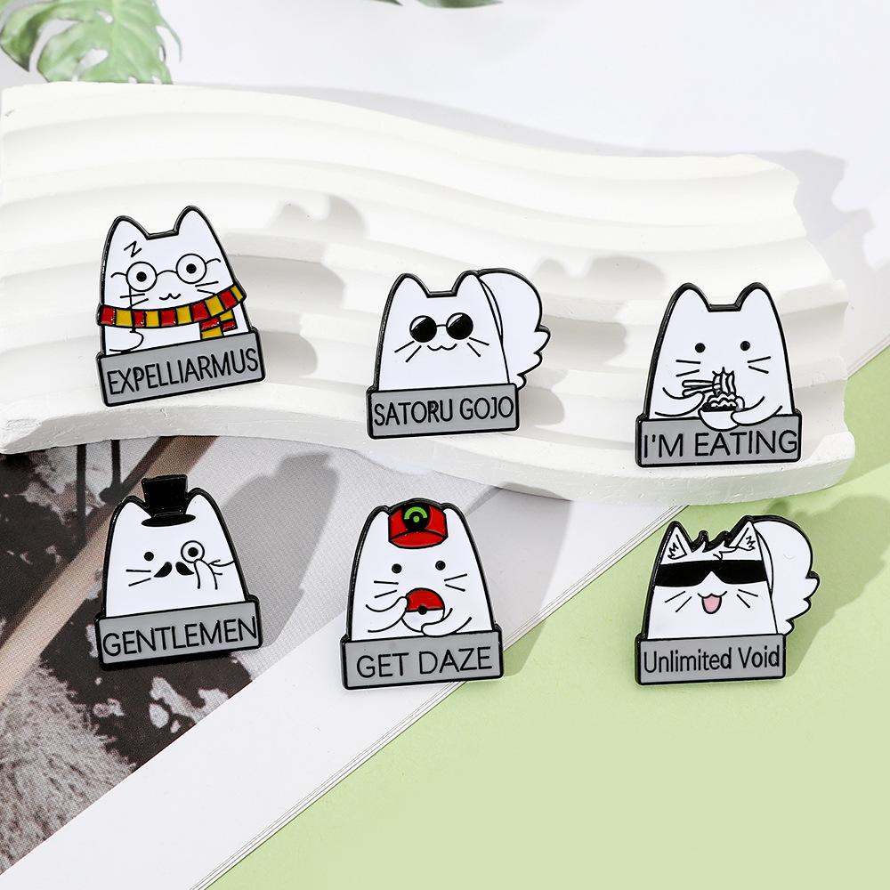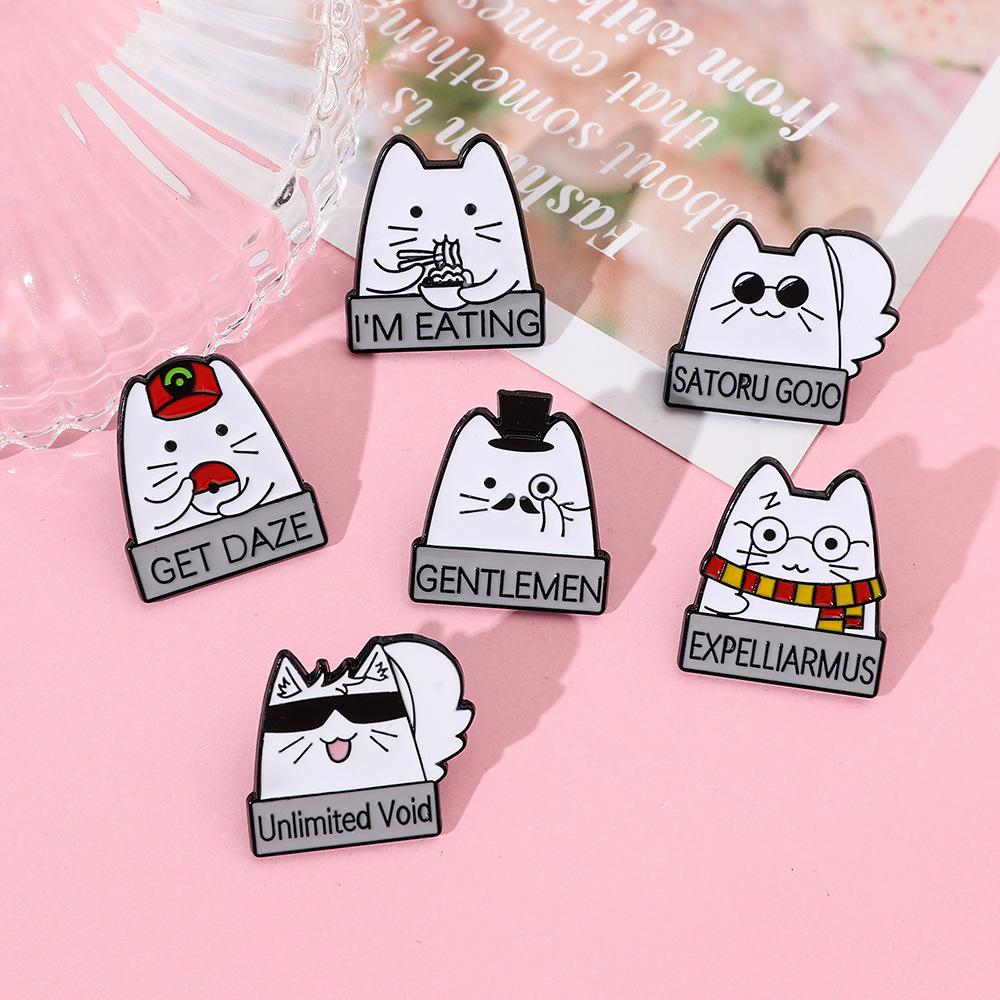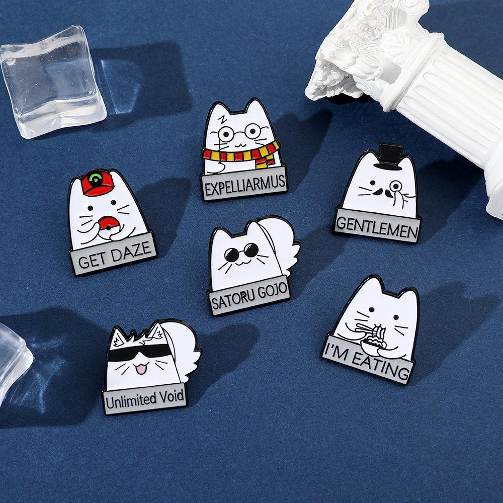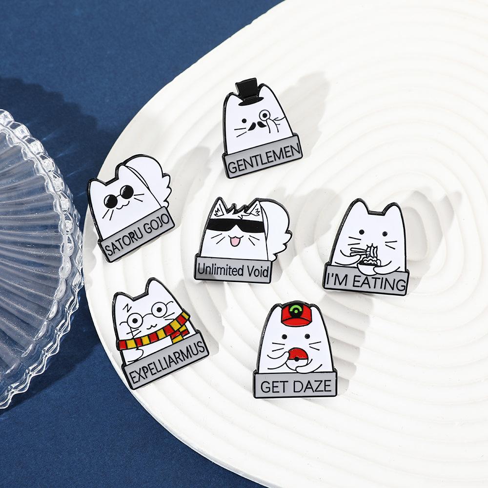 Lindo Broche de Gato de Dibujos Animados Creativo Divertido Gato Comiendo Fideos Gatito Mágico Insignia de Metal Accesorios para Bolsa Pin