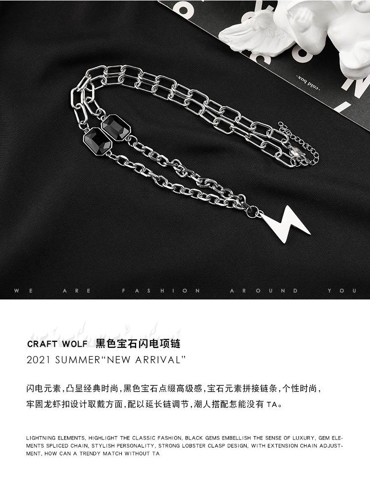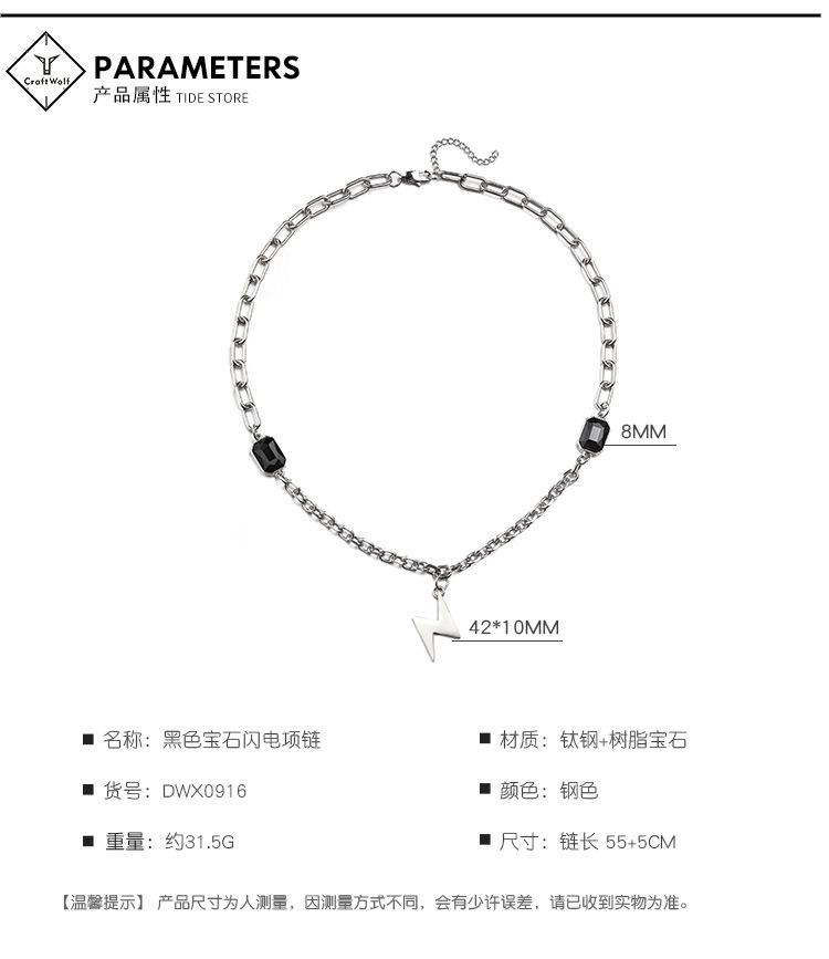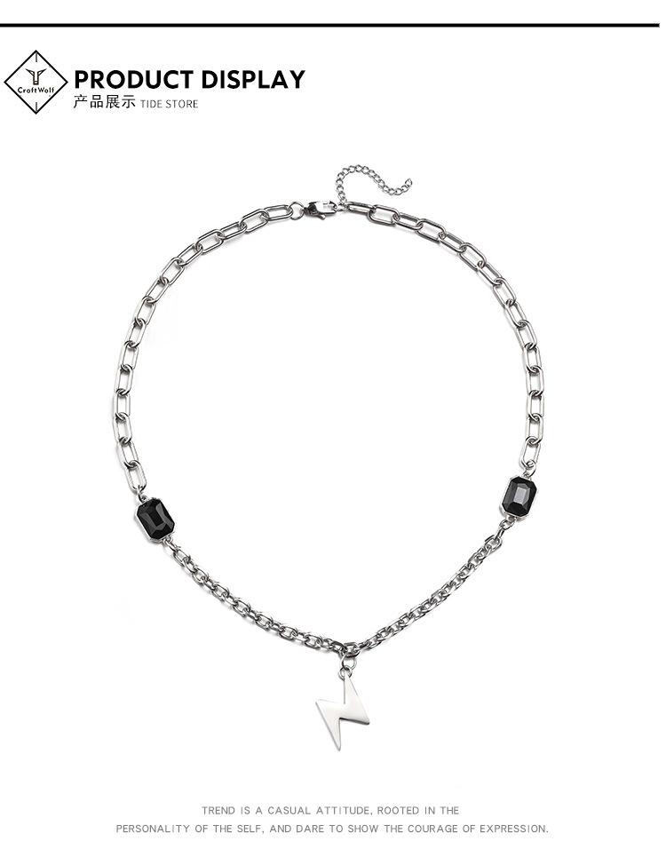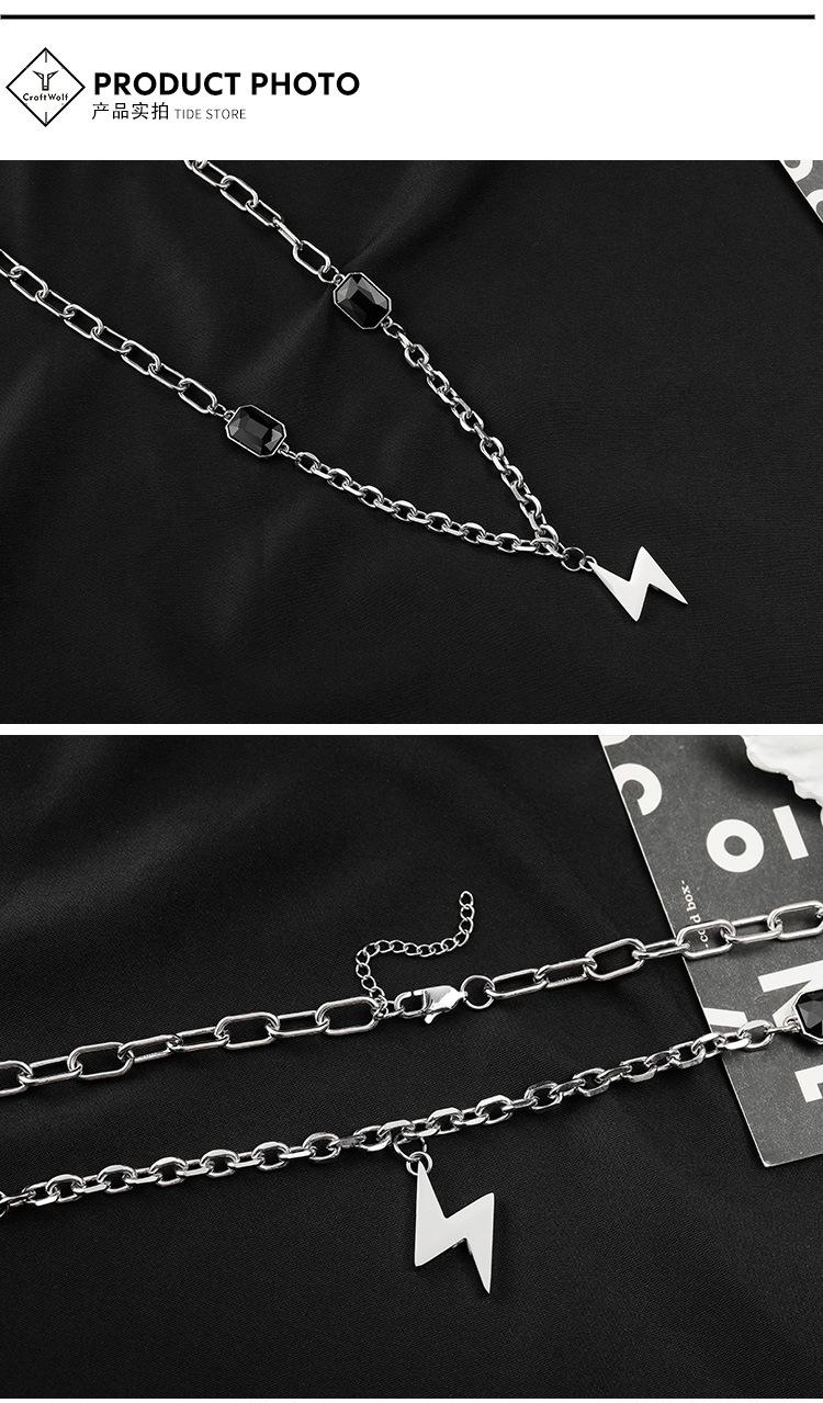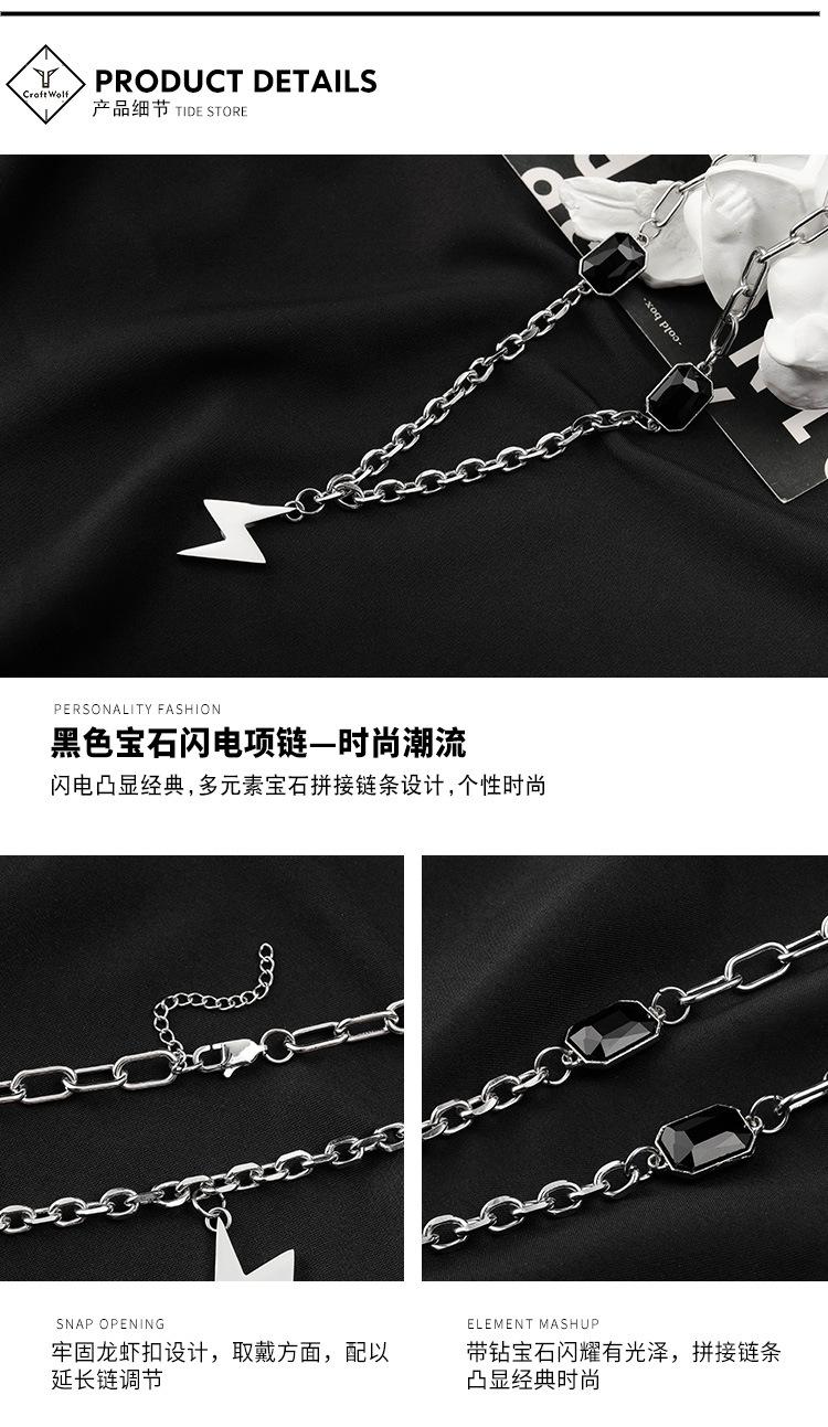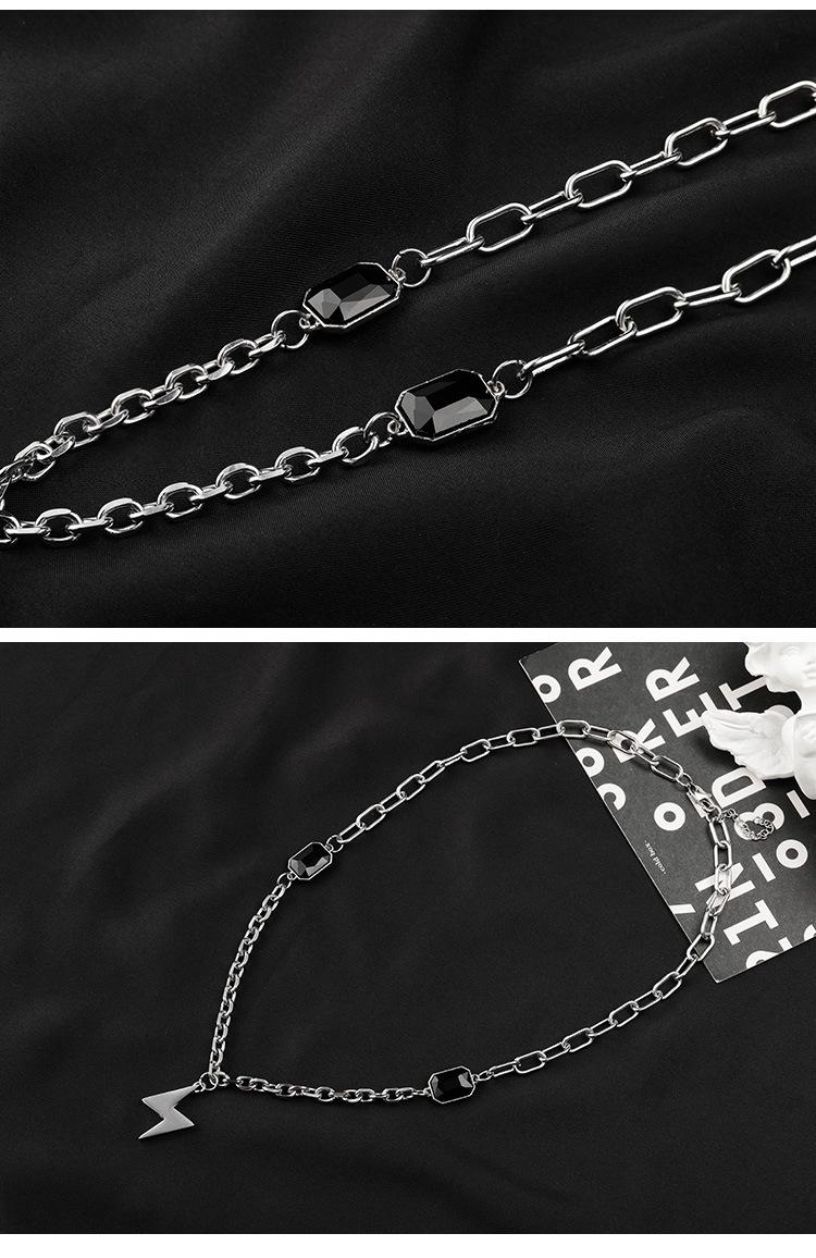 Collar de hip-hop callejero europeo y americano con perlas negras y piedras preciosas, collar de acero inoxidable con cadena de clavícula de diamantes y relámpagos, marea para parejas