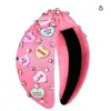 Diadema de moda dulce para el Día de San Valentín para mujer, con diamantes, cuentas de uñas, letra 'love', accesorios para el cabello de ala ancha al por mayor