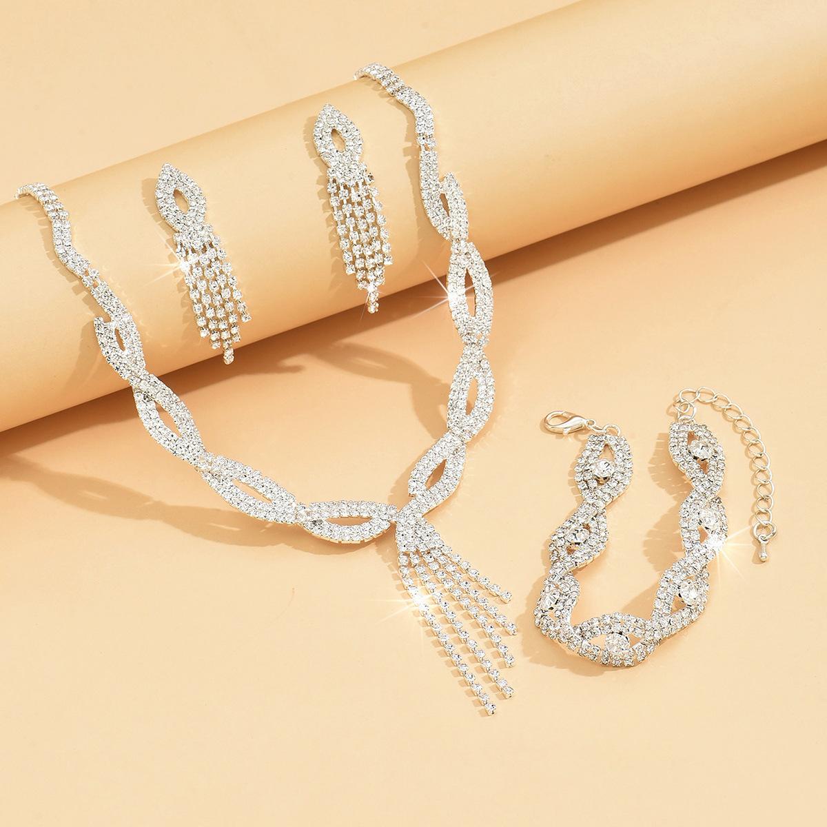 Traje de novia Joyas Pendientes Collar Pulsera Conjunto de tres piezas Europeo y americano Nuevo Vestido de noche de boda Colocación Traje de mujer