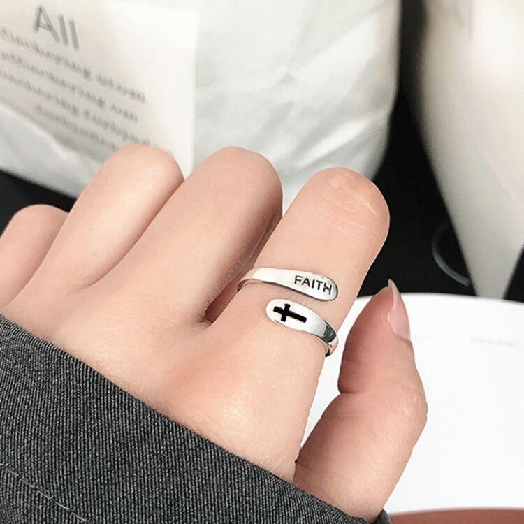 Anillo Cruz Doble Capa Moda Mujer Personalizado Ins Trendy Estilo Frío Anillo Abierto Celebridad de Internet Simple Hip-hop Anillo de Comida