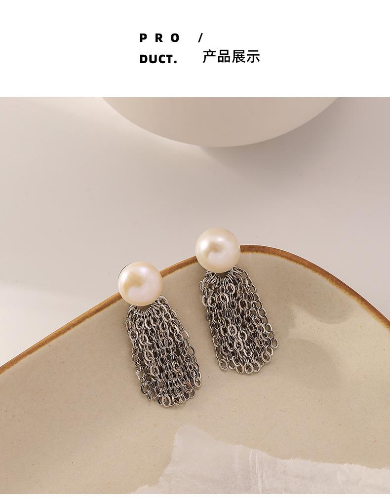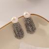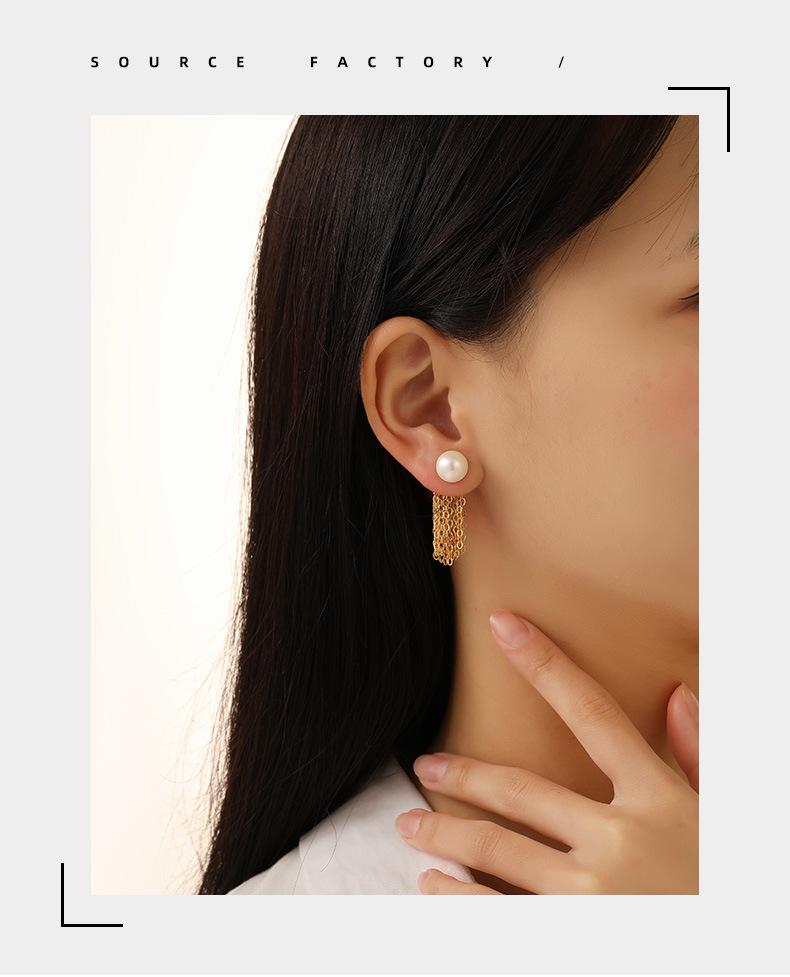 Aretes Japoneses-Coreanos de Dos Usos con Borla de Perla Natural de Agua Dulce Aguja de Plata 925 Simples Elegantes Combinables Aretes Largos