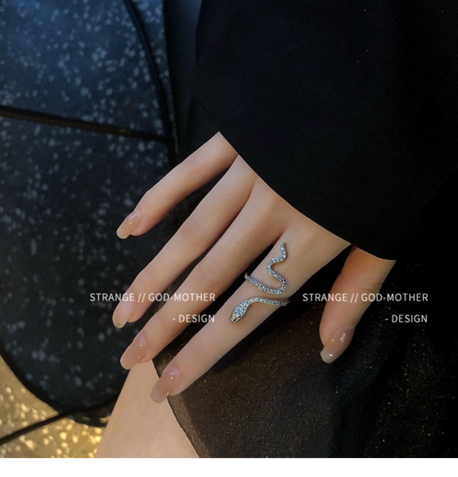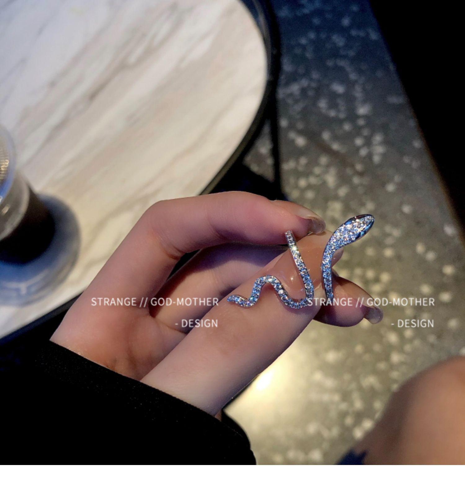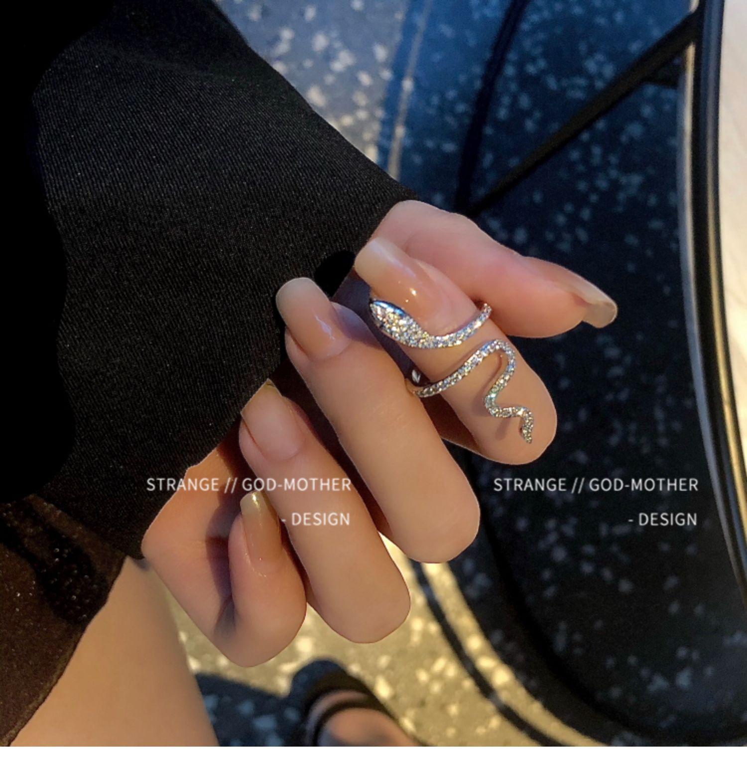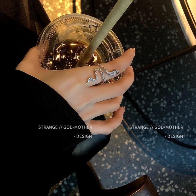 Anillo con forma de serpiente para mujer con diamantes completos, diseño nicho, anillo personalizado abierto para el dedo índice, lujo accesible, anillo popular de moda