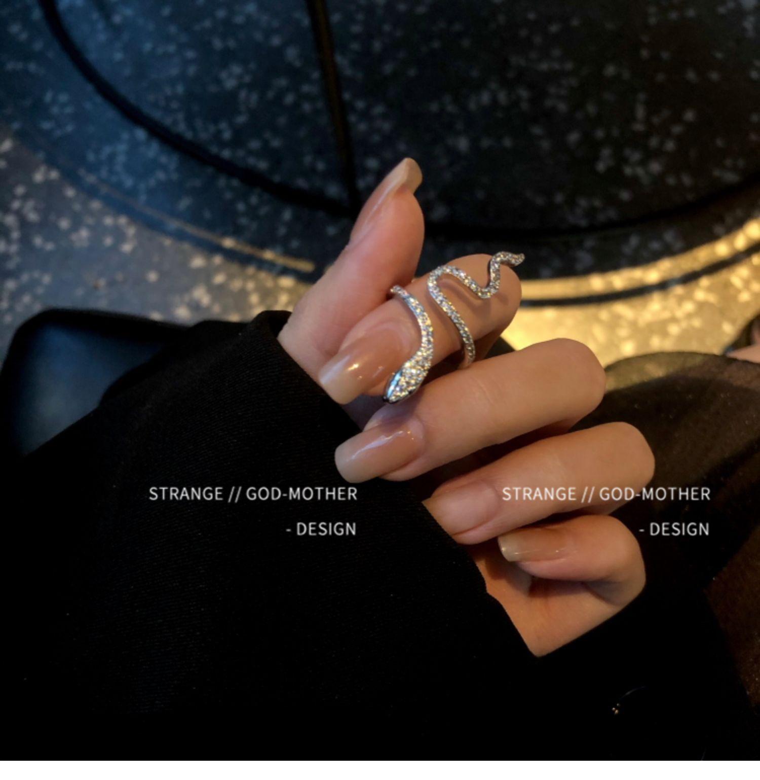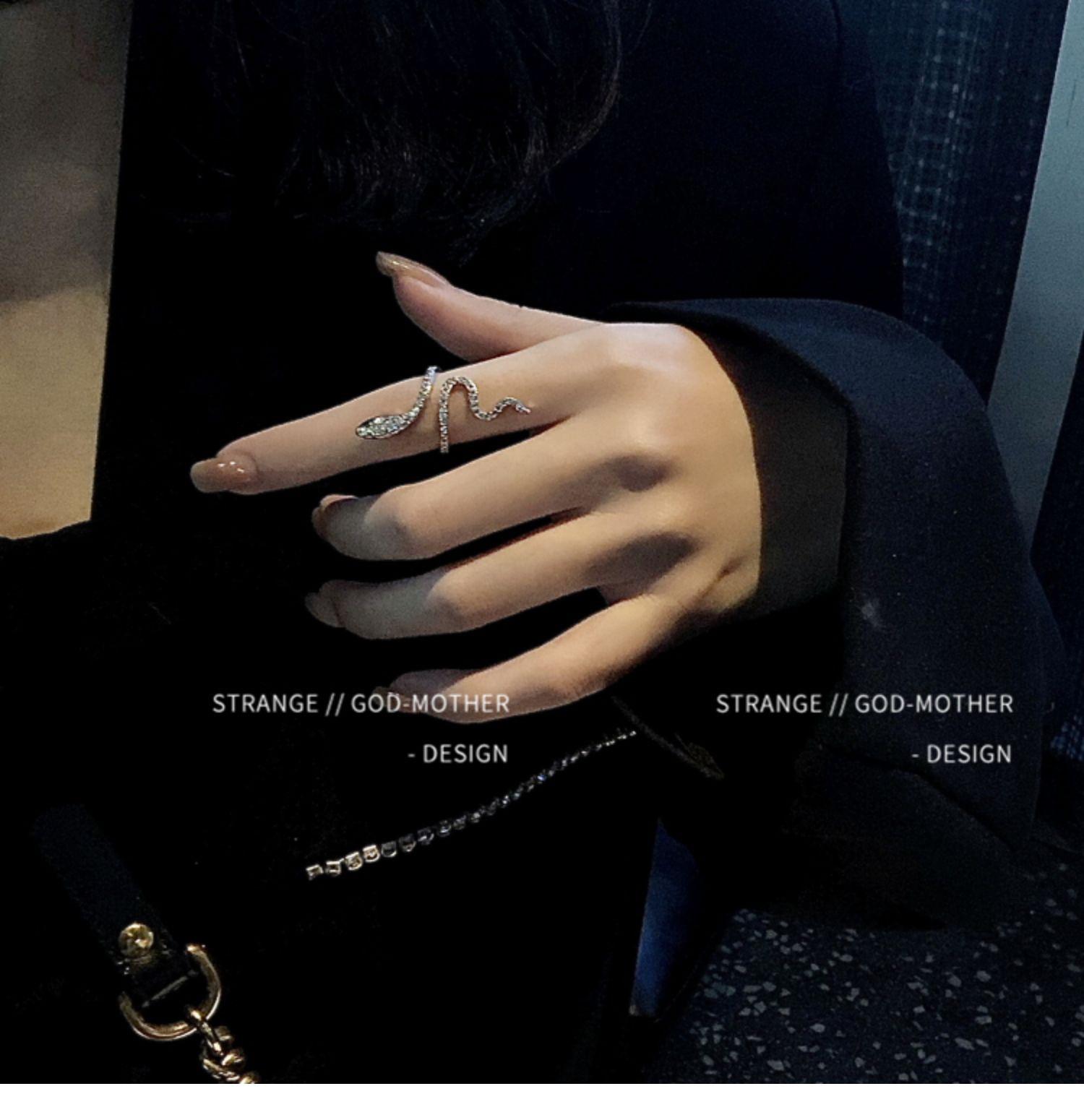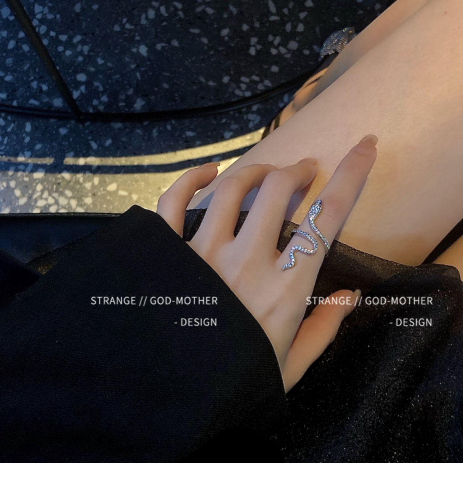 Anillo con forma de serpiente para mujer con diamantes completos, diseño nicho, anillo personalizado abierto para el dedo índice, lujo accesible, anillo popular de moda