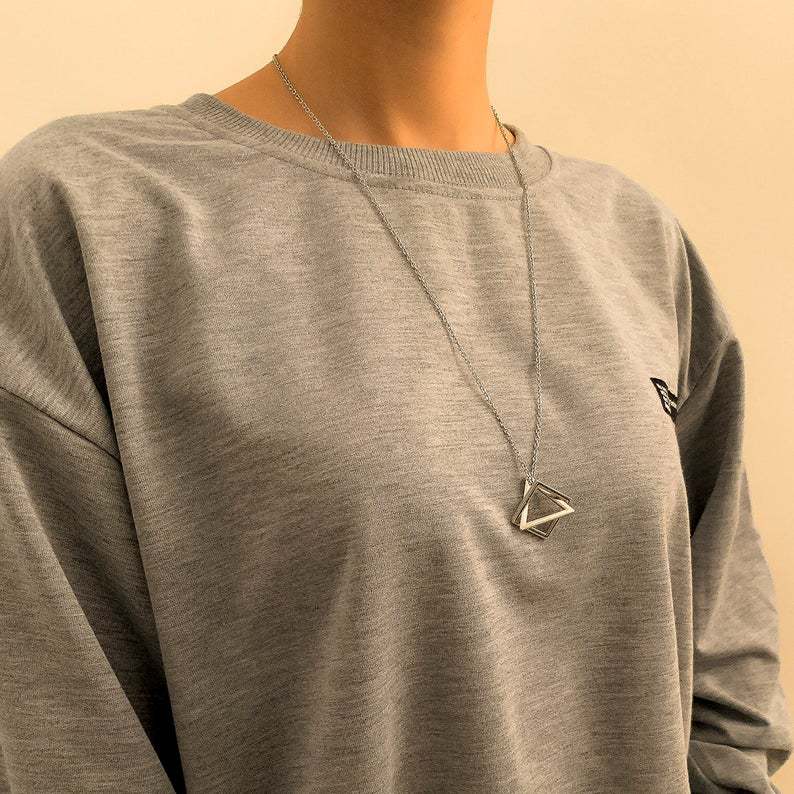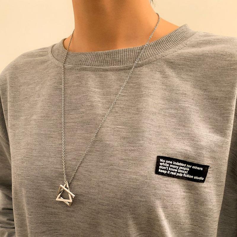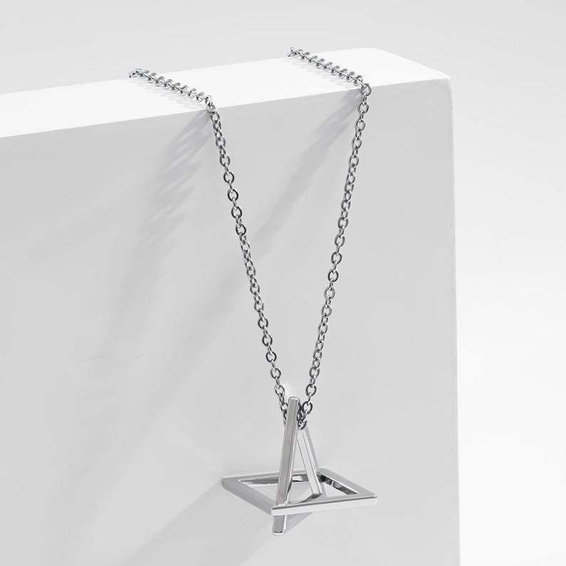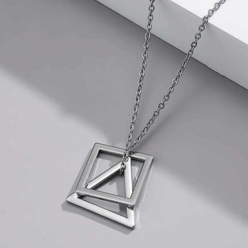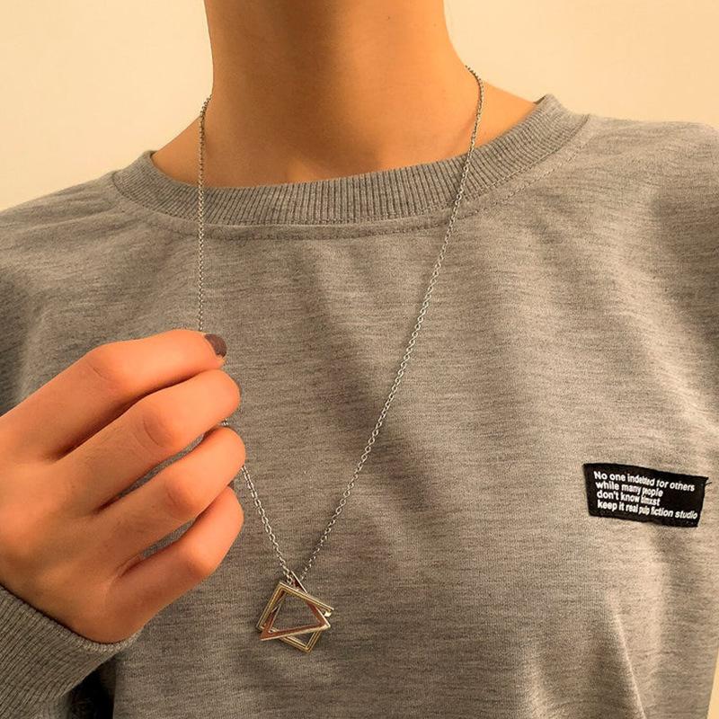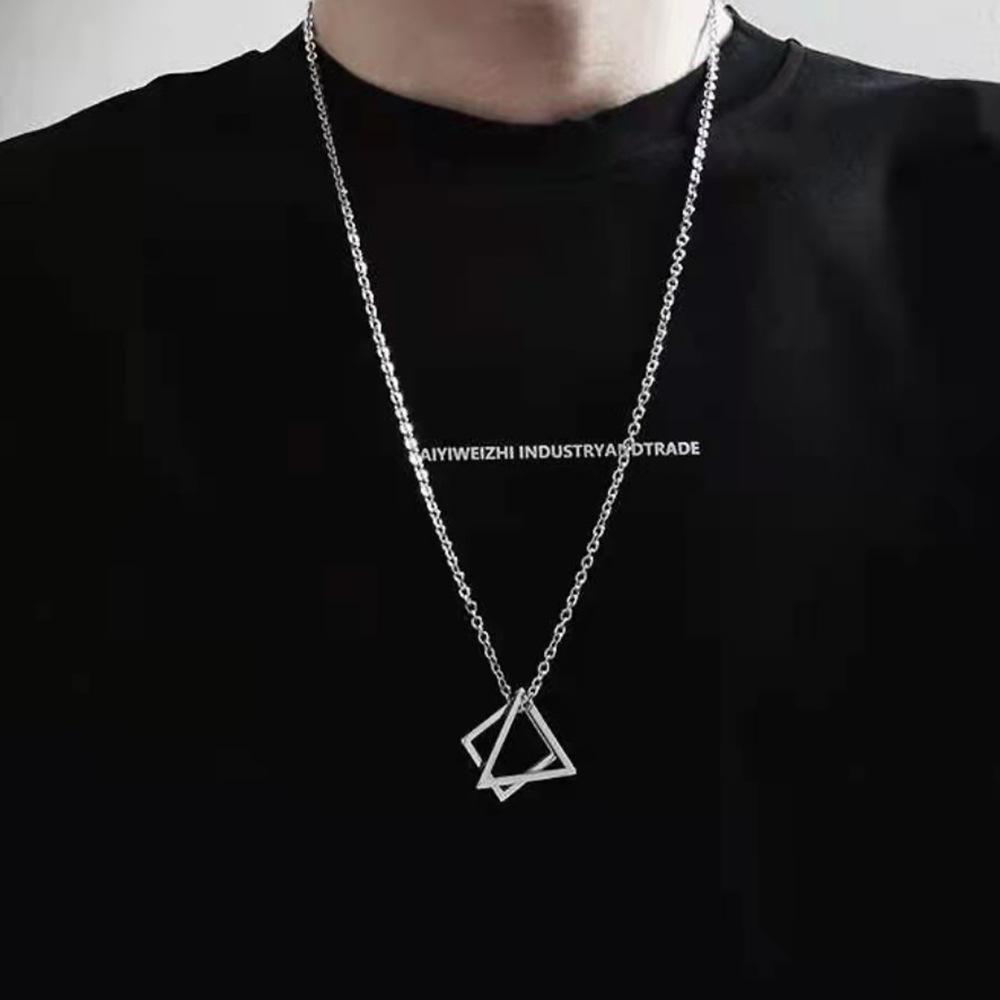 Collar con colgante de triángulo cuadrado geométrico con cadena de suéter de acero de titanio para hombre, colgante de hip hop de moda para hombres y mujeres.