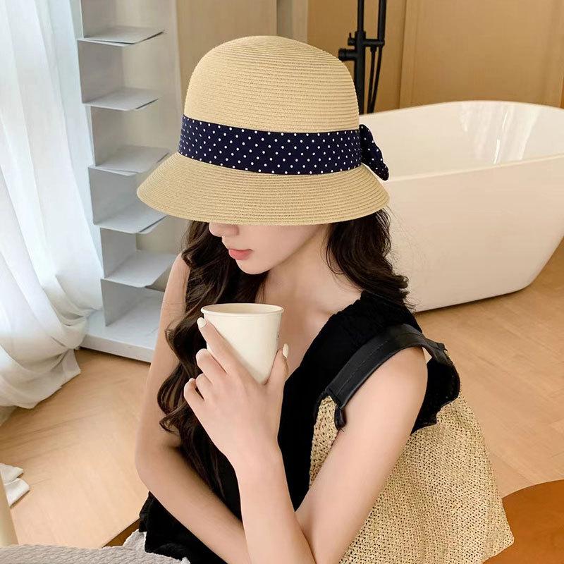 Sombrero de pescador con lazo de lunares estilo japonés y coreano, ideal para viajes de calle, de moda informal y combinable, ideal para el sol. Nuevo.